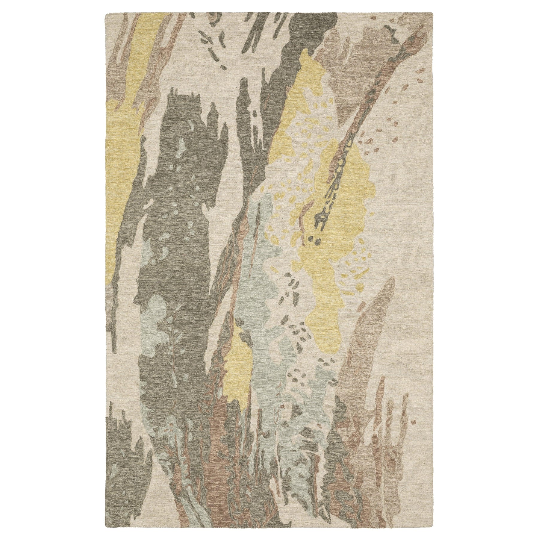 Kipton is a hand-tufted collection constructed of space dyed wool and features a dense, textural cut and loop pile. Designs recall the organic shifting and layering of natural elements over time and that idea is echoed in the softly saturated blue and green tones as well as warmer shades of copper and gold.