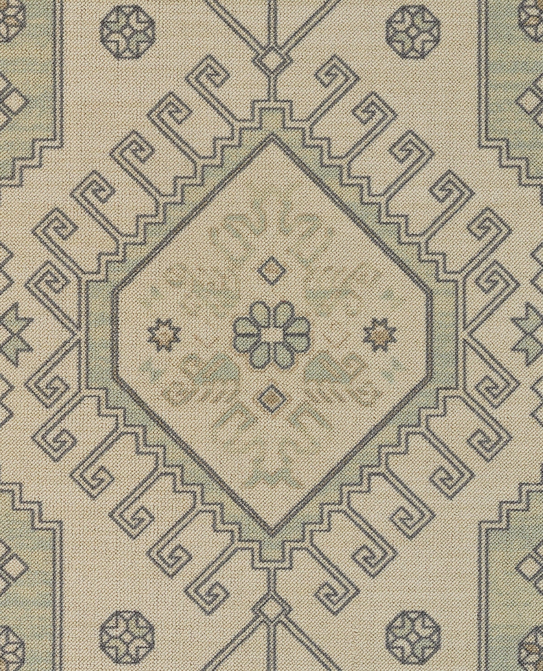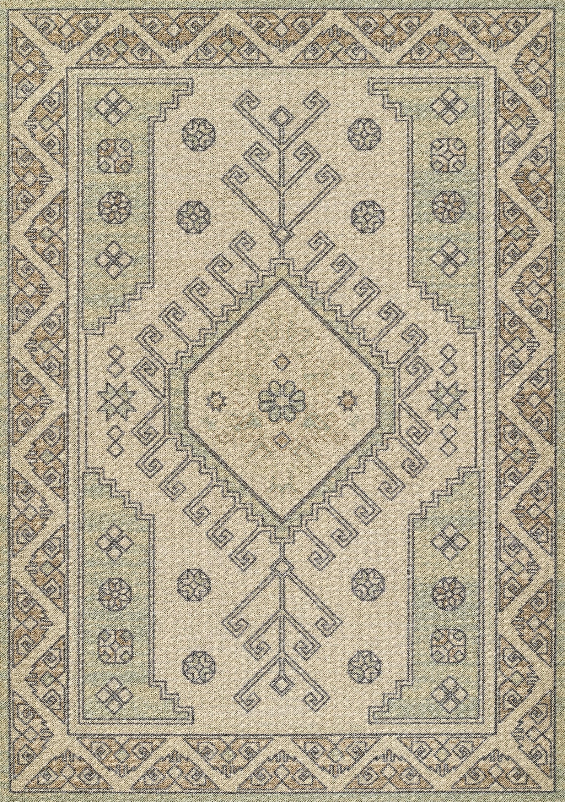 Part of the Anatolia collection, this sage colored rug embodies a tribal look and feel thanks to its vine-like detailing and border. Machine printed, the pile of this rug is composed of 50% nylon and 50% wool, making it a both a beautiful and affordable option to grace your home with.