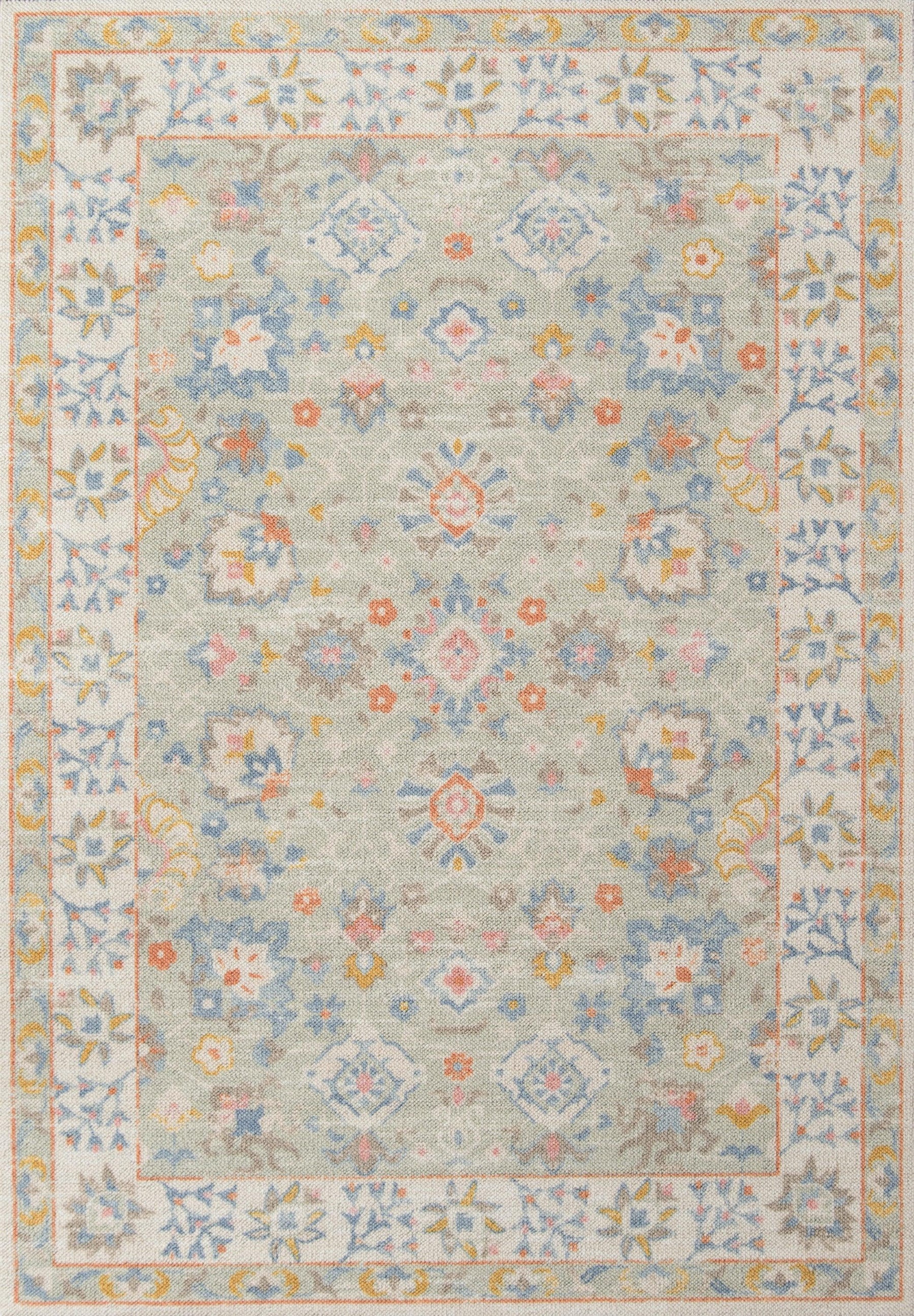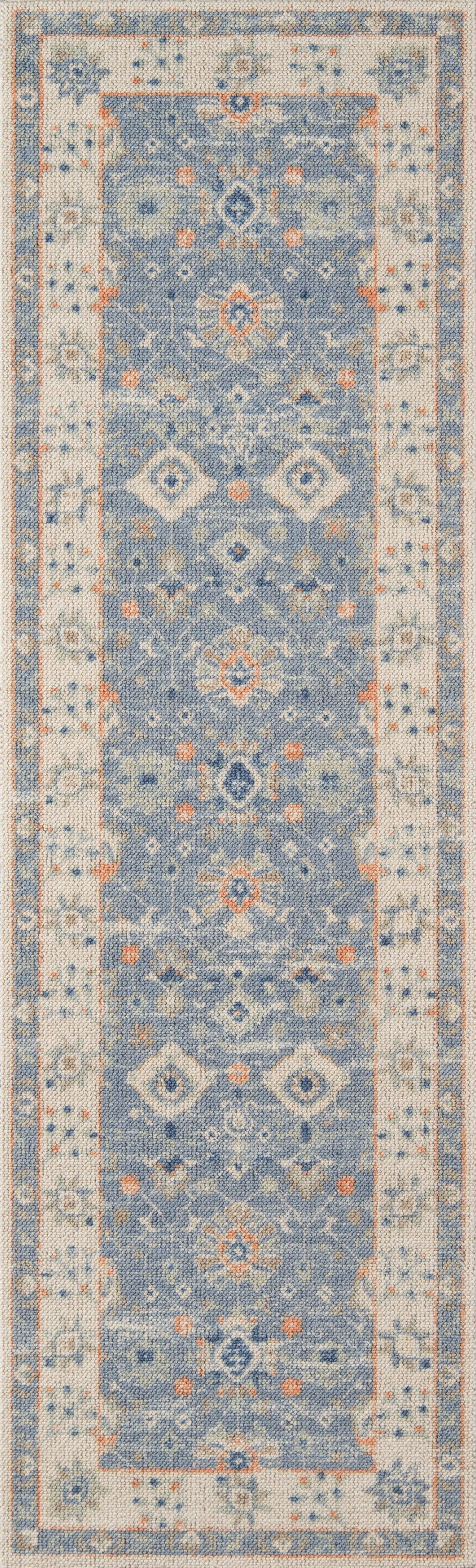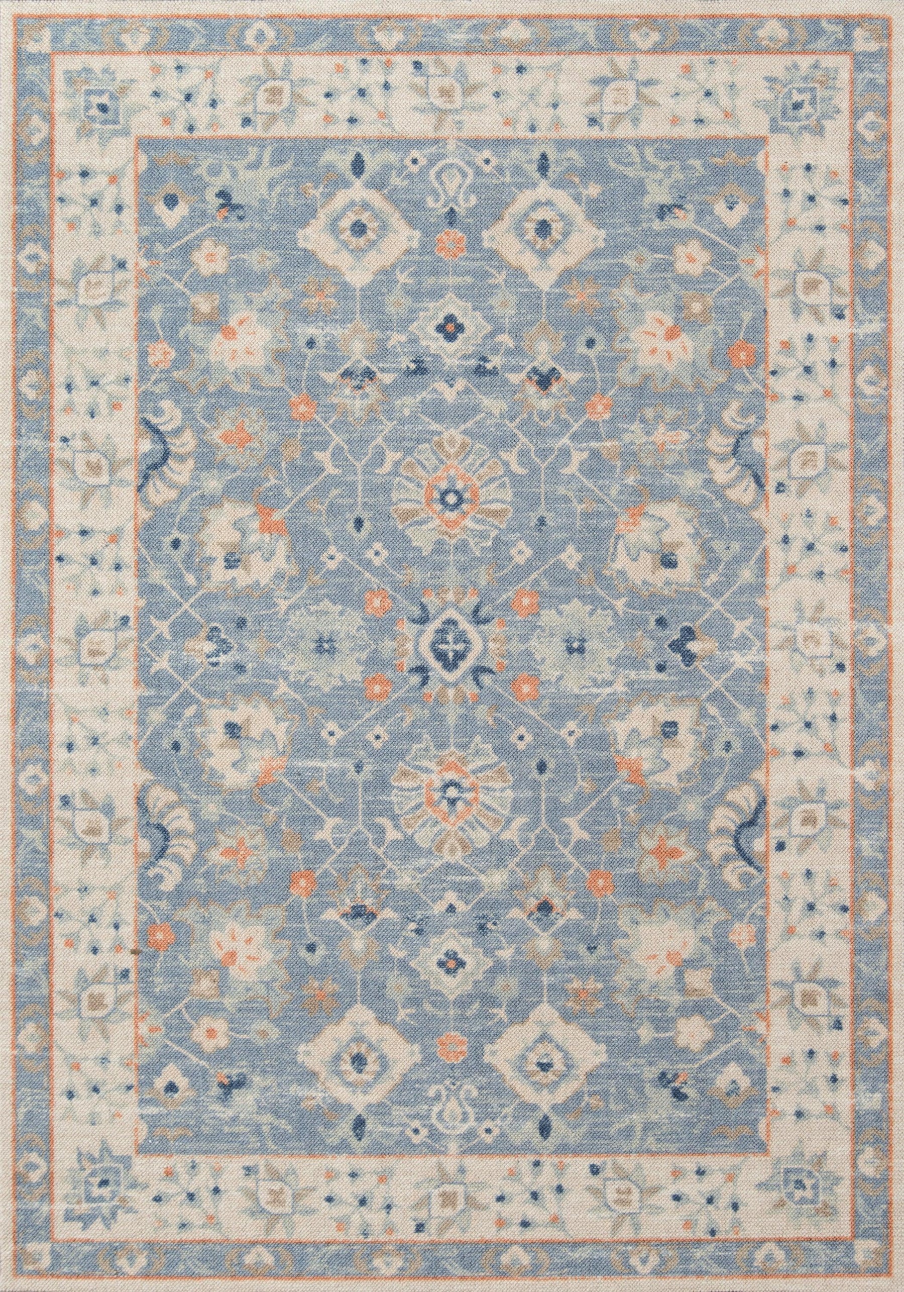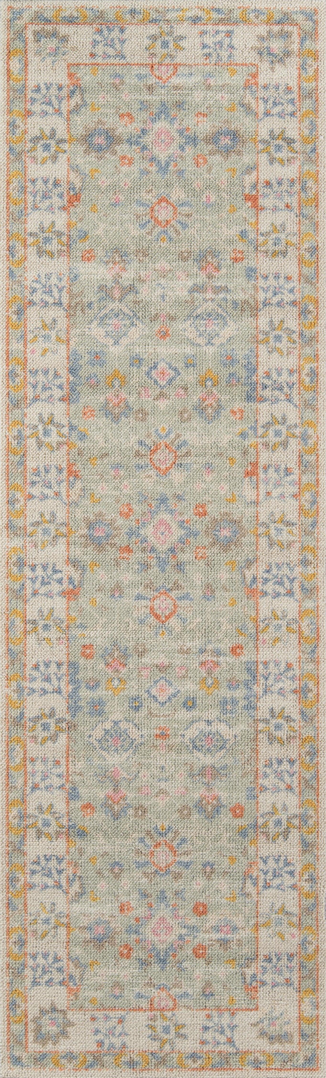 The pastel color palette of the Anatolia Collection presents the softer side of tribal style. Subdued shades of pink, baby blue and brown fill the field and ornamental rug borders with classical medallions and vine and dot motifs. Crafted in an innovative combination of natural wool and nylon threads, modern machining mimics ancestral weaving techniques to create a series of chic floor coverings that are superior in beauty and performance.