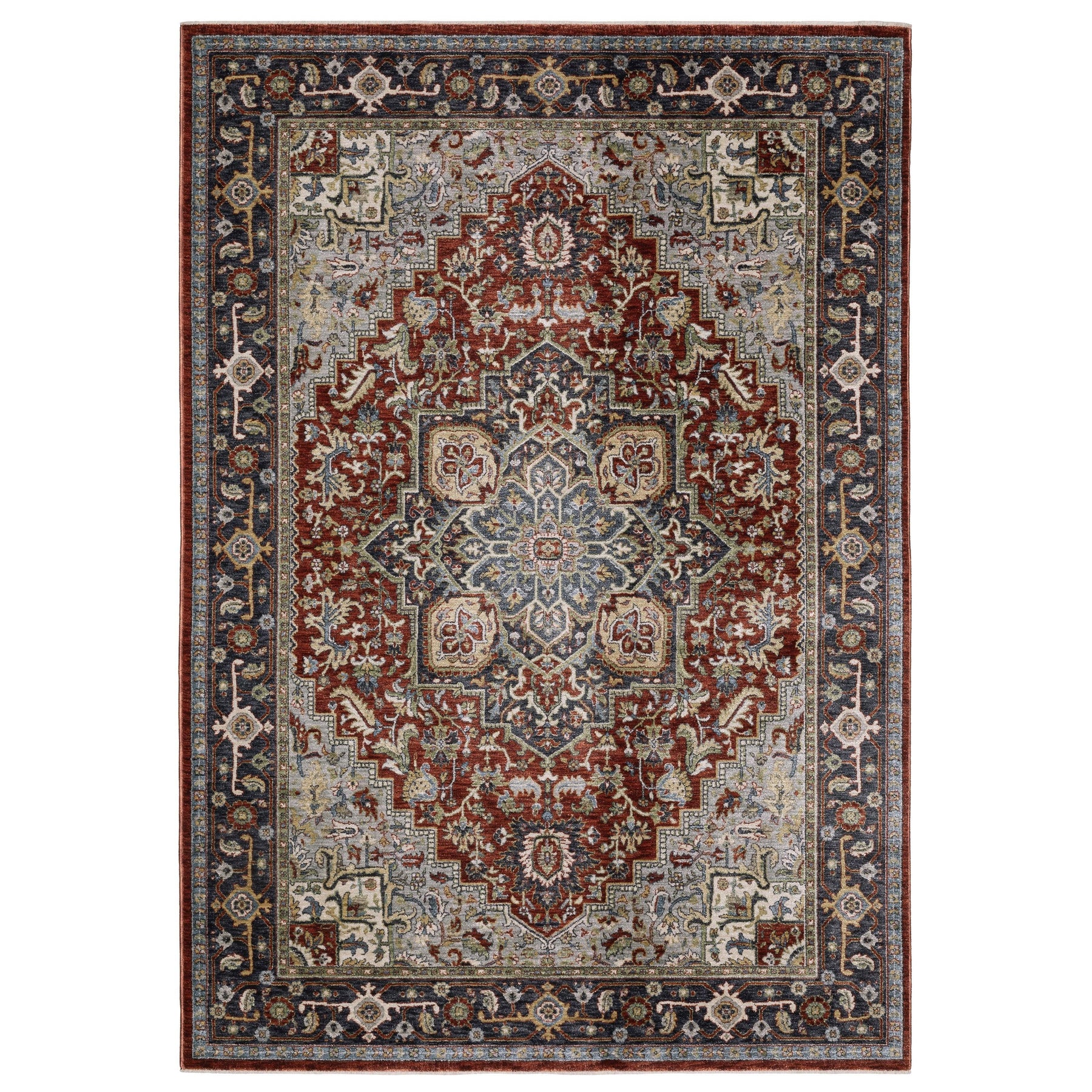 The Eliana collection is power-loomed of space-dyed polyester with a high twist level. The textural yarn offers a beautiful lustrous finish and a super soft hand. Traditional Persian styling comes to life as striking mineral tones of warm cinnabar and cool cordierite contrast with subtle earthy shades of moss green and birch. Machine made in Egypt.