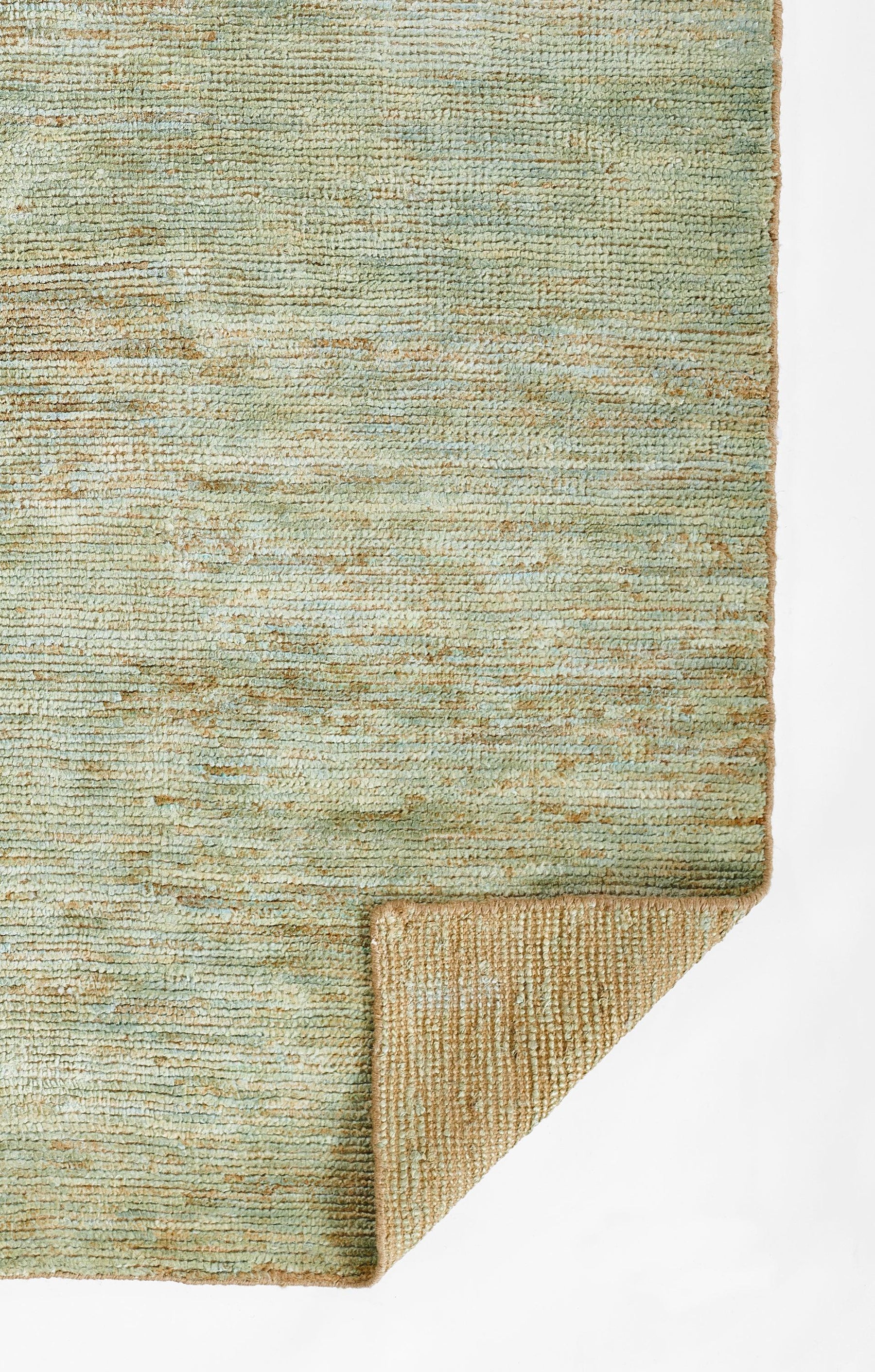 Endlessly versatile, the tonal shades of blue blend together beautifully within this hand-knotted rug. Made with a durable mix of jute and cotton, it's meant to hold up to the hustle and bustle of a busy house. Practically made to be layered, this style would look beautiful placed underneath another small rug in a sitting room, or on its own in a covered patio.
