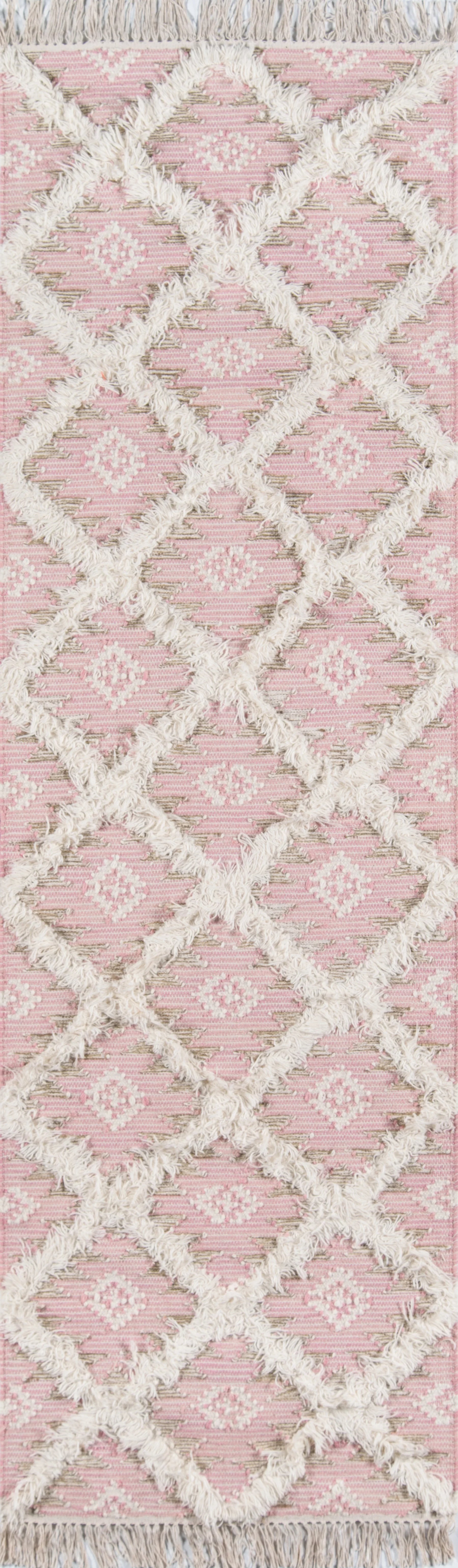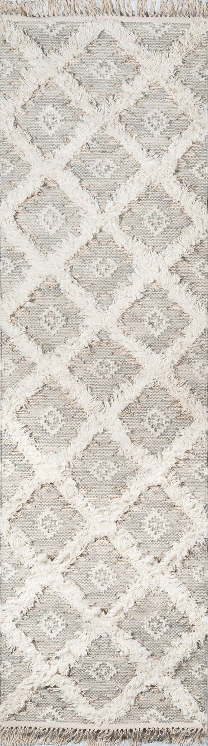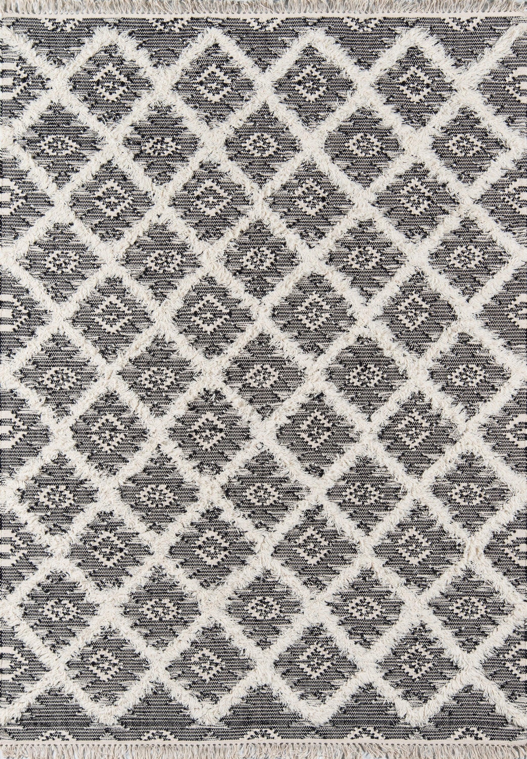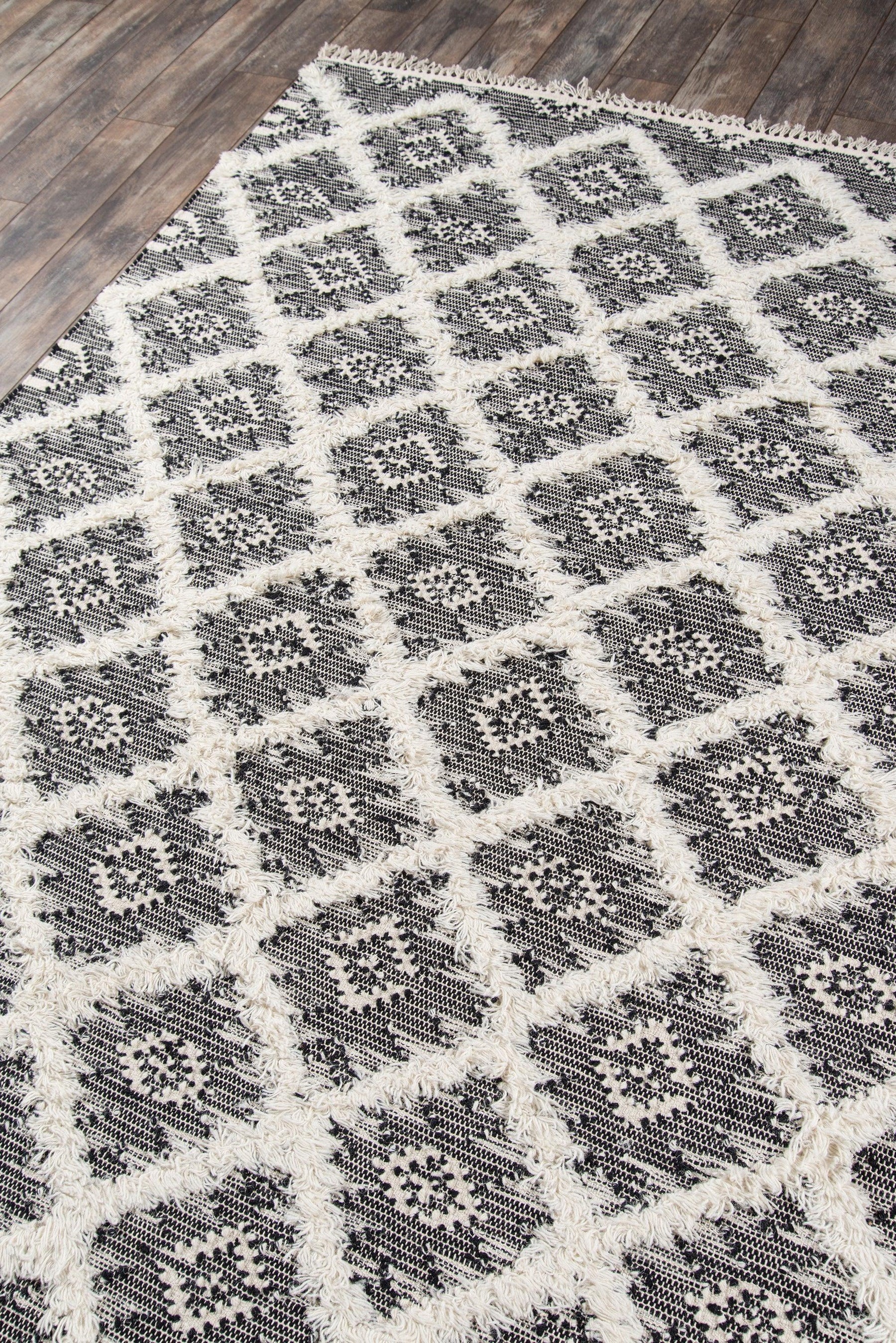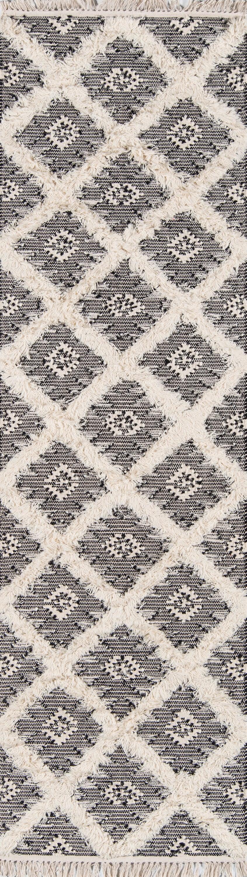 With tribal designs inspired by the desert, this area rug captures the essence of Southwestern design. Each decorative floorcovering presents a fresh take on centuries-old geometric tapestries, with alternating weaving techniques that develop depth and dimension throughout the diamond trellis pattern. Hand woven from 100% natural wool threads, the top and bottom of each rug gets a touch of texture with fringed tassels.
