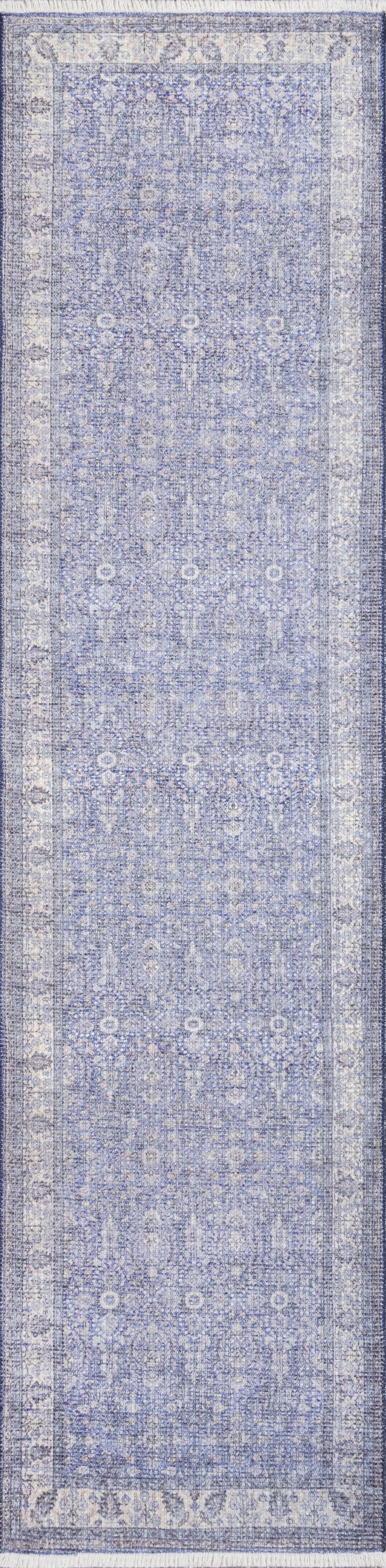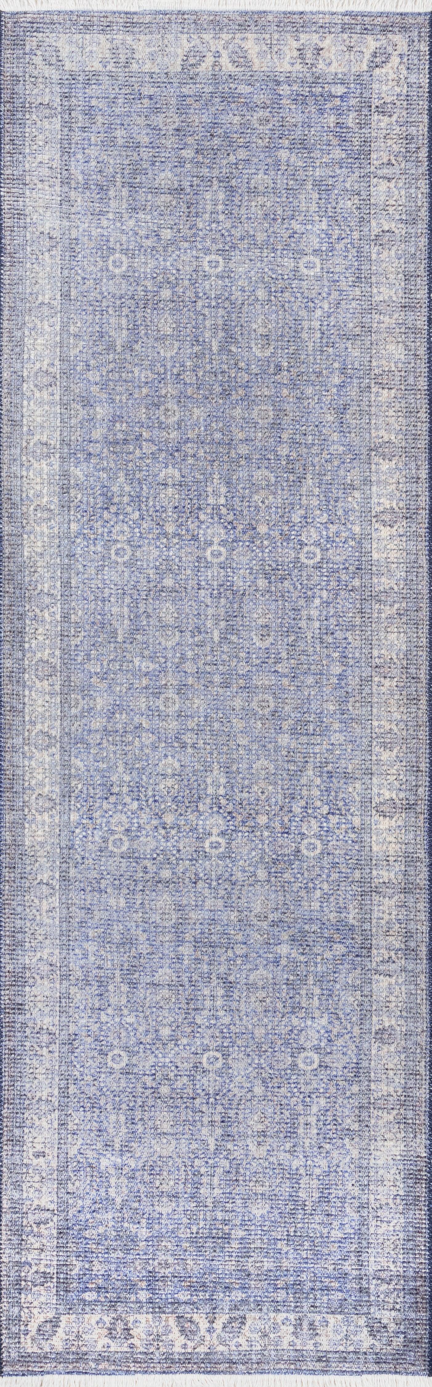 There’s beauty in a rug with history, but thanks to fabric printing technology a brand new rug can possess the same charm with a longer lifespan. With the same traditional pattern you’d expect from a Turkish-style rug but uniformly overdyed in a pale blue, it’s a classic and understated piece.