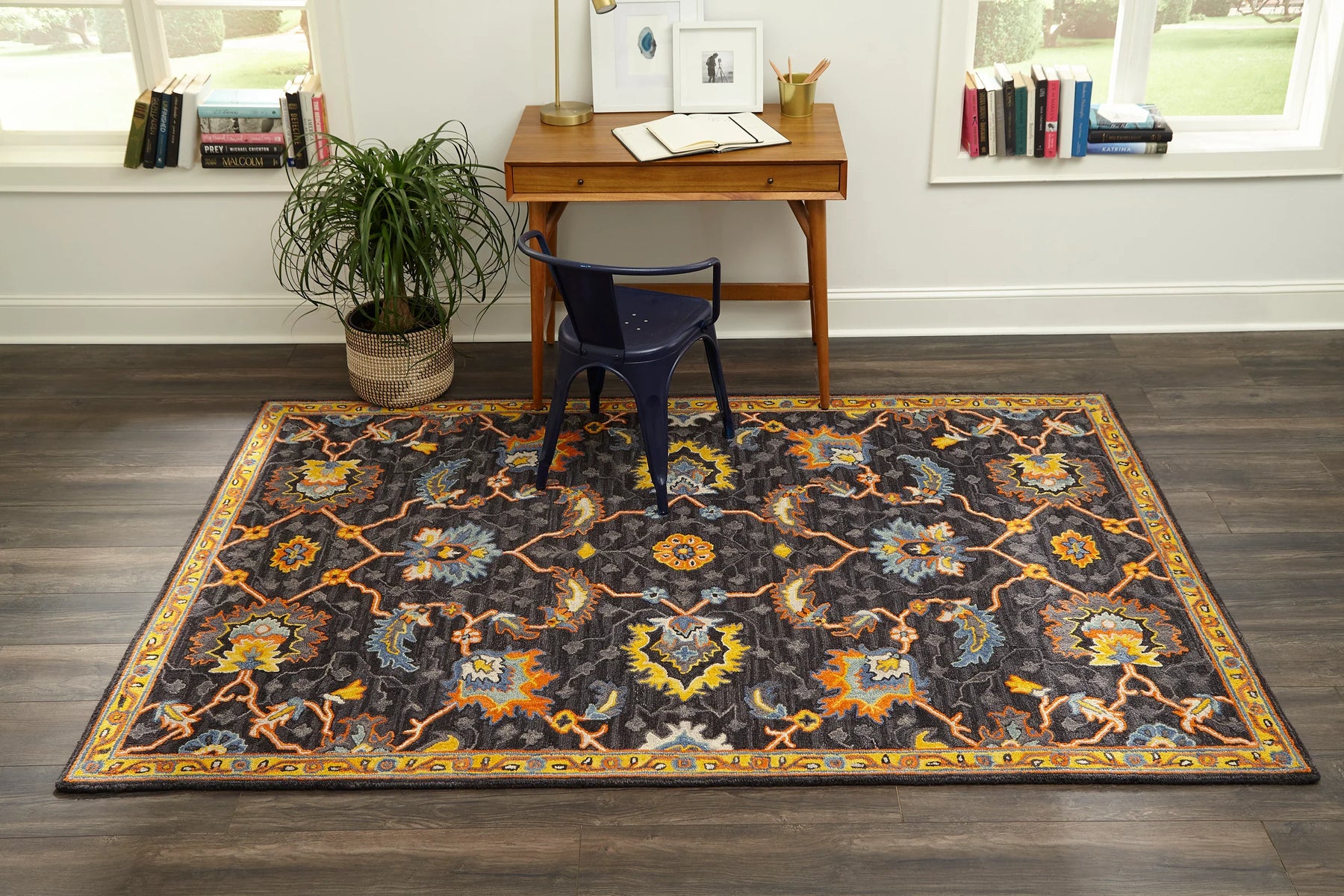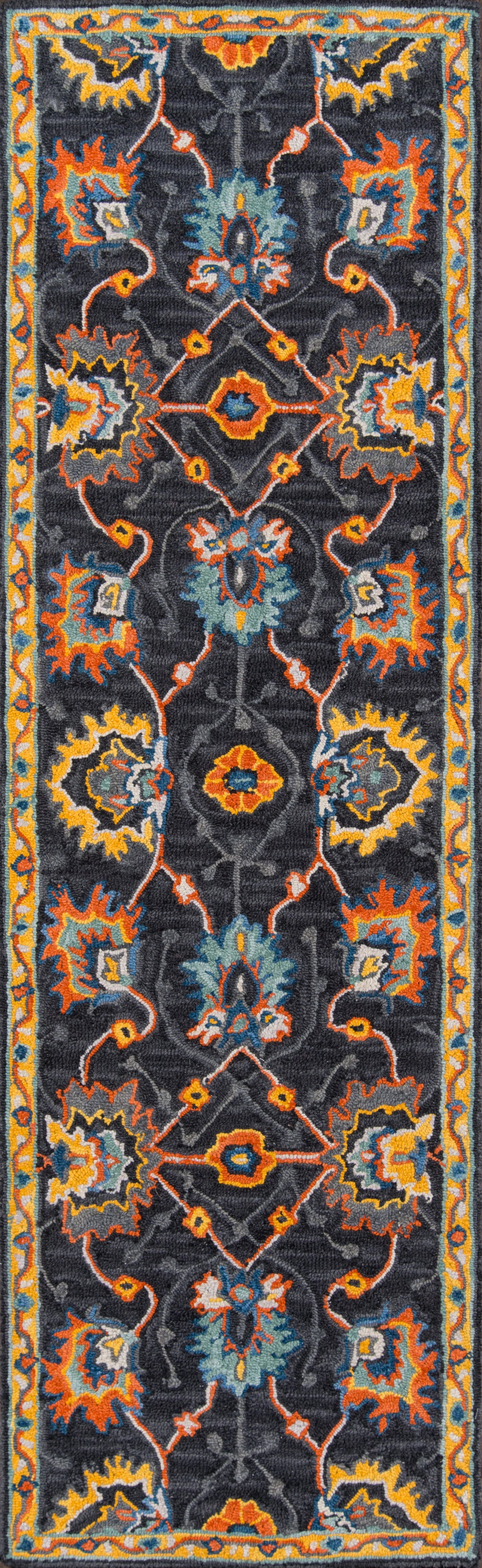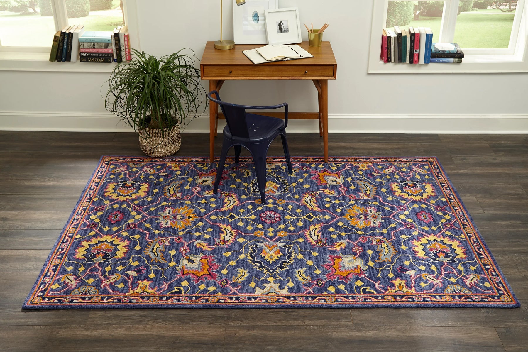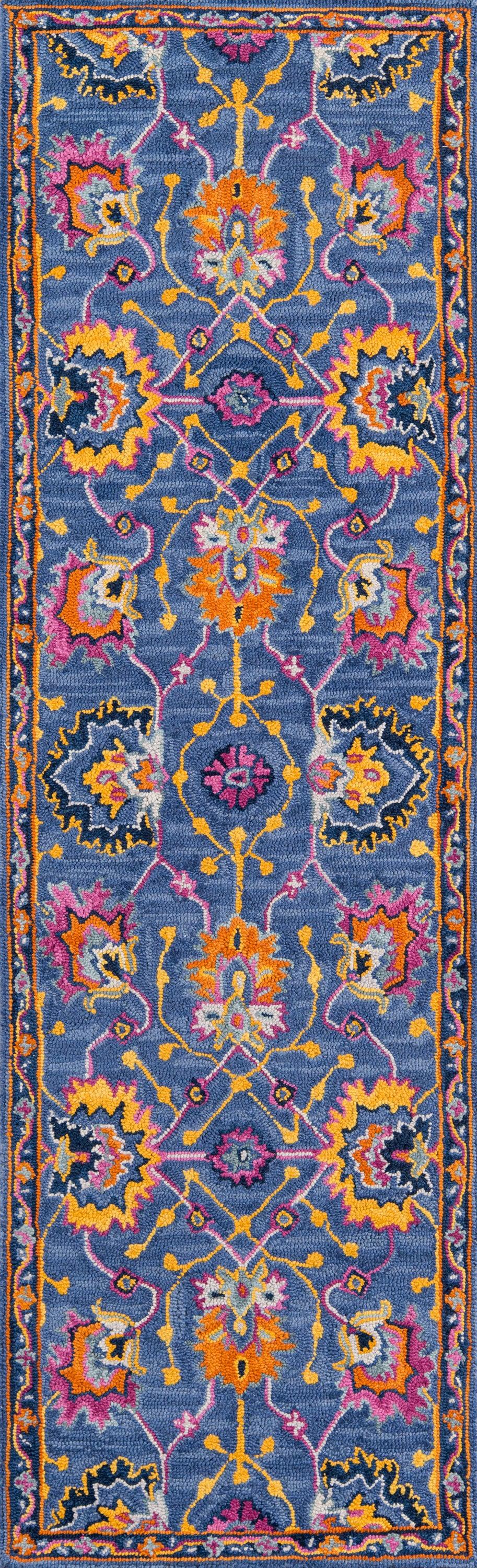 The saturated shades of this decorative area rug reinvent the classic Persian carpet in a vivid color palette. The captivating assortment offers a modern interpretation of traditional rug motifs, as vibrant pink, orange, blue and yellow tones form flowers, vines, palmettes and medallions in colors beautiful and bold. Hand tufted from 100% natural wool, each floorcovering makes a dramatic design statement as a focal point on floors throughout the home.