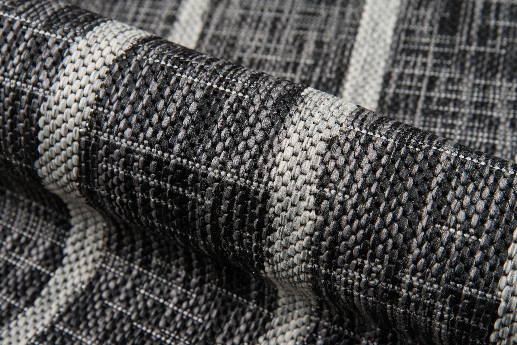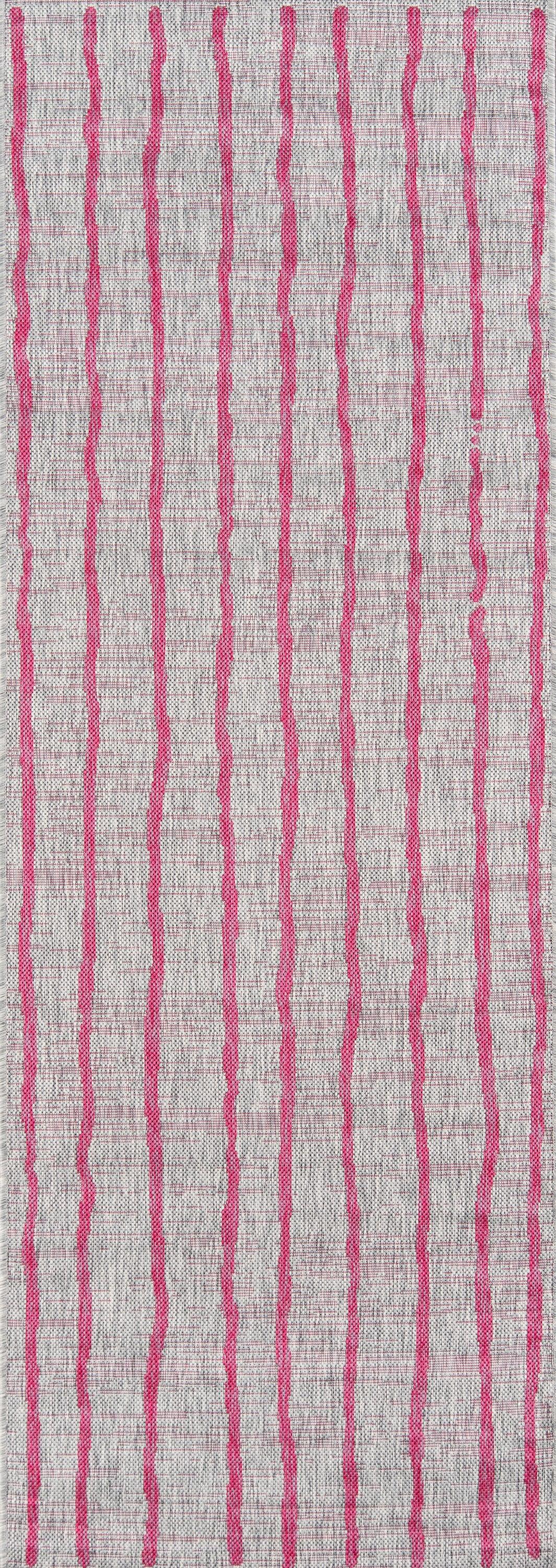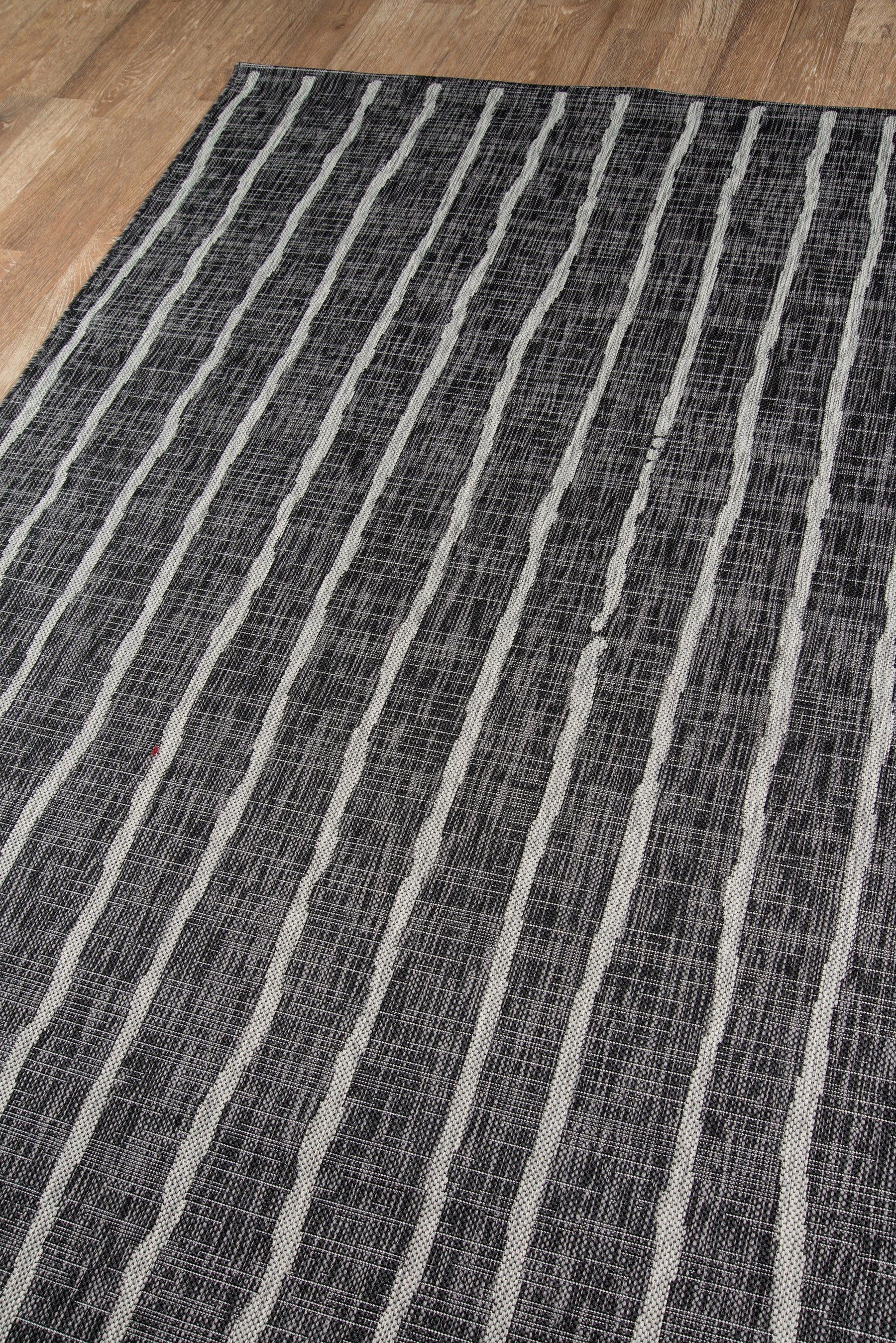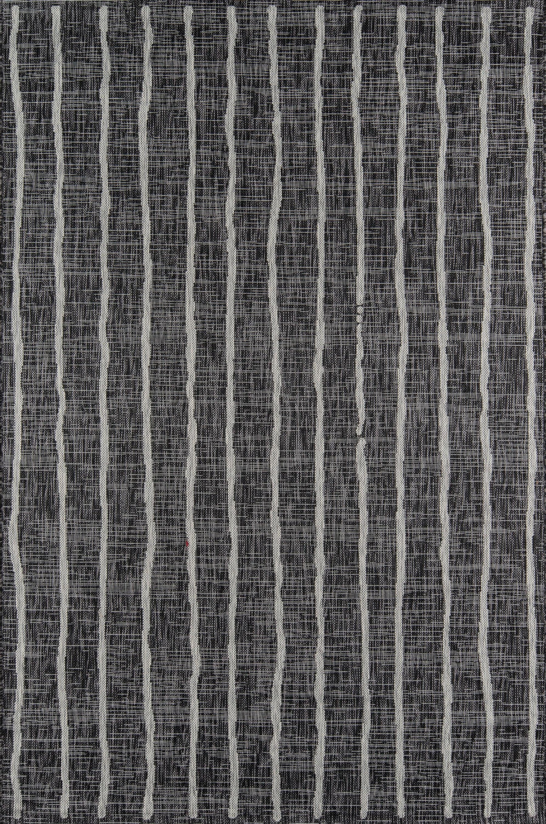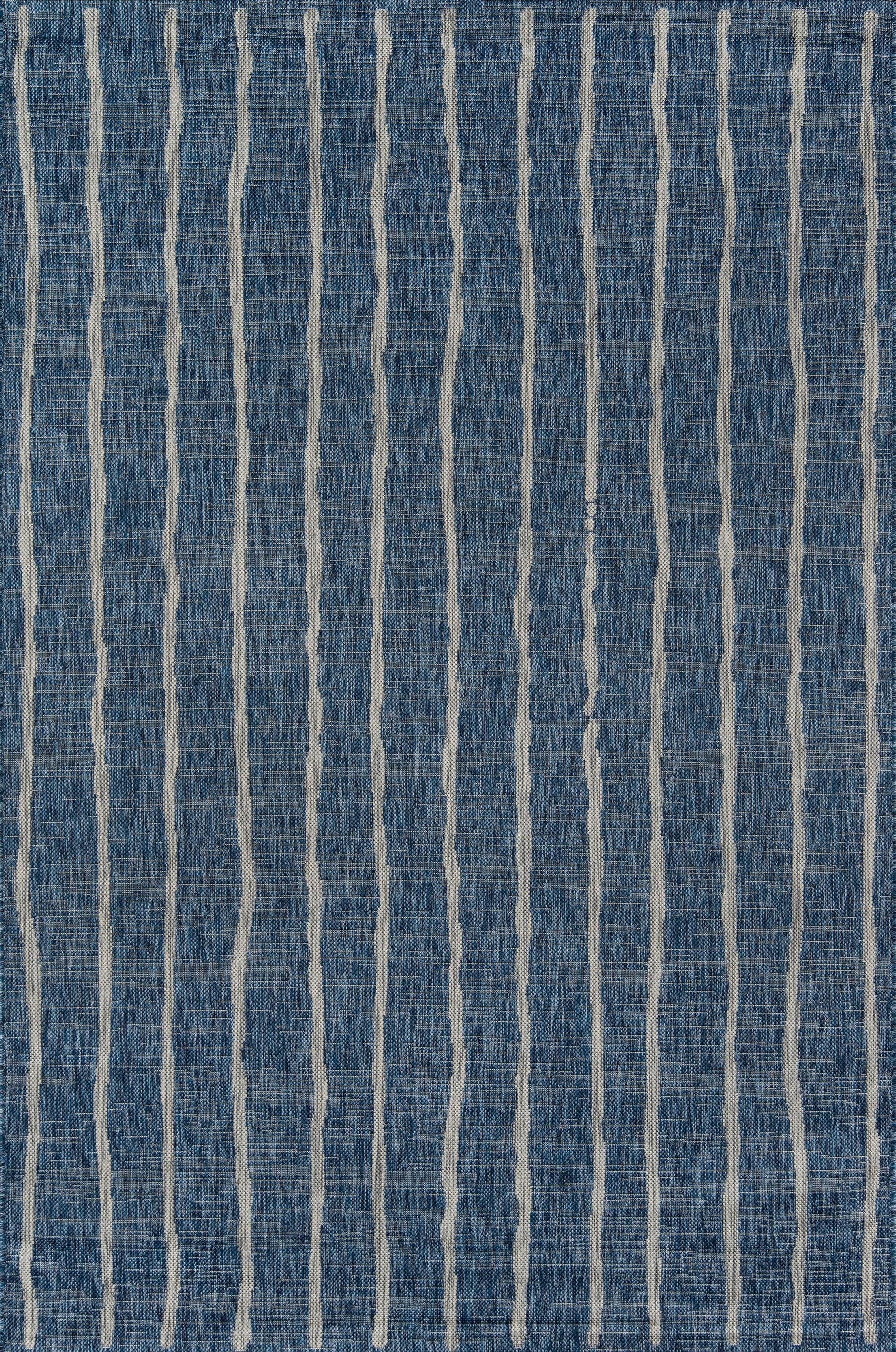 Modern flooring design lies within the lines of this indoor/outdoor area rug. As casual and cool as a classic pair of corduroys, the irregular grey striping down the length of the striated blue rug field elongates the proportions of the room with its freehand linear pattern. Resilient polypropylene fibers are stain, heat and UV-resistant, retaining their color and texture throughout consistent exposure to the elements.