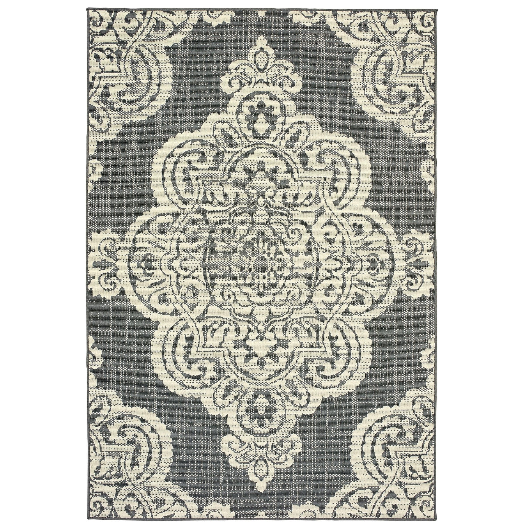 Marina is an elegant new introduction for indoor or outdoor use and features a 100% polypropylene looped yarn made in Egypt. It features a classic neutral palette using high contrast colors like black, ivory, deep navy, sand and cool gray. The collection includes casual but sophisticated patterns like updated geometrics and simplified traditionals that all feel fresh but timeless.