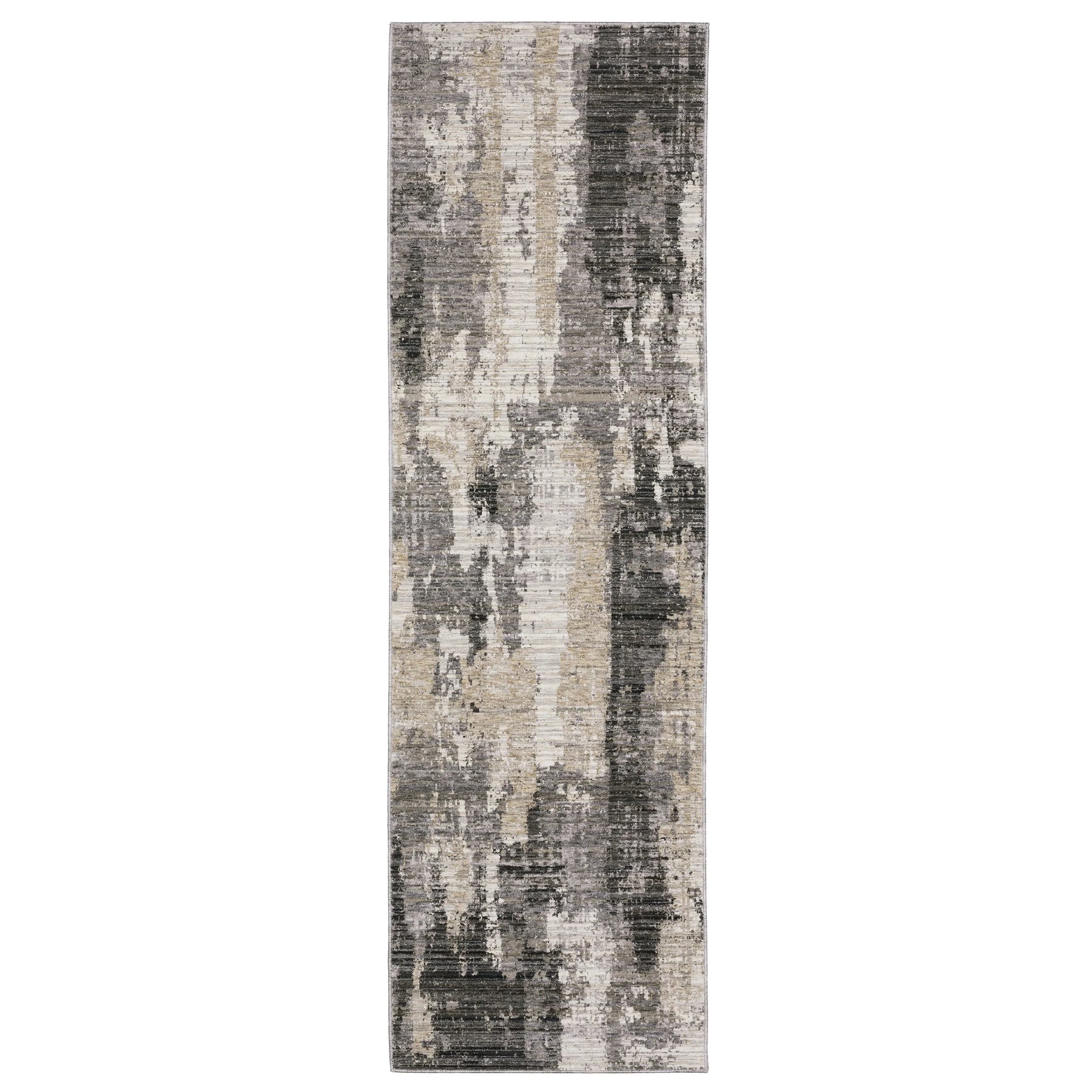 Nebulous is a dense, low profile, million-point collection that is power loomed of incredibly soft polyester yarns that are space dyed in a beautiful range of neutral shades from deep charcoal to soft ivory. Accent yarns of multi-level shrink polyester add surface interest to the modern abstract designs and tonal, textural patterns in the collection.