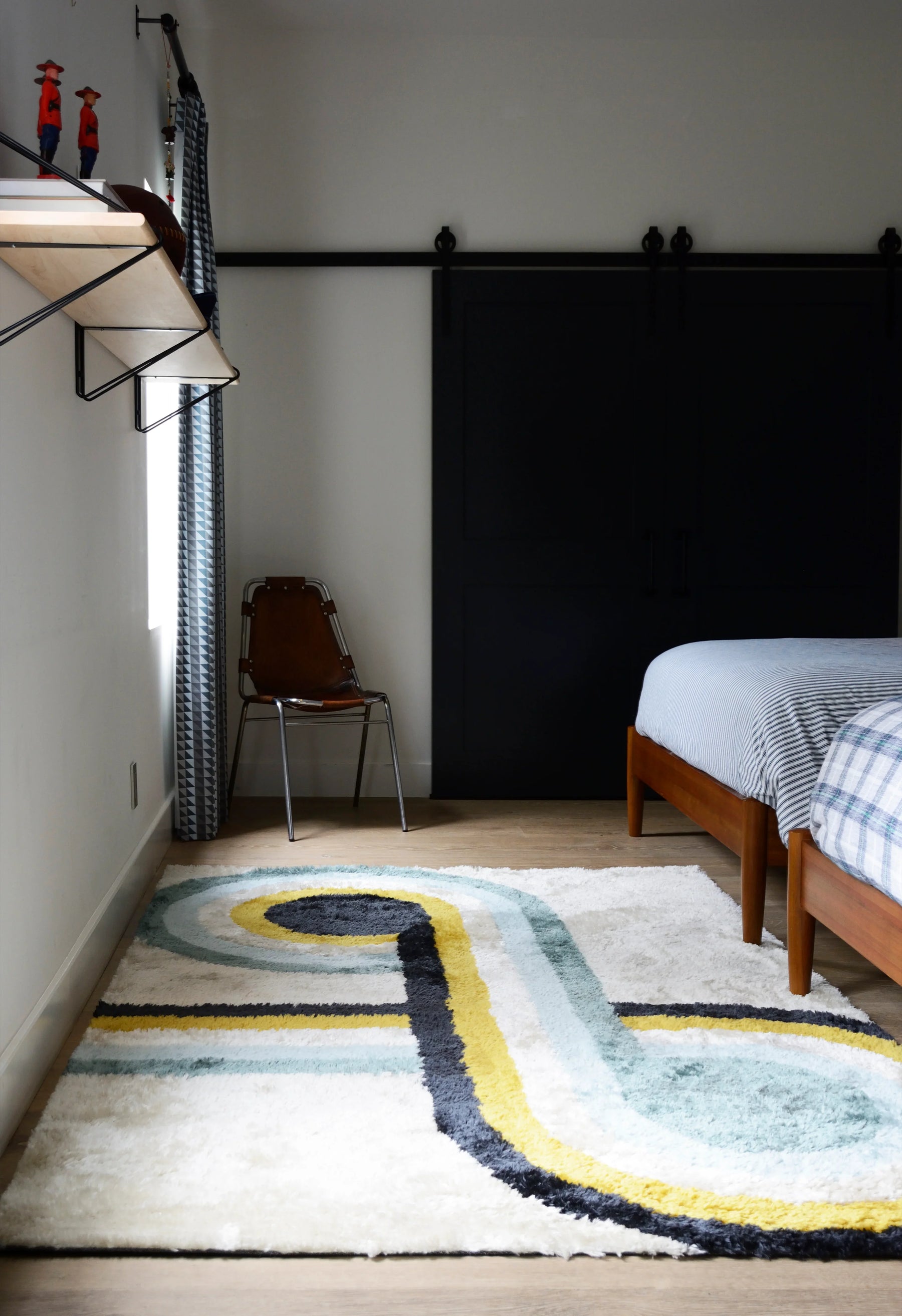 Inspired by mid-century design with its groovy shapes and shaggy textures, this modern area rug features Scandinavian style straight from the 70s. Each decorative floorcovering reimagines retro swirls, prisms and curves in combinations of burgundy red, grass green, sky blue and soft pink. Artfully crafted from polyester threads, these hand-tufted rugs pair perfectly beneath an Eames chair, papasan or pouf.