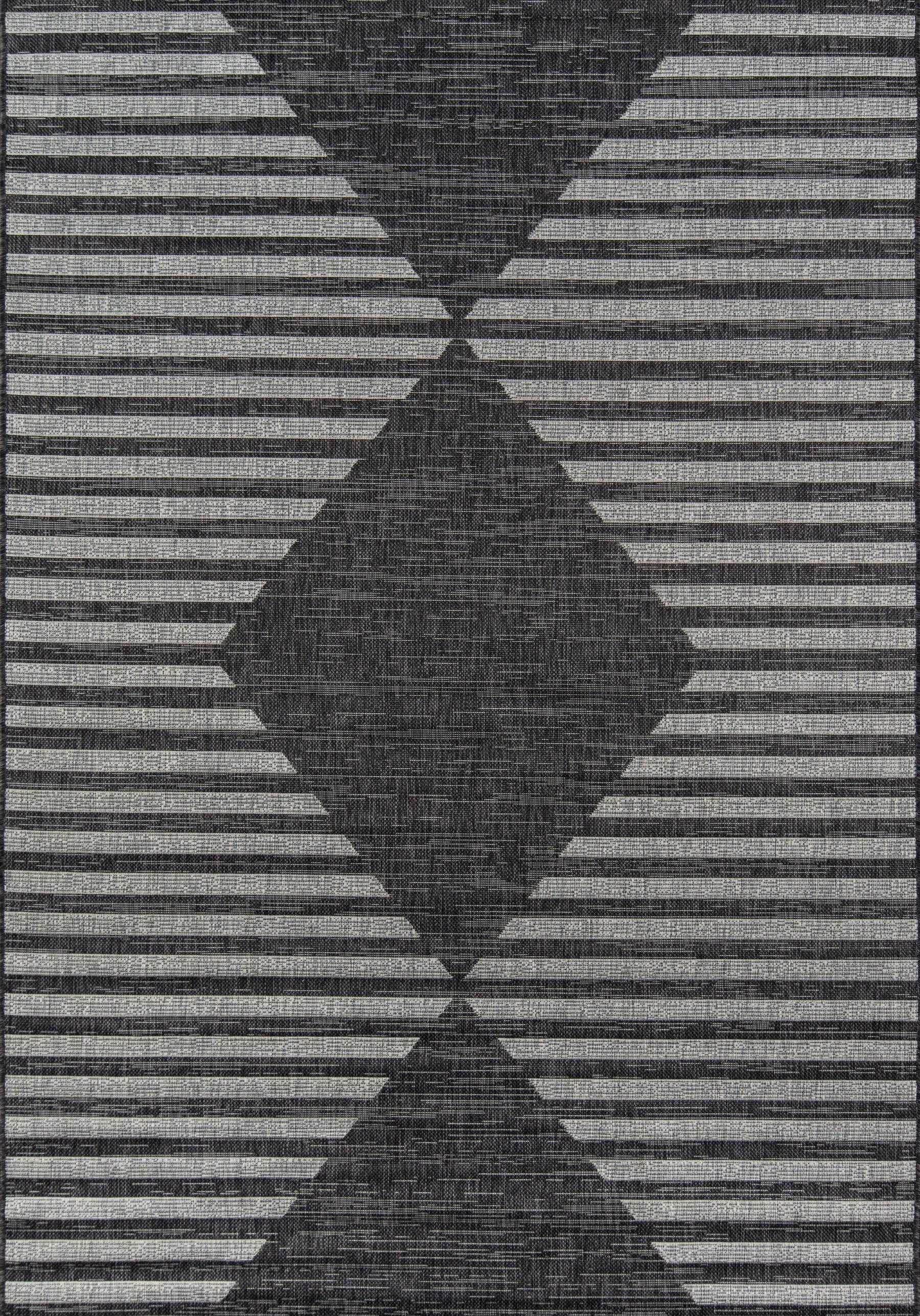 An indoor/outdoor rug assortment that exudes contemporary cool, this modern area rug collection features repetitive patterns inspired by international architectural motifs. The all-weather rug series emphasizes graphic geometric prints, using high contrast charcoal grey, chambray blue, fuchsia pink and russet red shades to draw attention toward the floor. Manufactured from durable polypropylene fibers, the decorative floorcovering series is a staple for statement-making interior and exterior spaces.