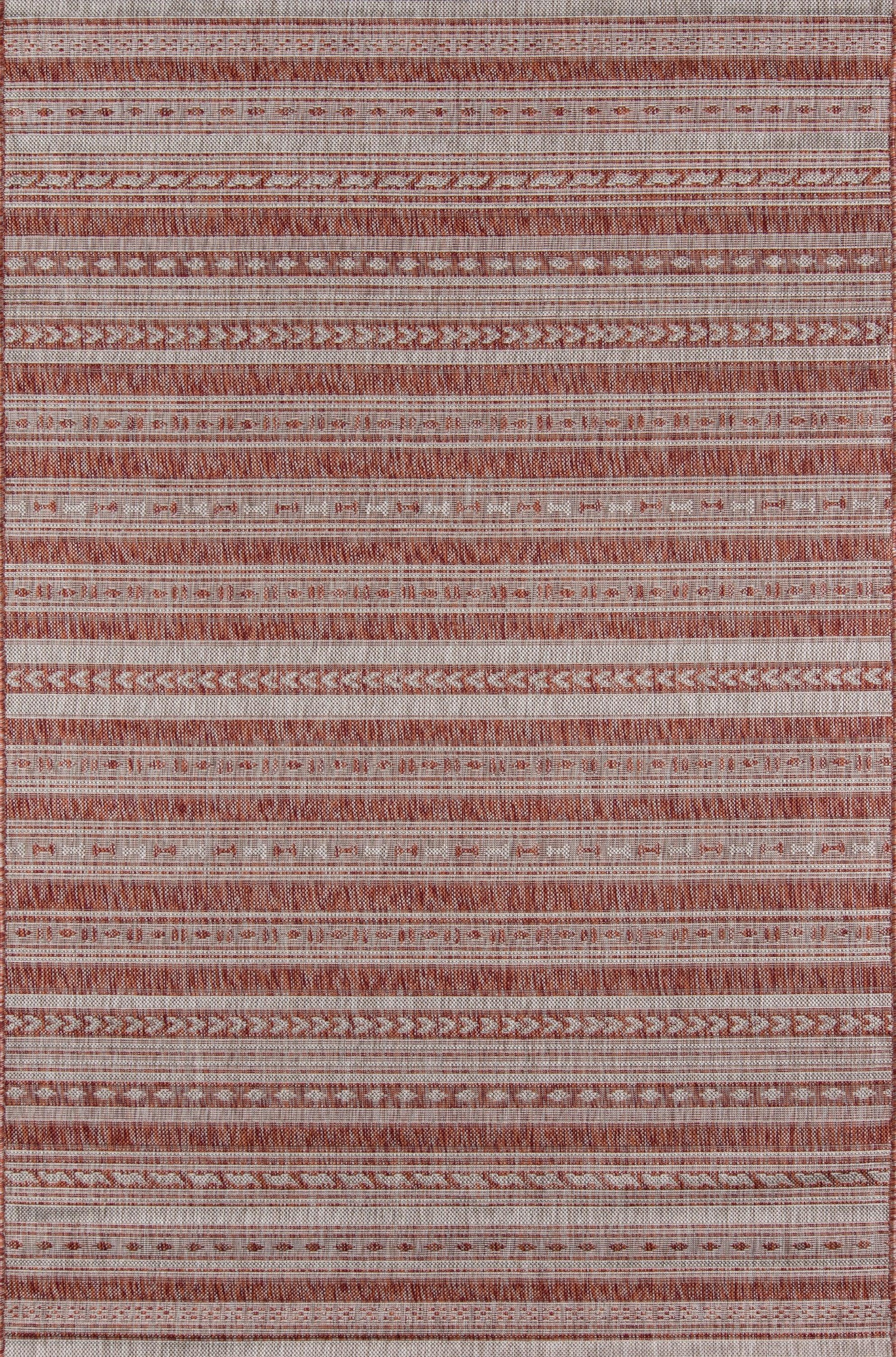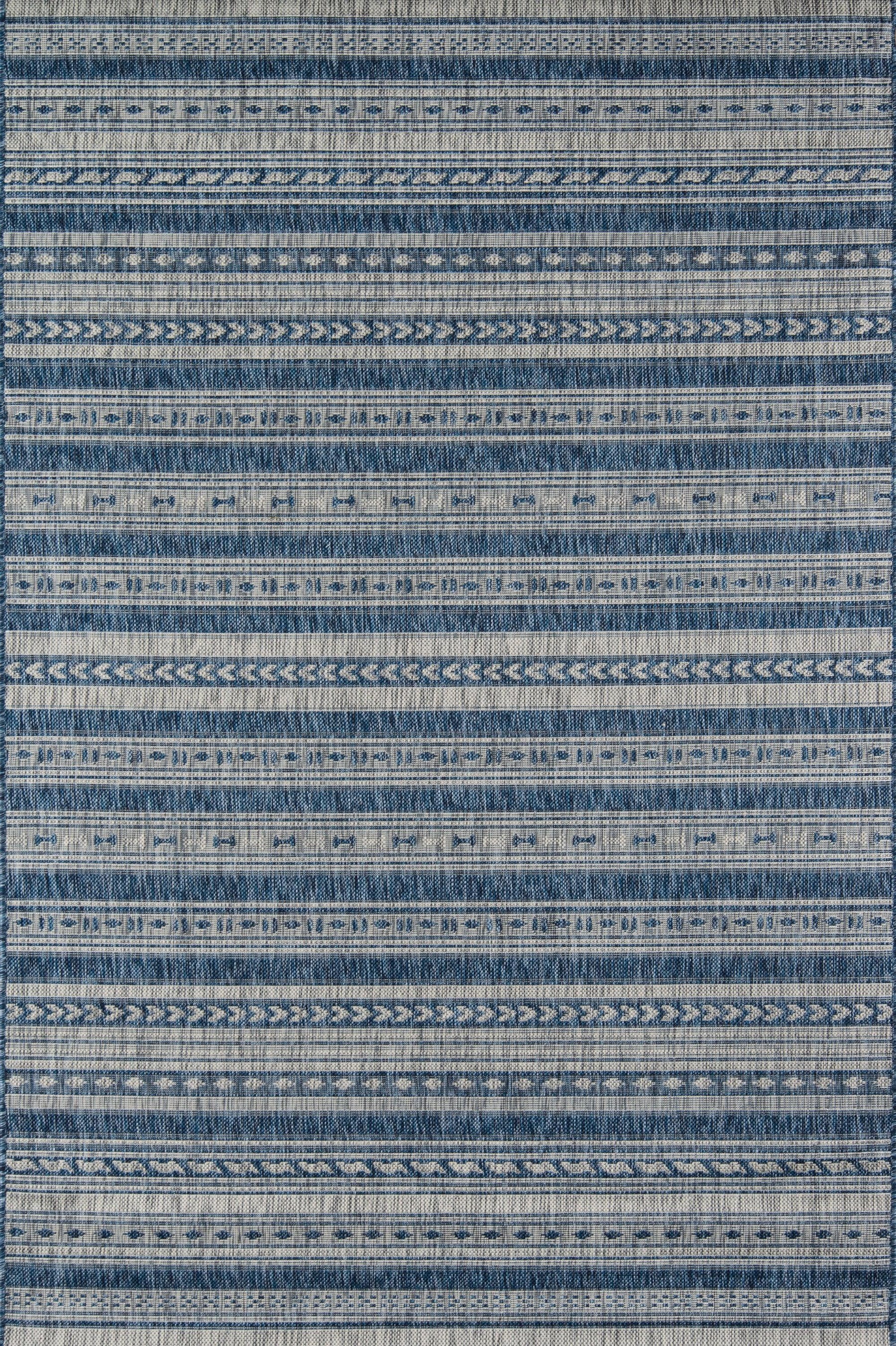 Inspired by the intricate decoration of Italian textile prints, this indoor/outdoor area rug features an all-over pattern that truly goes everywhere. The blue-and-white striped rug plays with geometric shapes and exotic tribal motifs, each row varying in ornamental embellishment as it adorns interior and exterior floors. Resilient polypropylene fibers are stain, heat and UV-resistant, retaining their color and texture throughout consistent exposure to the elements.