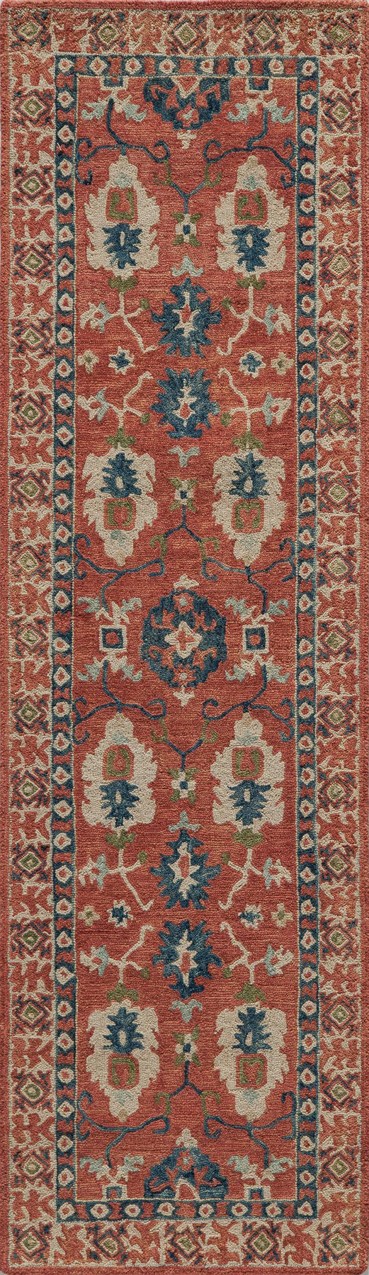 A deep, bold red, sometimes embracing a rich primary color adds an unexpected punch of color to a room. This rug would pair beautifully with a cream or navy solid colored couch. Handmade from 100% wool, it’s built to hold up to wear and foot traffic, but because it’s tip sheared it still feels wonderful and luxe underfoot.