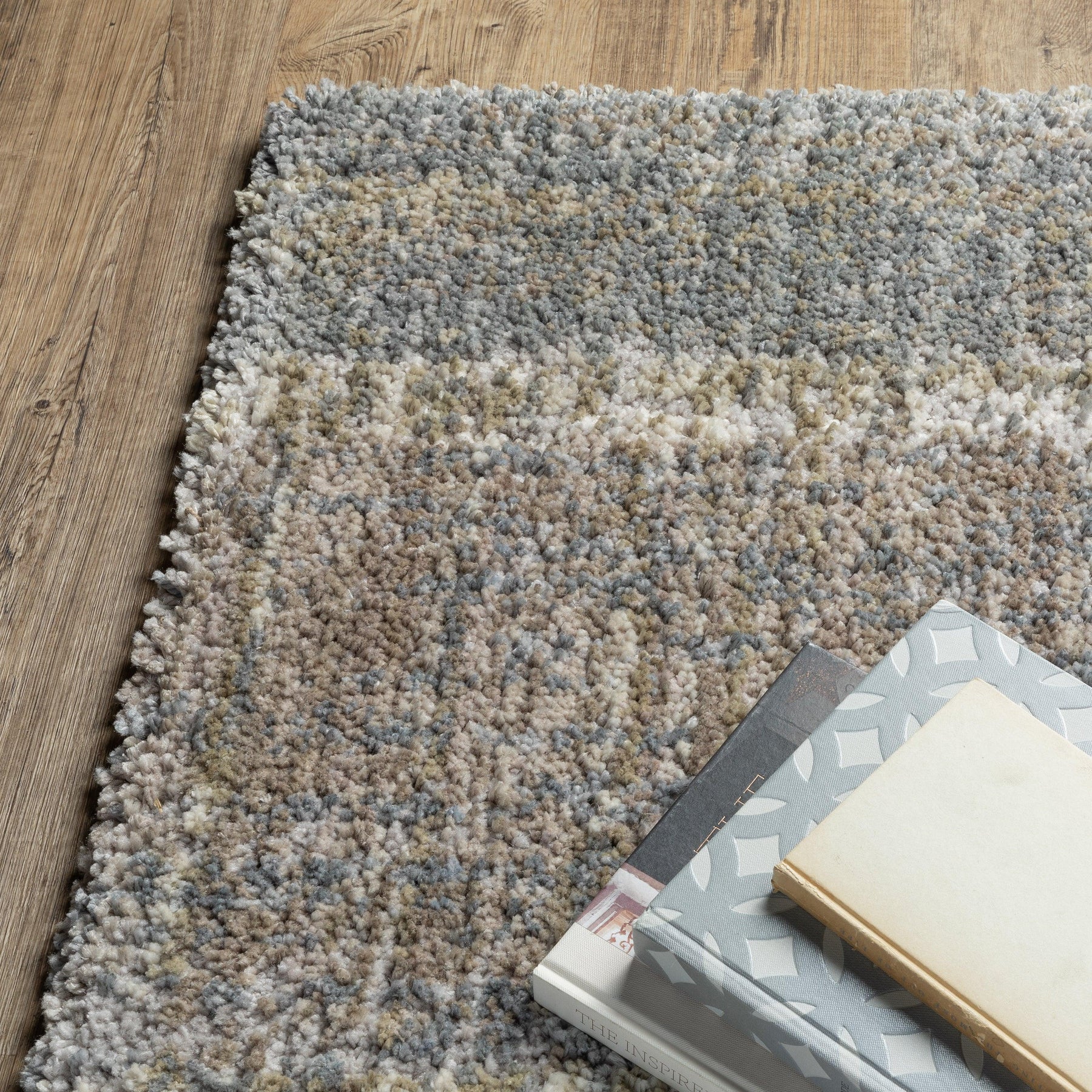 Aspen is power loomed of super soft space dyed microfiber polyester. This shag features a beautiful color palette focusing on shades of blue and gray in textural "active solids" as well as modern abstract looks. The dense, soft hand is amazing!