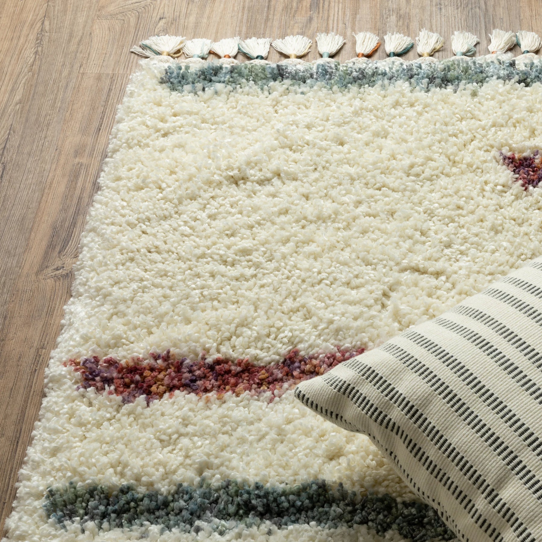The Axis collection showcases multi-colored space dyed yarns and on-trend tassel fringe. It is power-loomed of soft polypropylene. The dense, high-pile construction offers a super soft textured hand and features modern global stylings in fresh, fun colors.