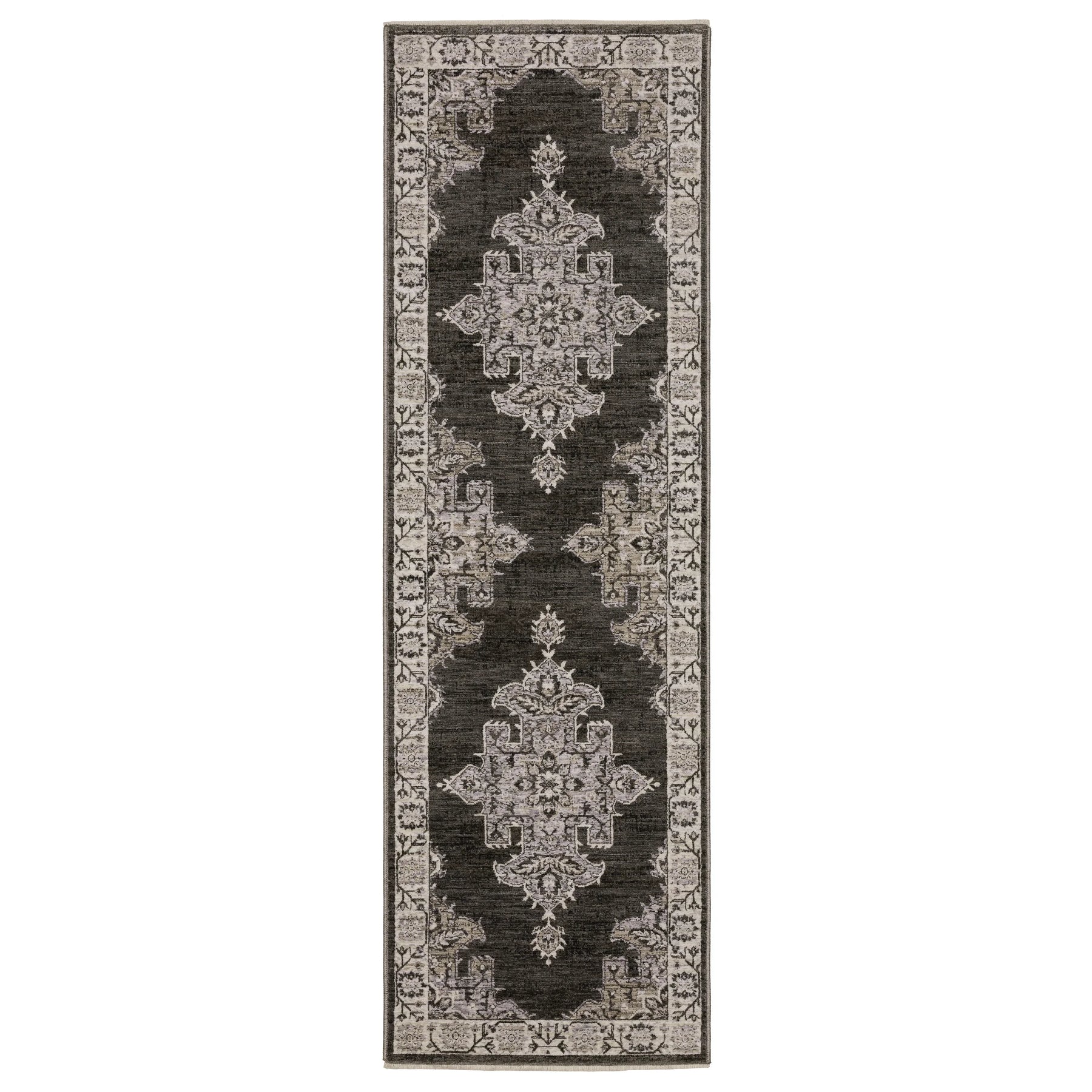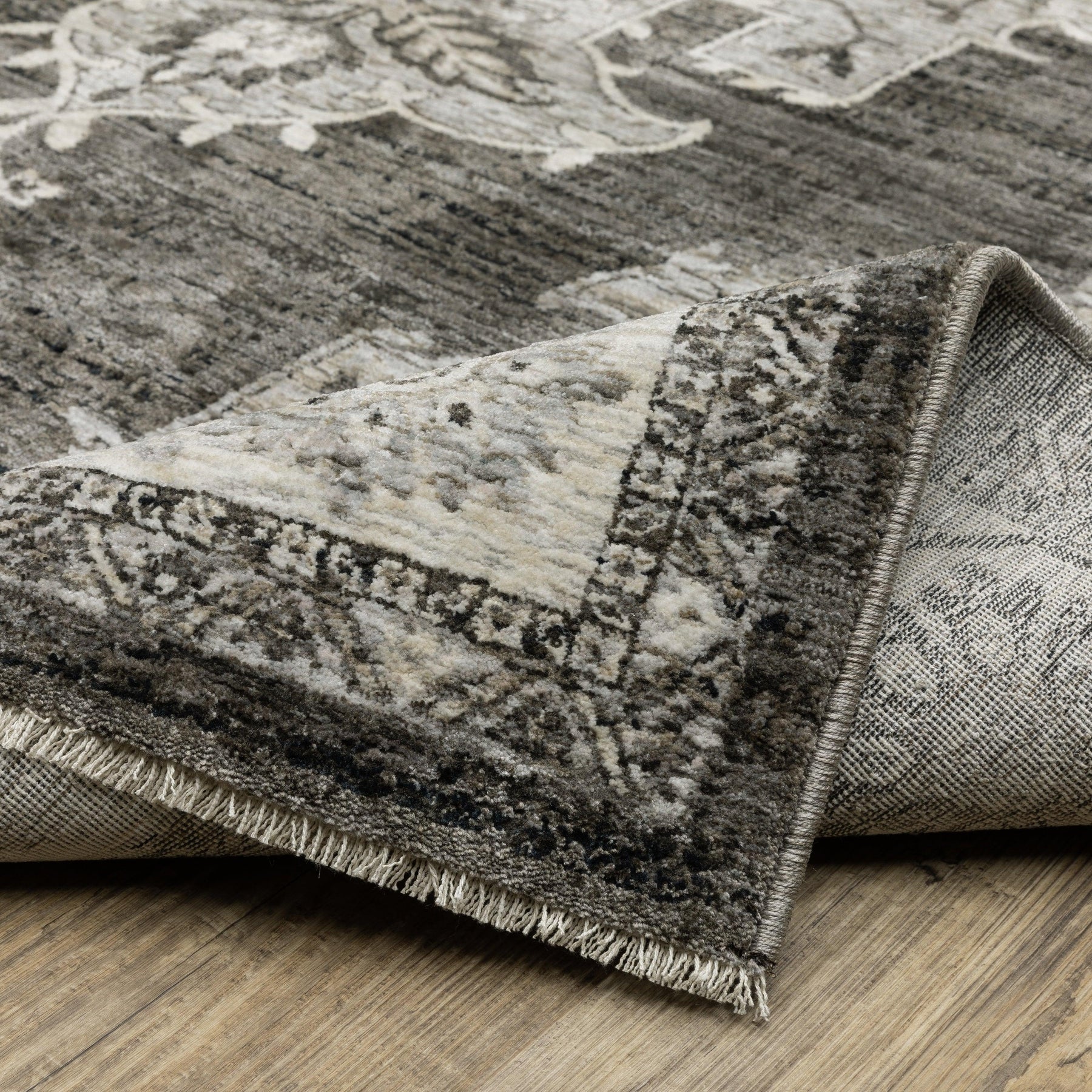 The Chamberlain collection features a dense, low profile, million-point construction power-loomed of incredibly soft polyester yarns that are space-dyed in a beautiful range of neutral shades from deep charcoal to soft ivory. Accent yarns of multi-level shrink polyester add surface interest to global traditional designs, featuring Persian motifs in allover patterns, center medallions and a vintage stripe in the collection.