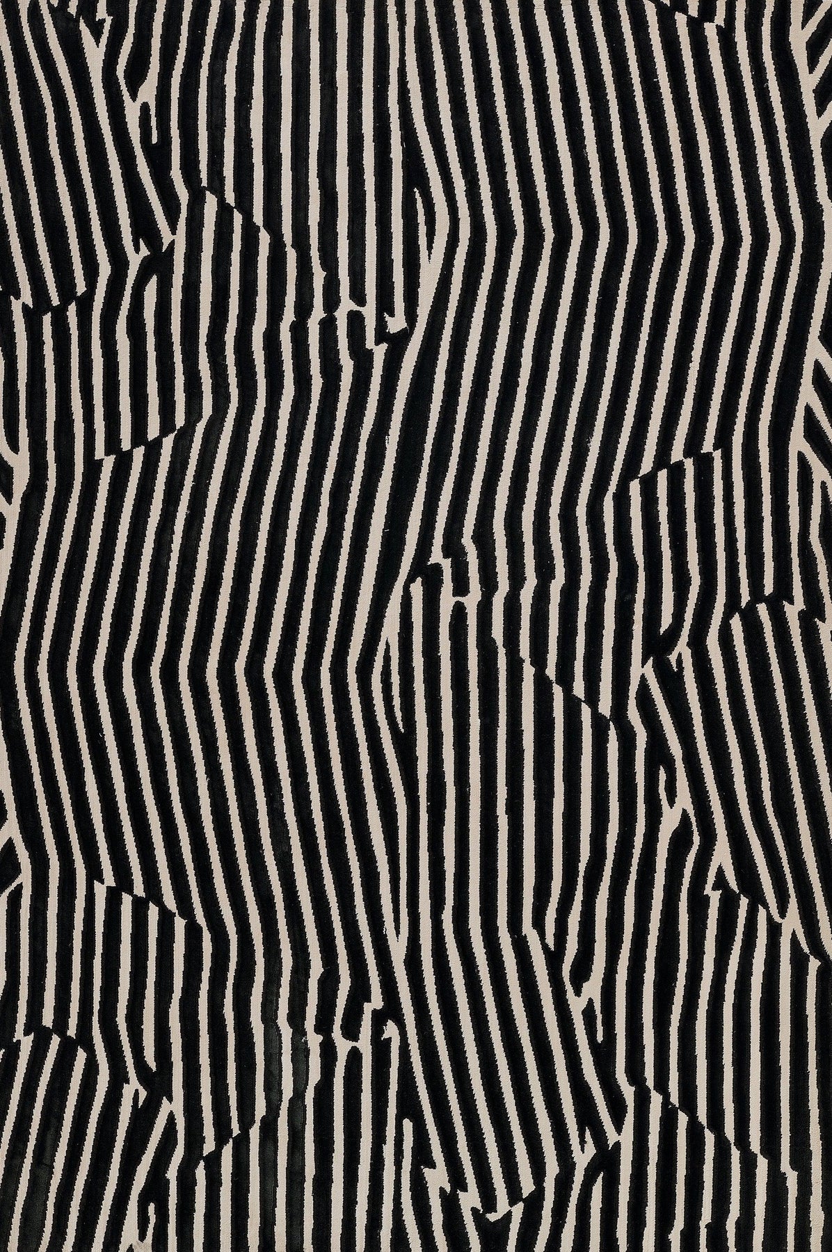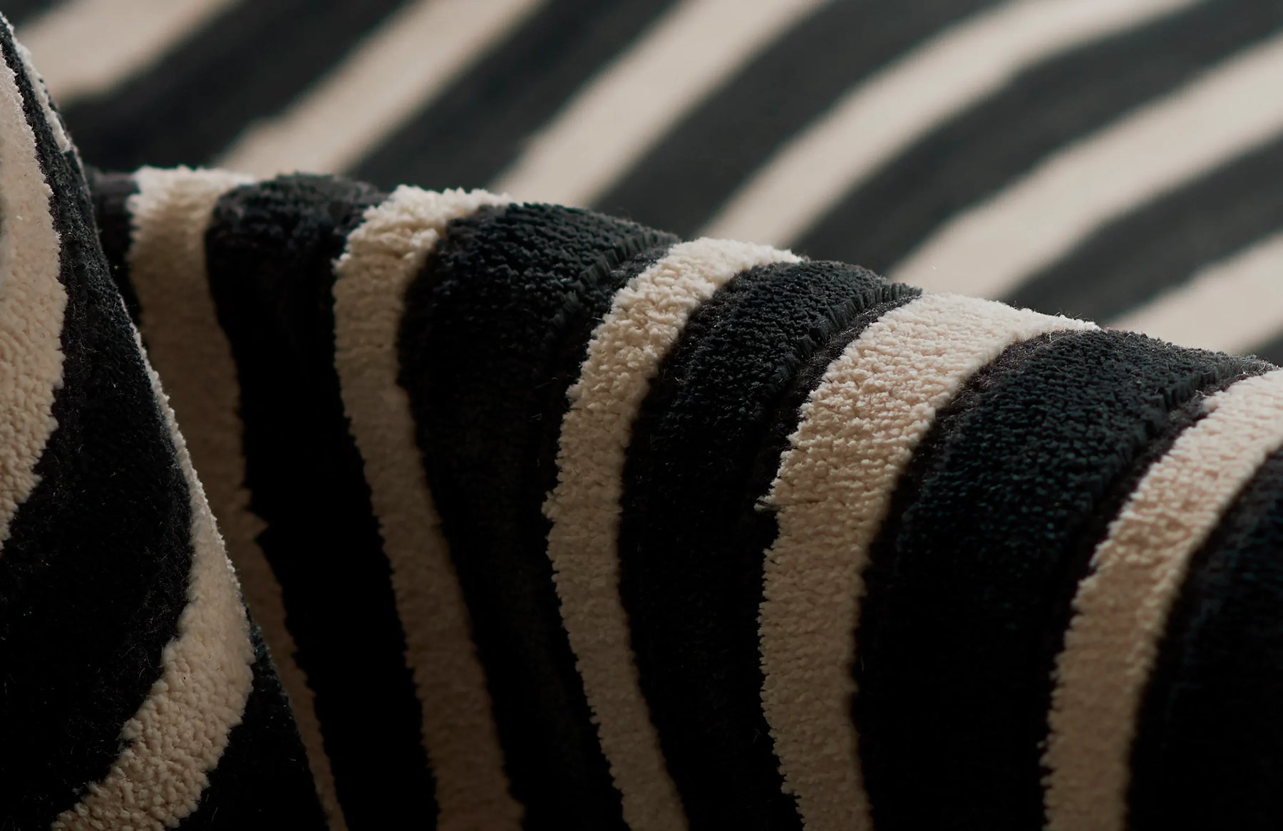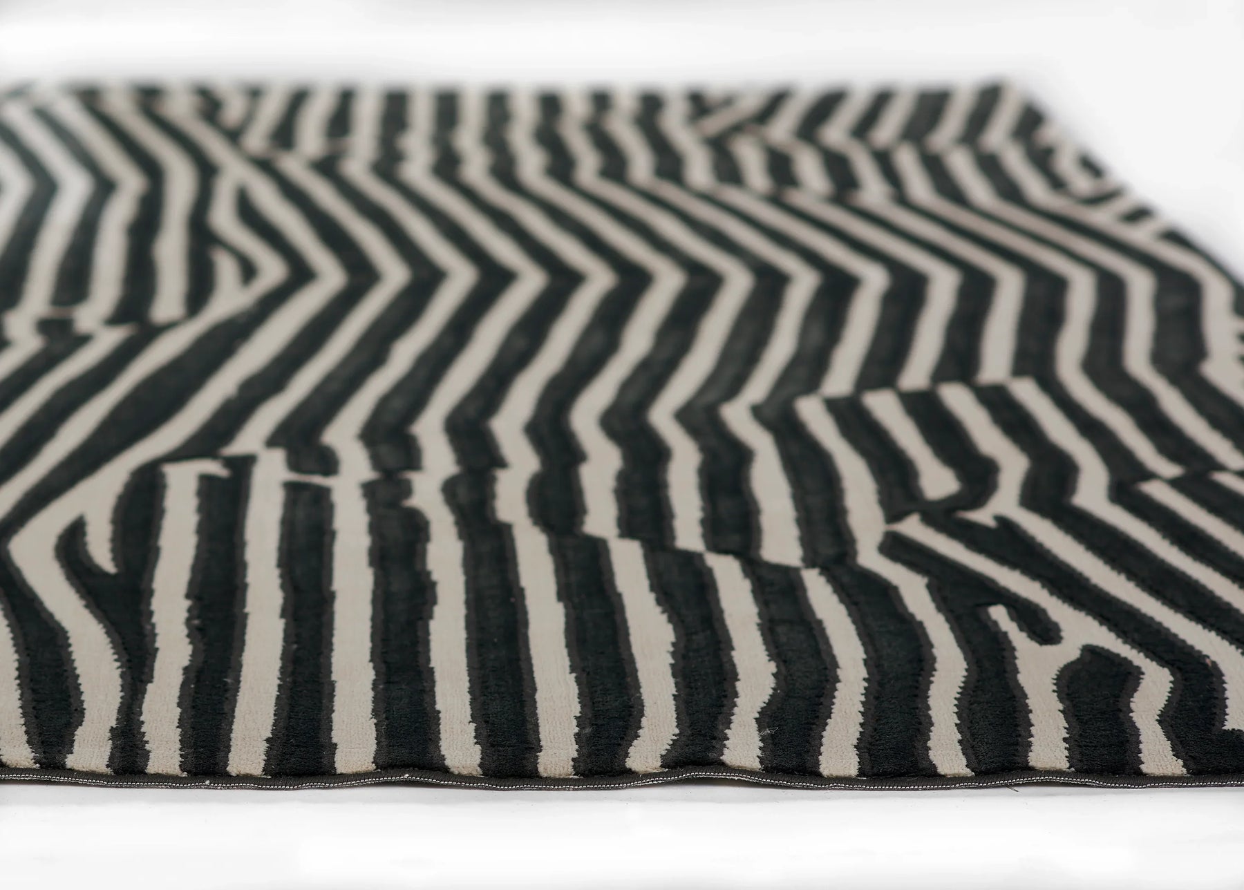 Vivid graphics and contrasting black and white colors are having a moment in this rug from the xander collection. With mosaic-style sections of striped patterns meeting, it creates a graceful sense of motion. Machine made from a blend of polyester and polypropylene fibers in Turkey, and with a dark enough tone that it will disguise life’s little messes, this classic will complete your home.
