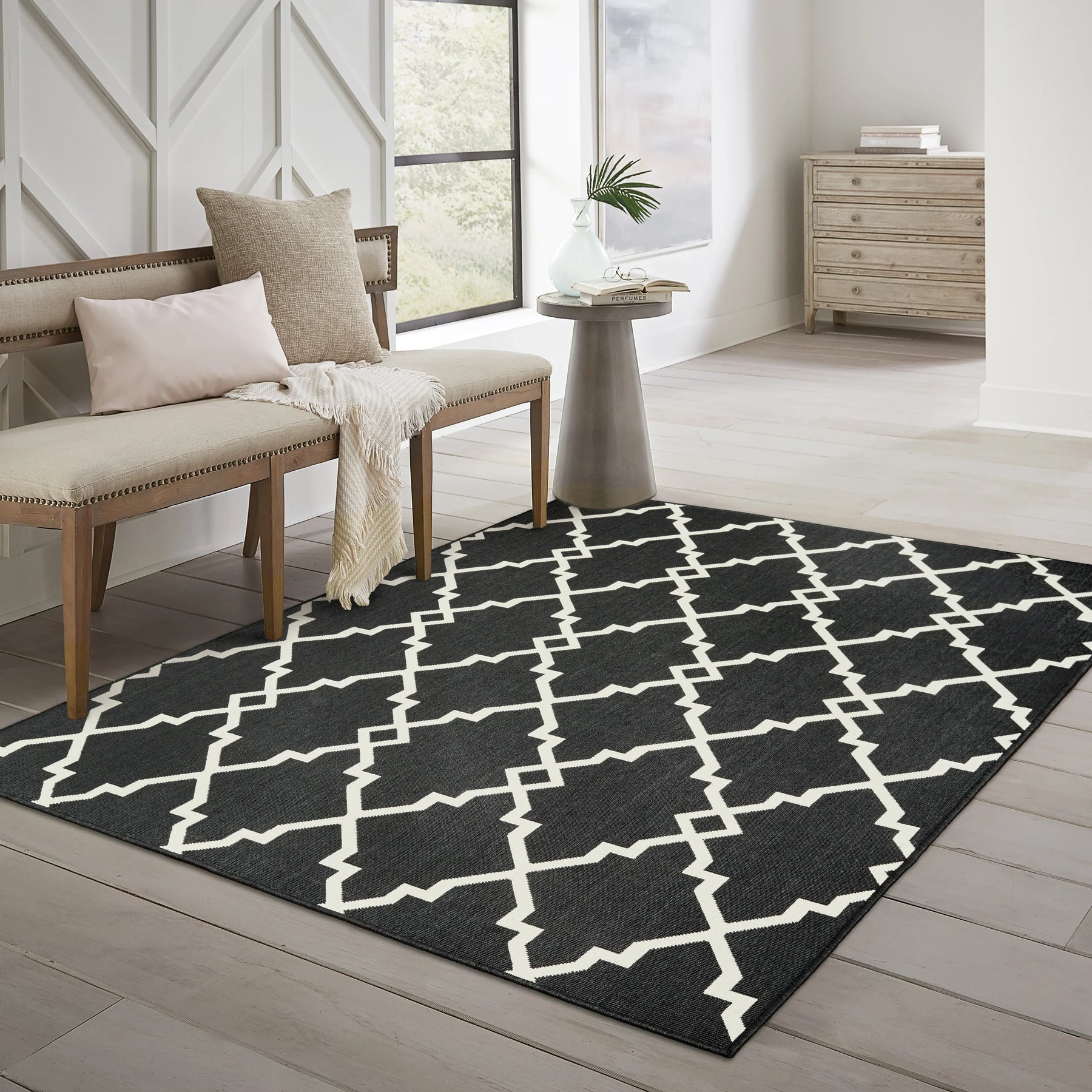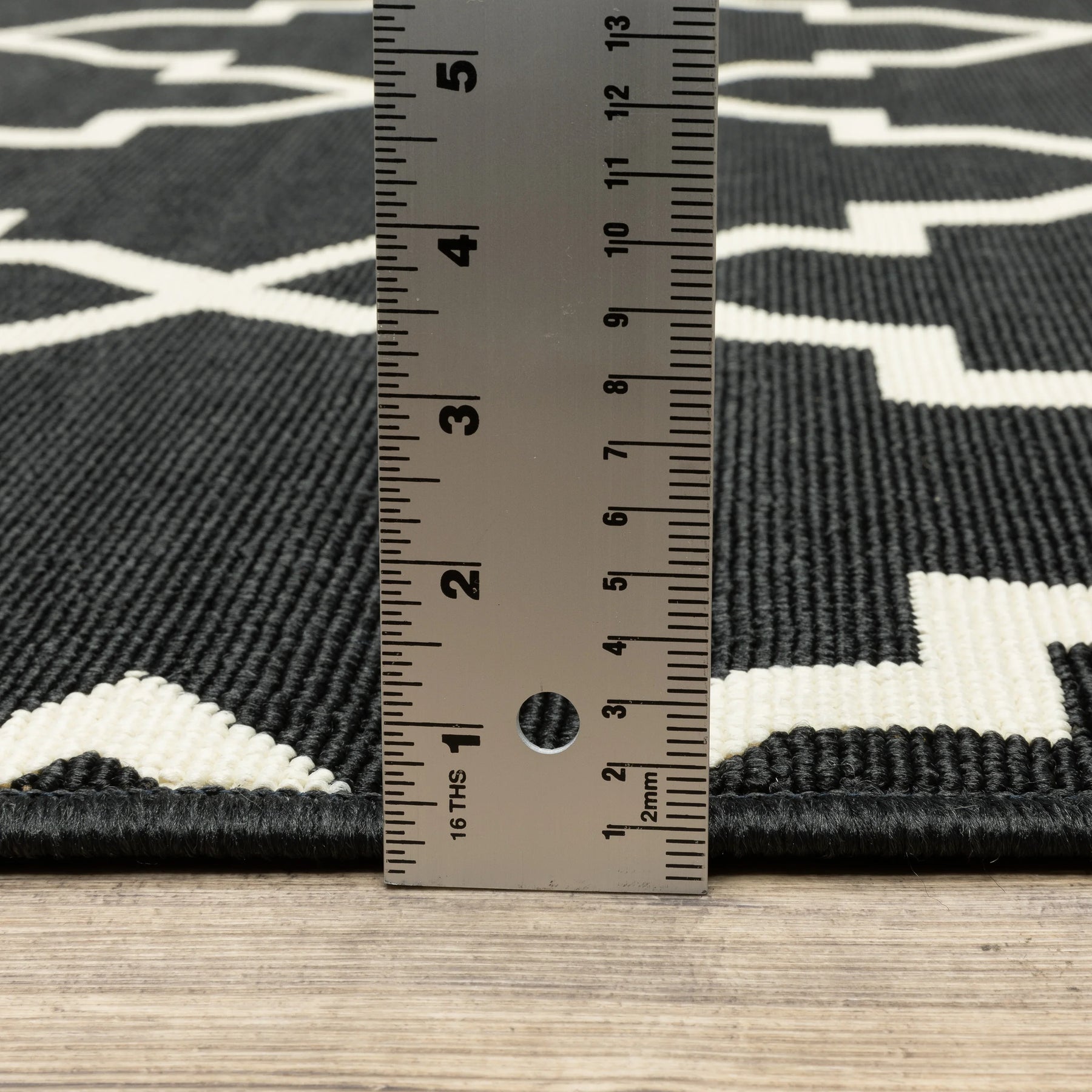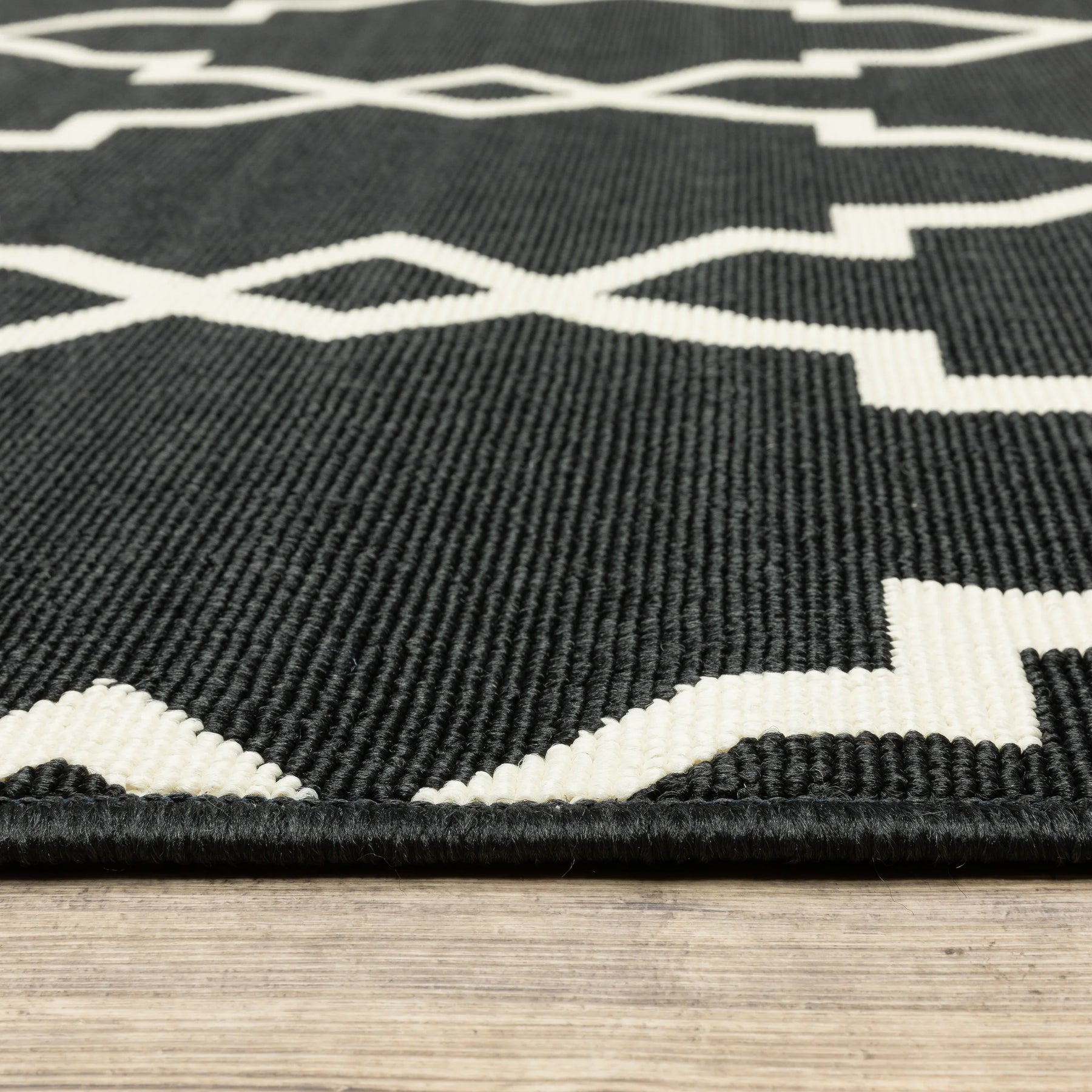 Marina is an elegant new introduction for indoor or outdoor use and features a 100% polypropylene looped yarn made in Egypt. It features a classic neutral palette using high contrast colors like black, ivory, deep navy, sand and cool gray. The collection includes casual but sophisticated patterns like updated geometrics and simplified traditionals that all feel fresh but timeless.