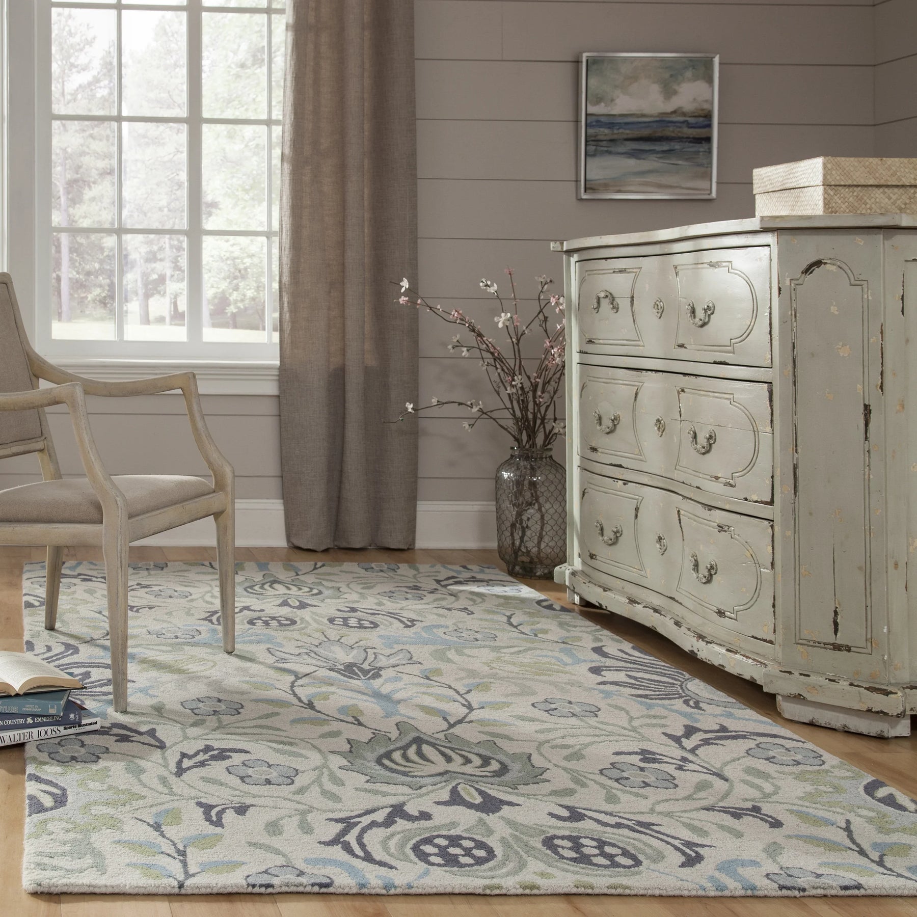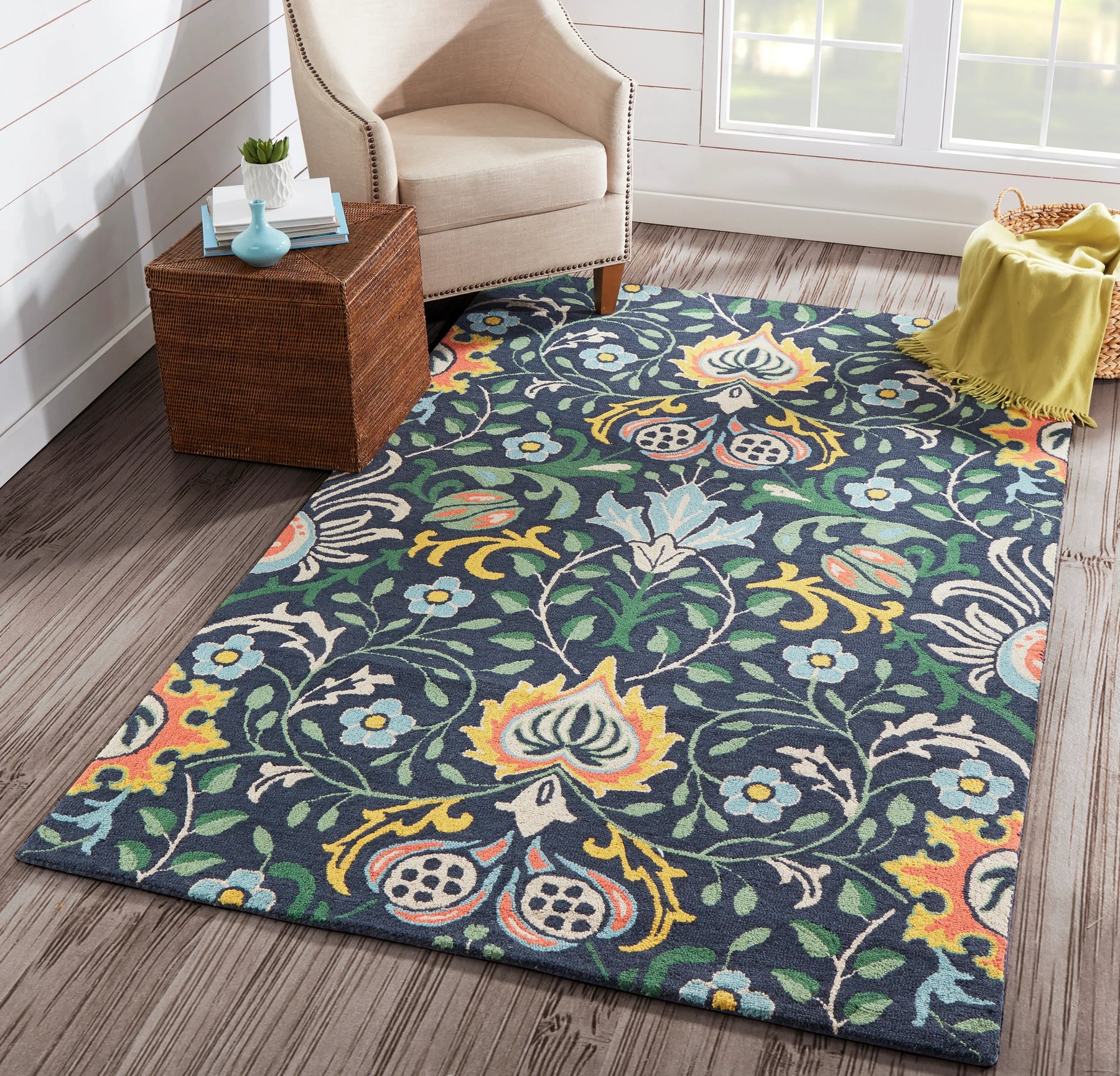 Inspired by the iconic textiles of William Morris, the updated patterns of this decorative area rug offer both classic and contemporary accent pieces with unlimited design potential. From lush botanical designs to Alhambra arabesques, each rug conveys an ageless beauty in shades of yellow, blue, grey and gold. 100% natural wool fibers and hand-tufted construction give each dynamic floorcovering structure and support that holds up beautifully in high-traffic areas of the home.