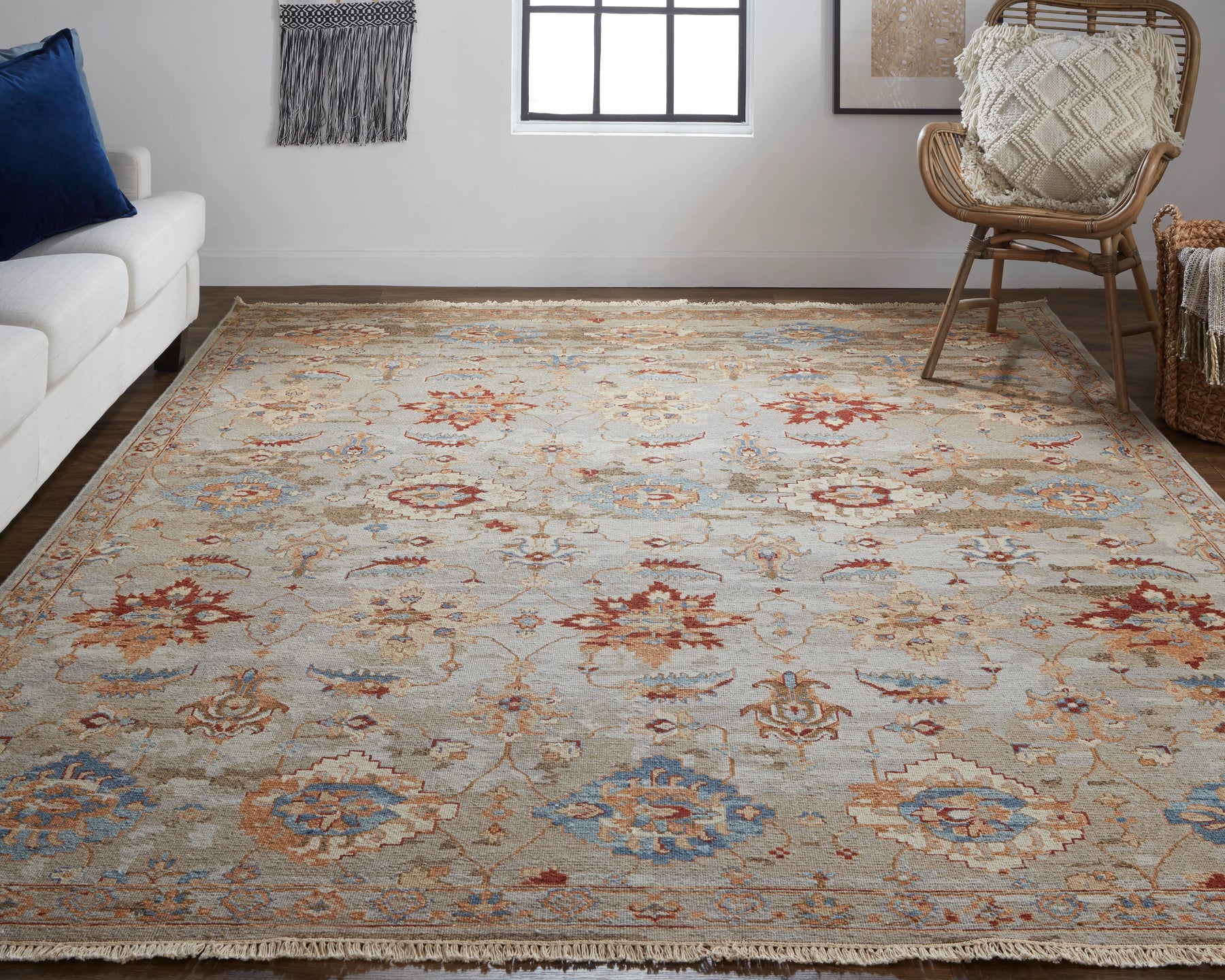 Embolden your living space with the dazzling tribal-inspired Leylan Collection by Feizy. Cool tones of blue, cream and gray dominate the canvas as short bursts of orange and red form a colorful ⠀ œdusk to midnight⠀  contrast. Oushak and tribal motifs dance across each piece, creating a masterful pirouette of vibrancy and strength. Each piece in the 100% Wool Leylan Collection is of Soumak construction and features a bold design fit for any aesthetic.