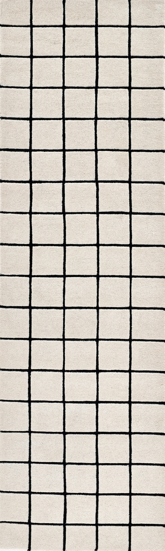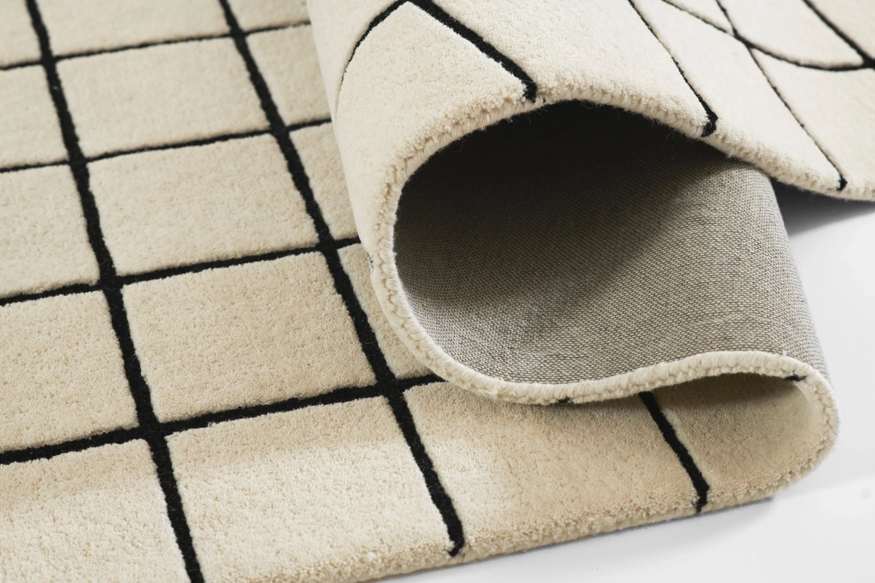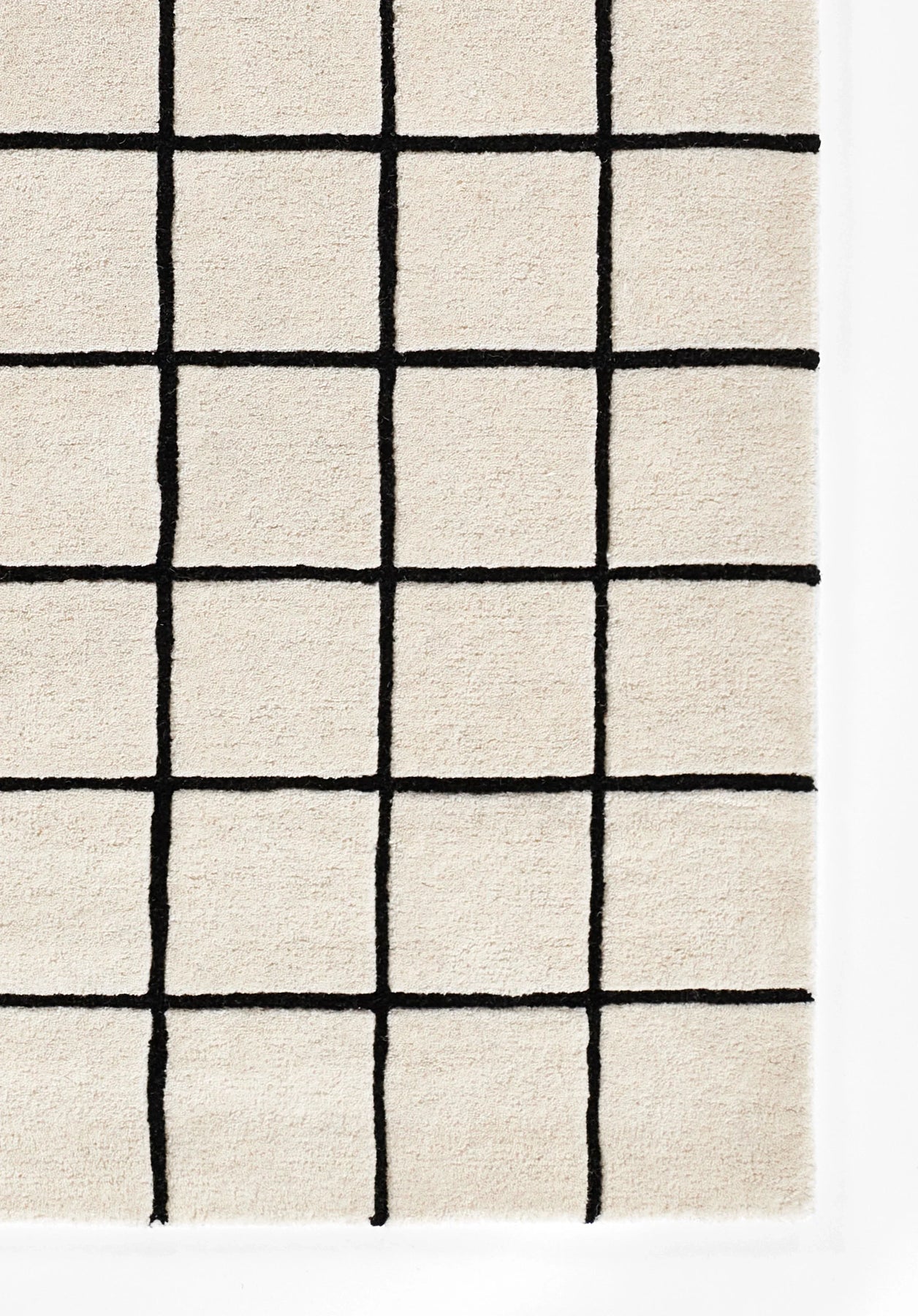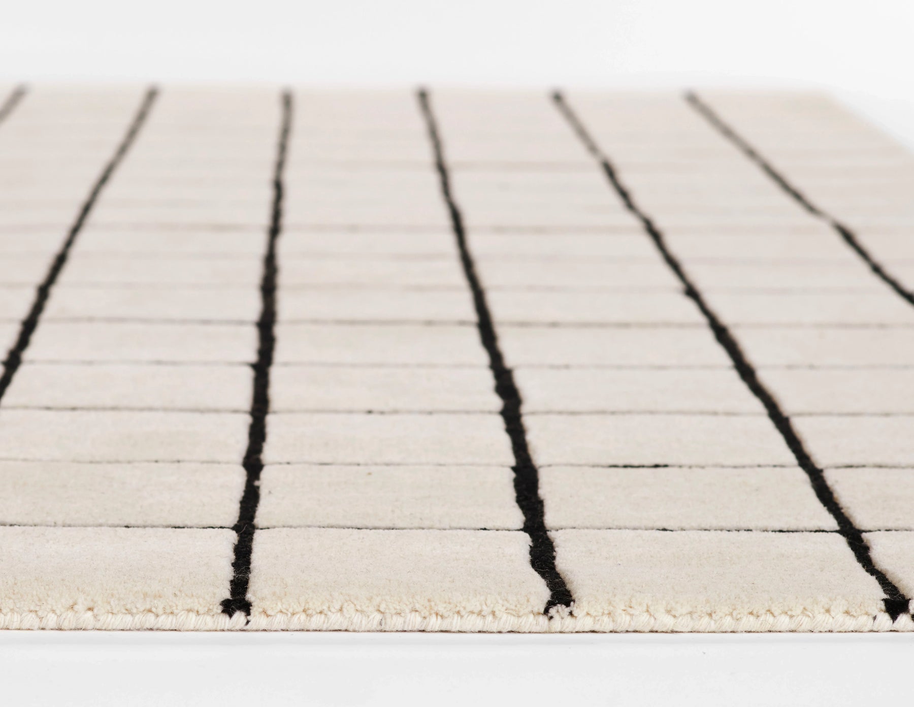 Hand-tufted of 100% wool, this piece features dimensional tufting that gives subtle depth to each line, adding texture to its otherwise minimalist appeal. Perfect for modern, creative, or architecturally inspired interiors, this rug brings order, structure, and a cool visual edge to any room it grounds.