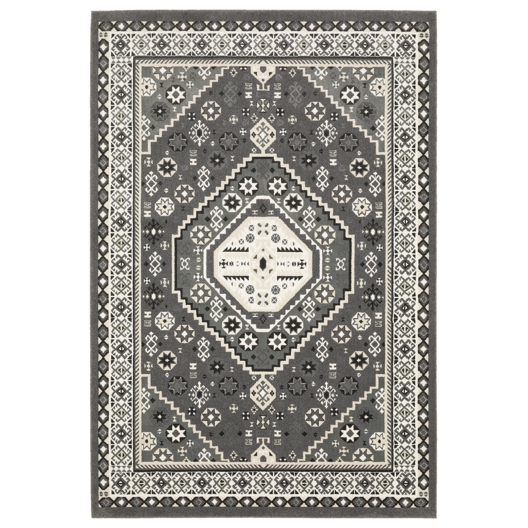 The Raylan collection features a range of design styles from classic Persian to global and geometric in contrasting tones of black and ivory with shades of soft blues, grays, and neutrals in-between. Raylan is power-loomed of multi-tonal, textured, soft polypropylene and twisted polyester shrink yarn. With its sophisticated high/low construction, Raylan will surely add refined dimension and visual interest to your space.