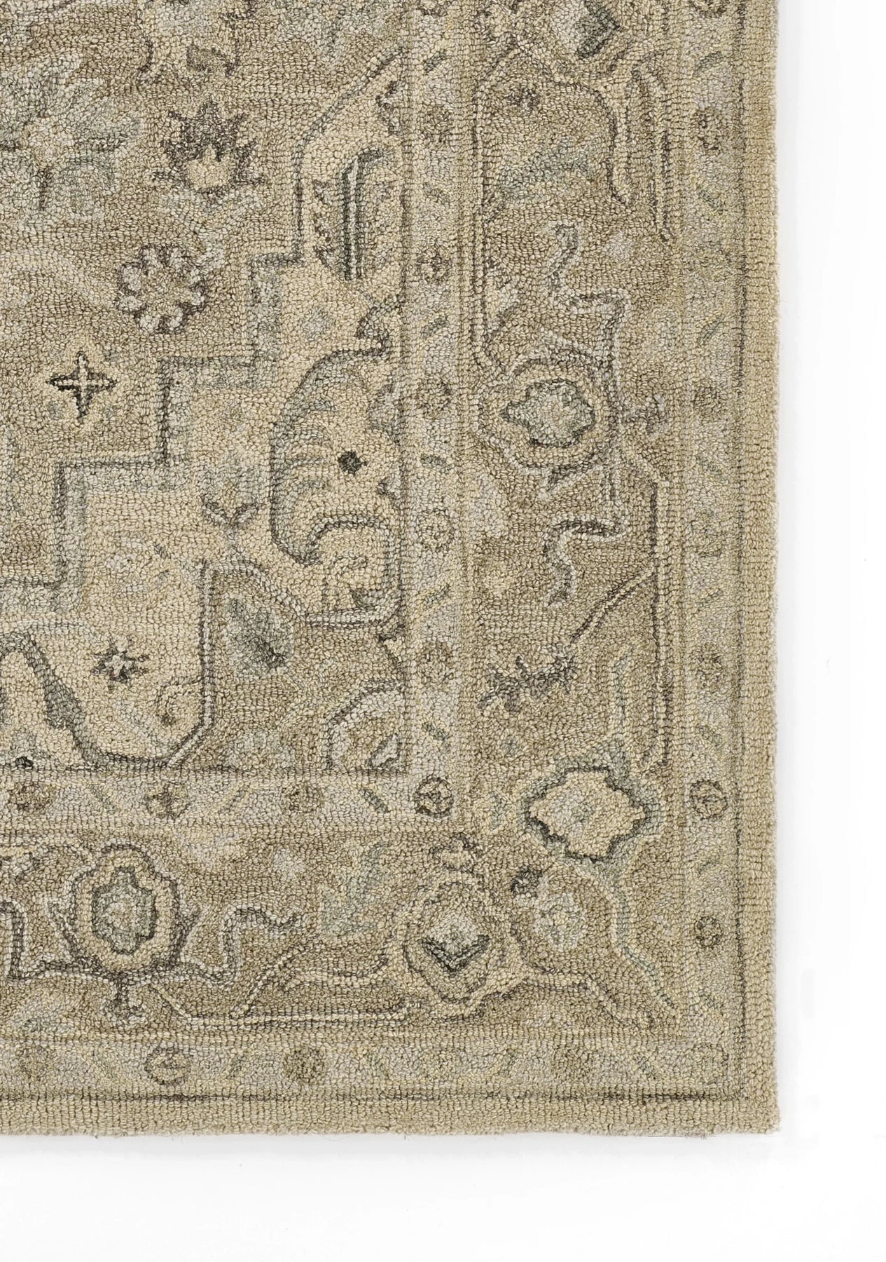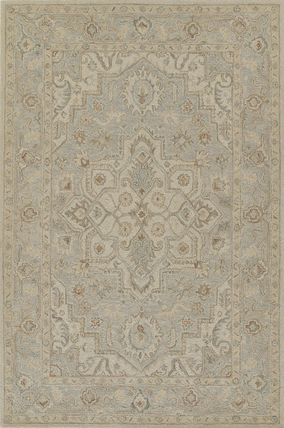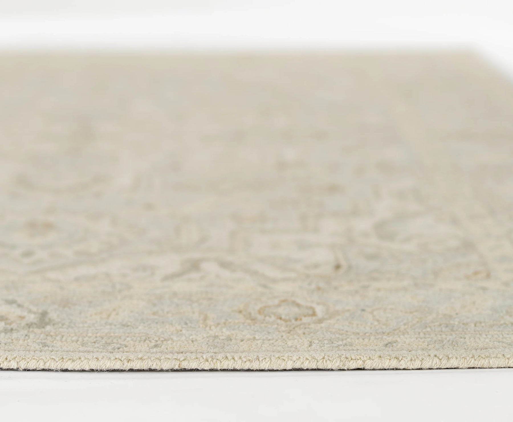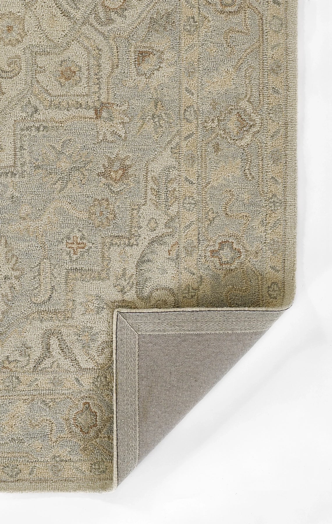 A beautiful balance of tradition and modernity, this hand-tufted wool blend rug is inspired by classic Heriz designs. But the bold take comes in the shift of the color palette to incorporate softer shades of ivory, cream, and soft grays. The looped construction feels substantial underfoot and will last for years to come.
