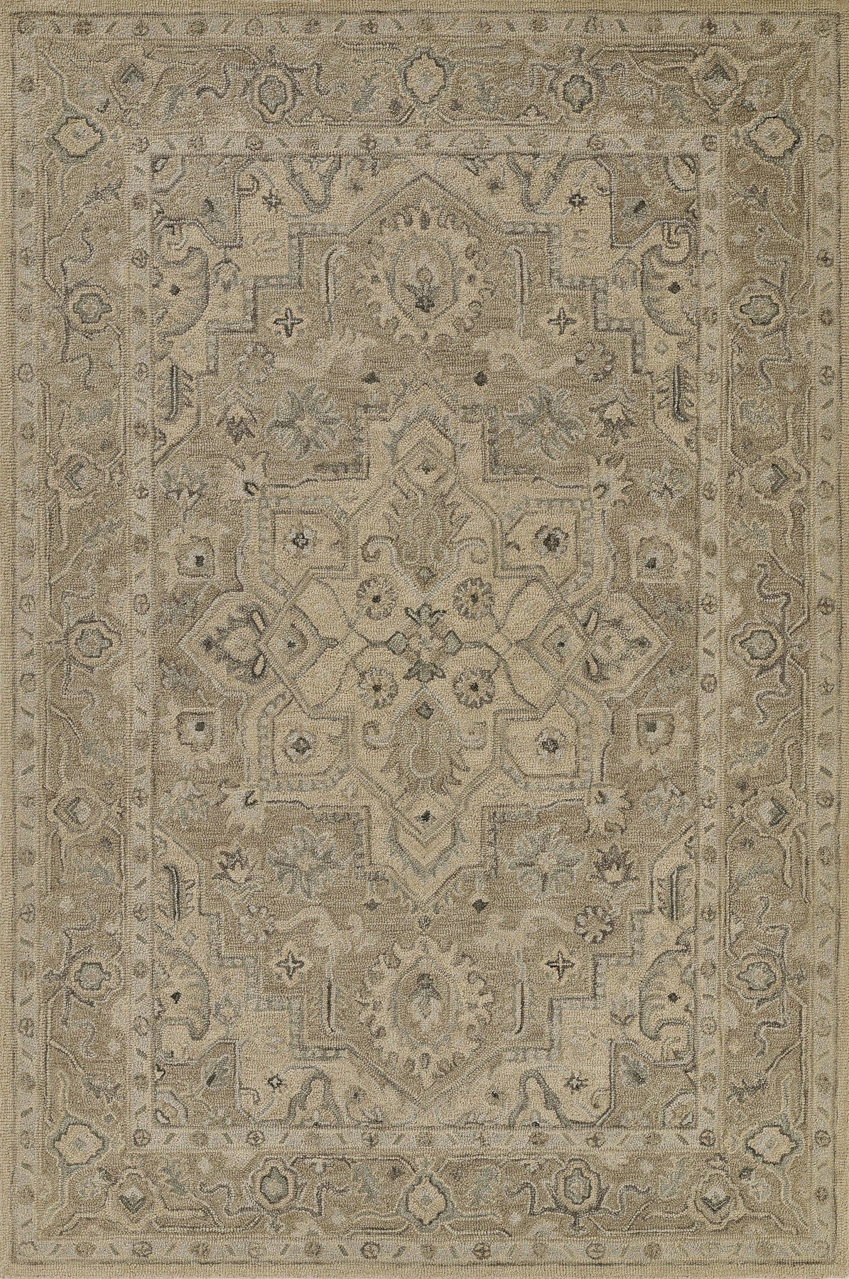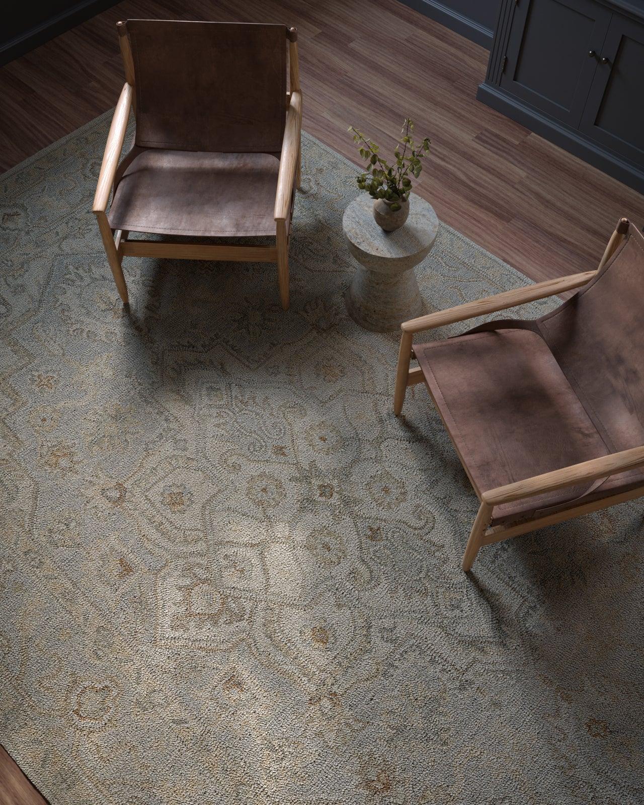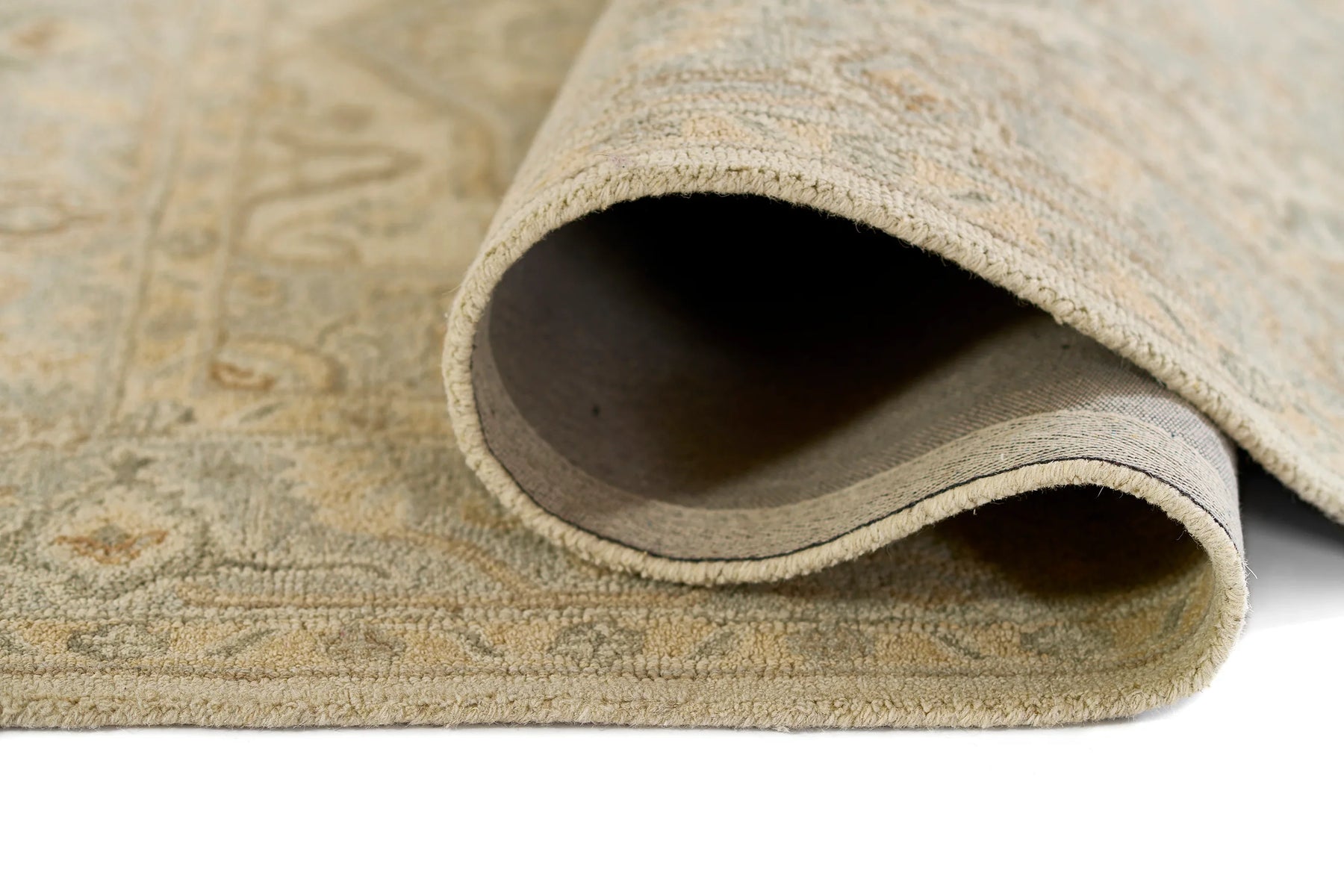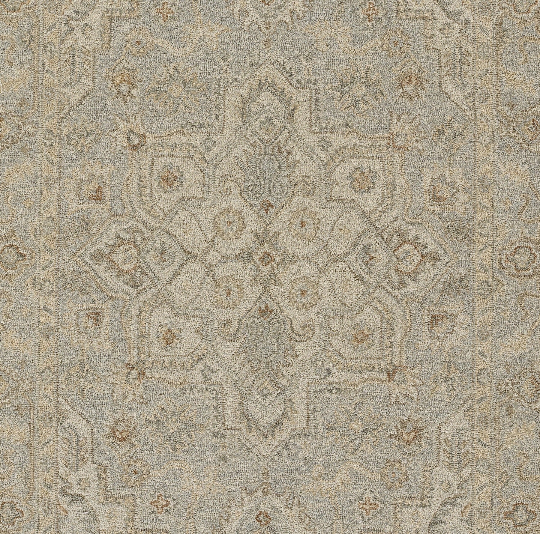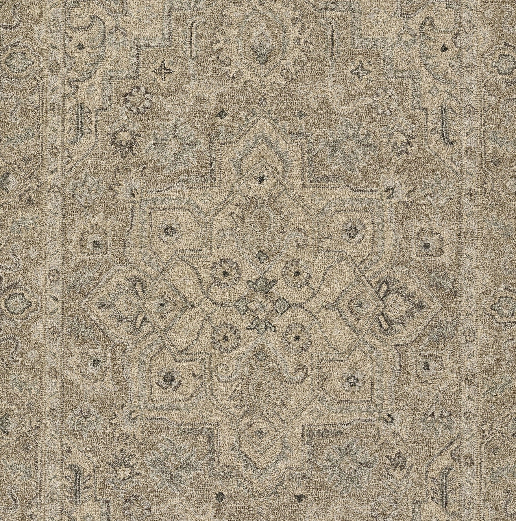 A beautiful balance of tradition and modernity, this hand-tufted wool blend rug is inspired by classic Heriz designs. But the bold take comes in the shift of the color palette to incorporate softer shades of ivory, cream, and soft grays. The looped construction feels substantial underfoot and will last for years to come.