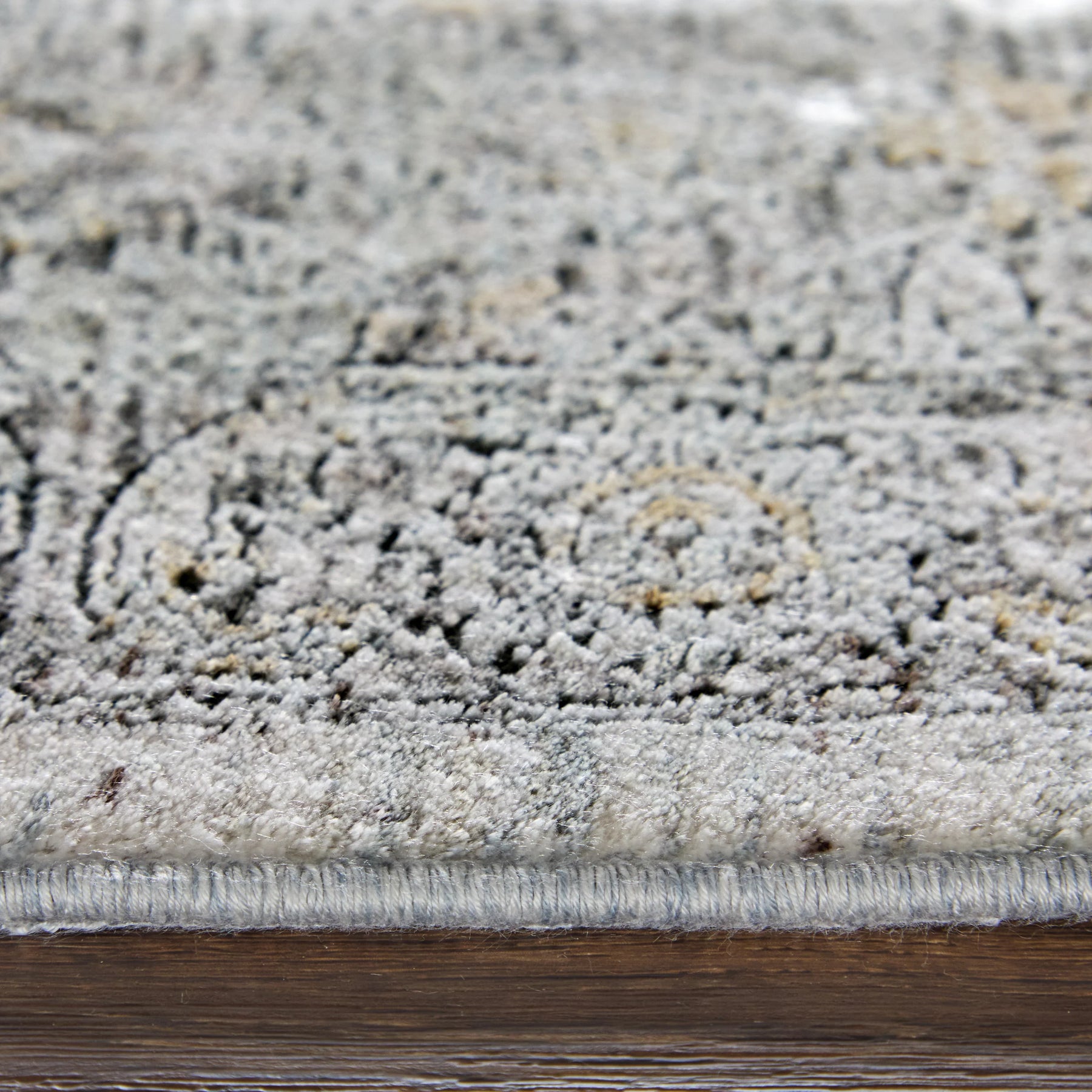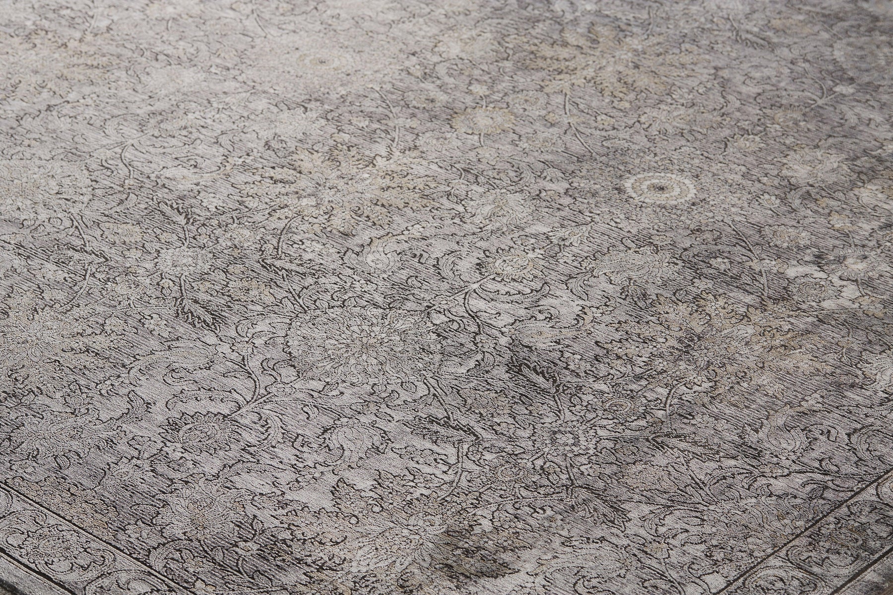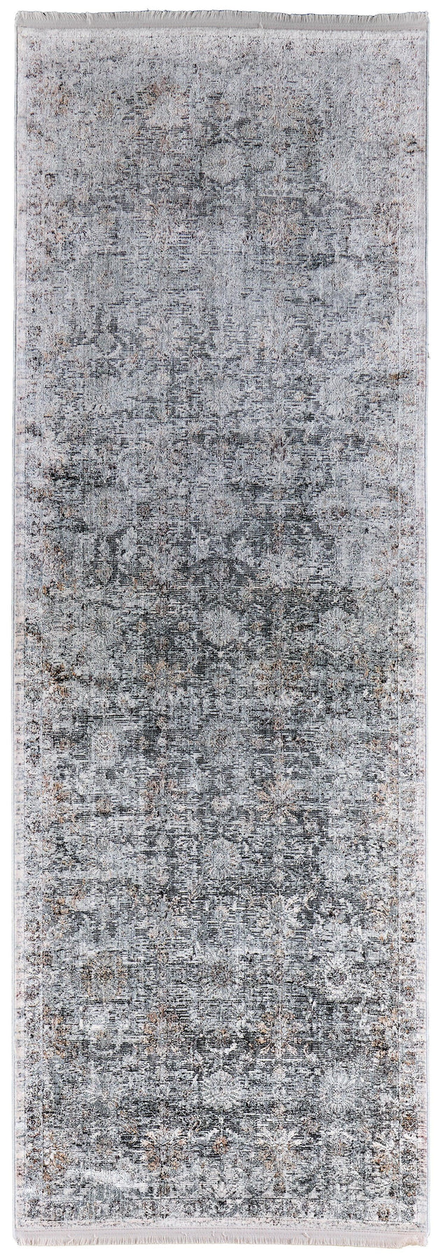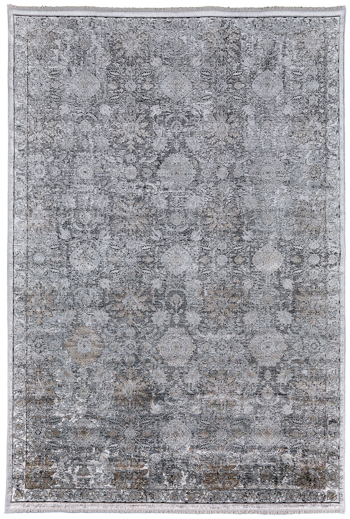 The Feizy Sarrant collection is machine made in a luminous viscose and polyester blend showcase traditional medallion motifs. The ultra-dense machine woven piles give these pieces added durability with a soft touch. Power loomed in Turkey of luminous space-dyed viscose these decadent pieces feature color gradients of charcoal and ivory and are accented with delicate notes of soothing blues and warm yellows.