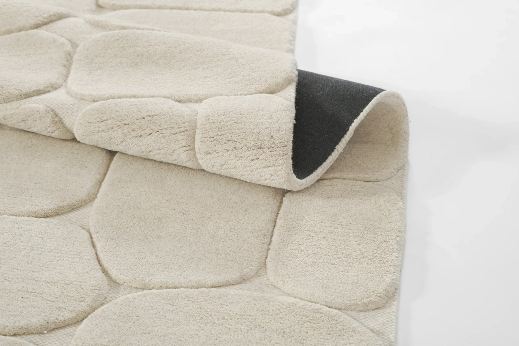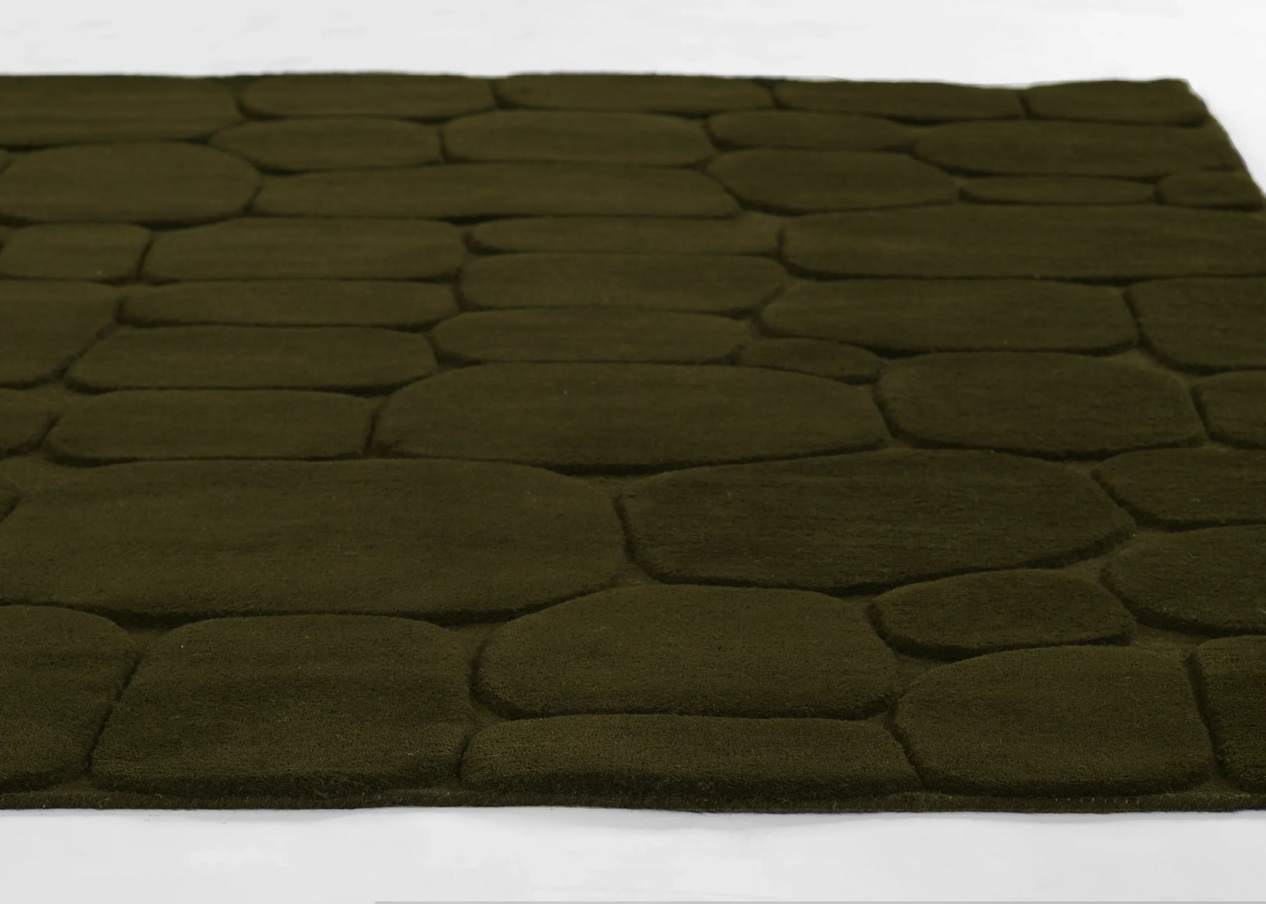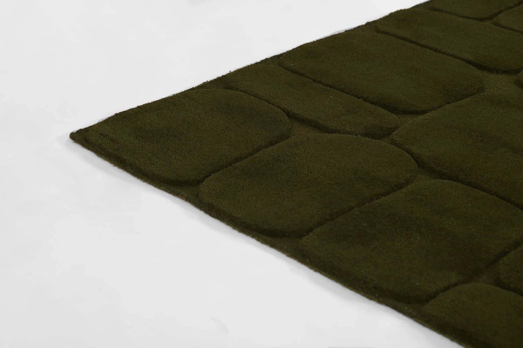 This naturally colored green rug features an abstract pebble design with a striking 3D texture that brings both depth and dimension to your space. Its asymmetrical, geometric pattern gives it an architectural edge, while the earthy, natural tones make it a perfect fit for contemporary, boho, or organic-inspired interiors. Whether styled in a cozy living room or a minimalist setting, this natural green rug adds a grounded, textural element that feels both fresh and timeless