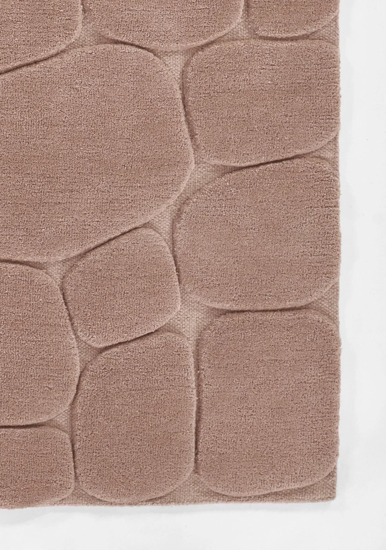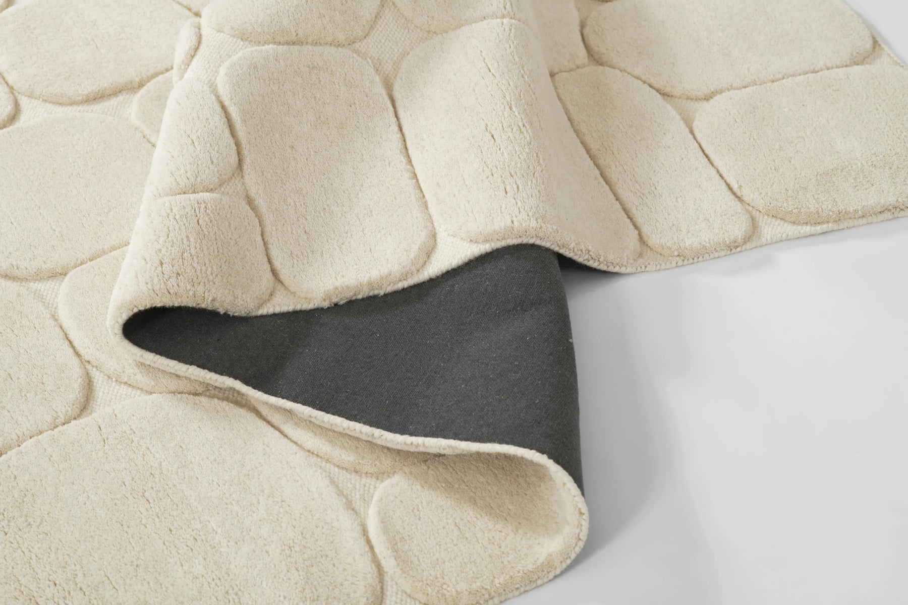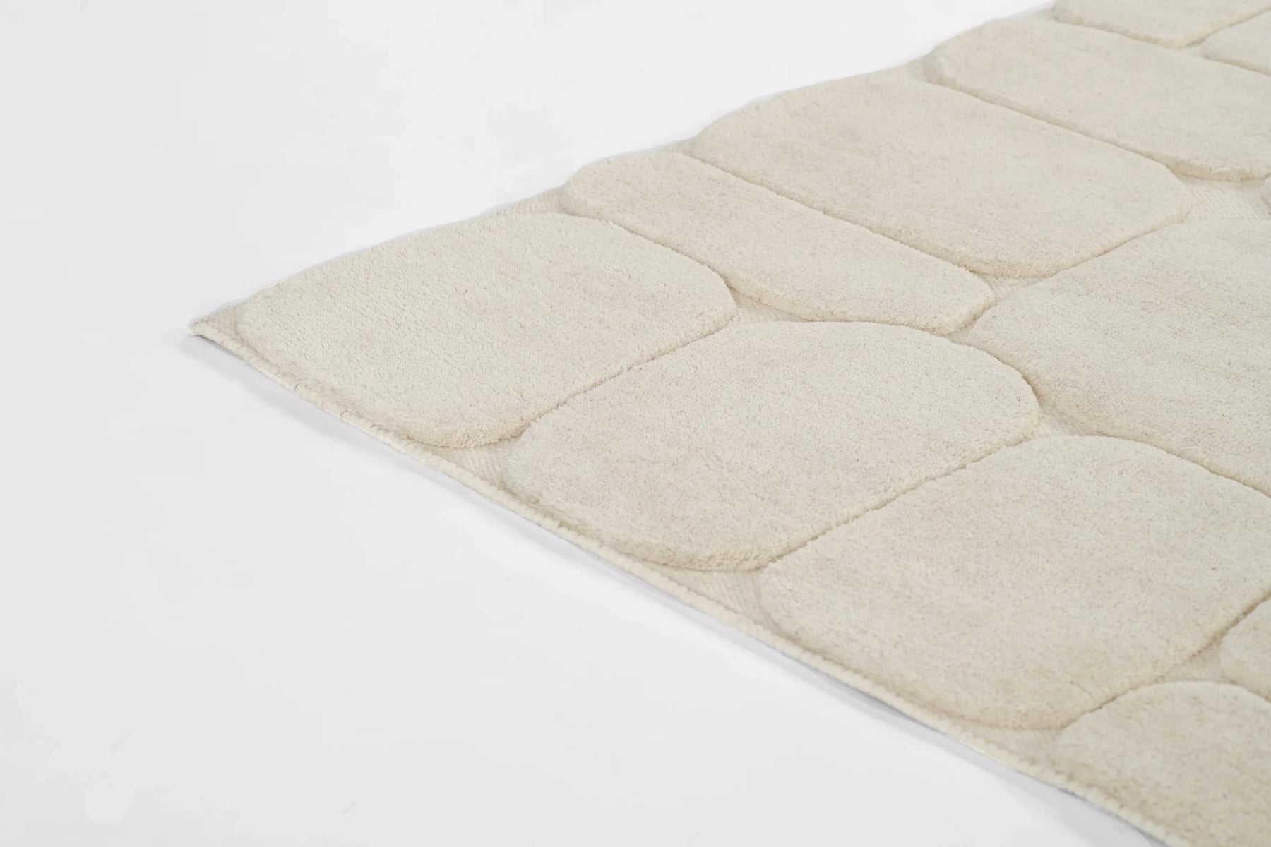 This naturally colored green rug features an abstract pebble design with a striking 3D texture that brings both depth and dimension to your space. Its asymmetrical, geometric pattern gives it an architectural edge, while the earthy, natural tones make it a perfect fit for contemporary, boho, or organic-inspired interiors. Whether styled in a cozy living room or a minimalist setting, this natural green rug adds a grounded, textural element that feels both fresh and timeless