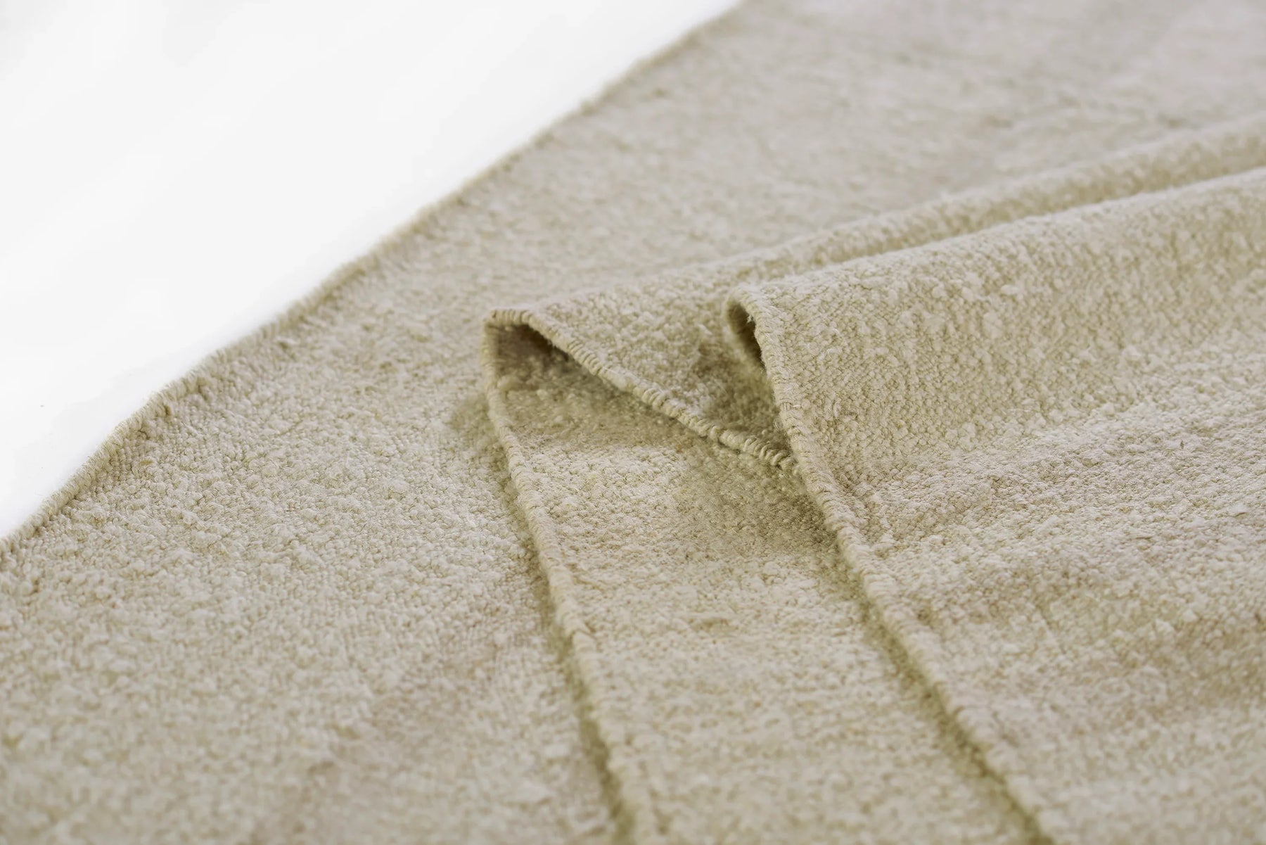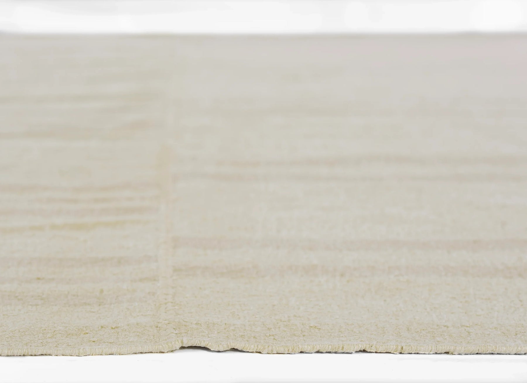 Taking cues from classic kilim, this one hundred percent hand-woven linen rug blends tonal neutrals for a richly layered look. Variations in the pile and stitched details all showcase the craftsmanship that goes into each unique design, and celebrate the history of both aesthetics and quality.