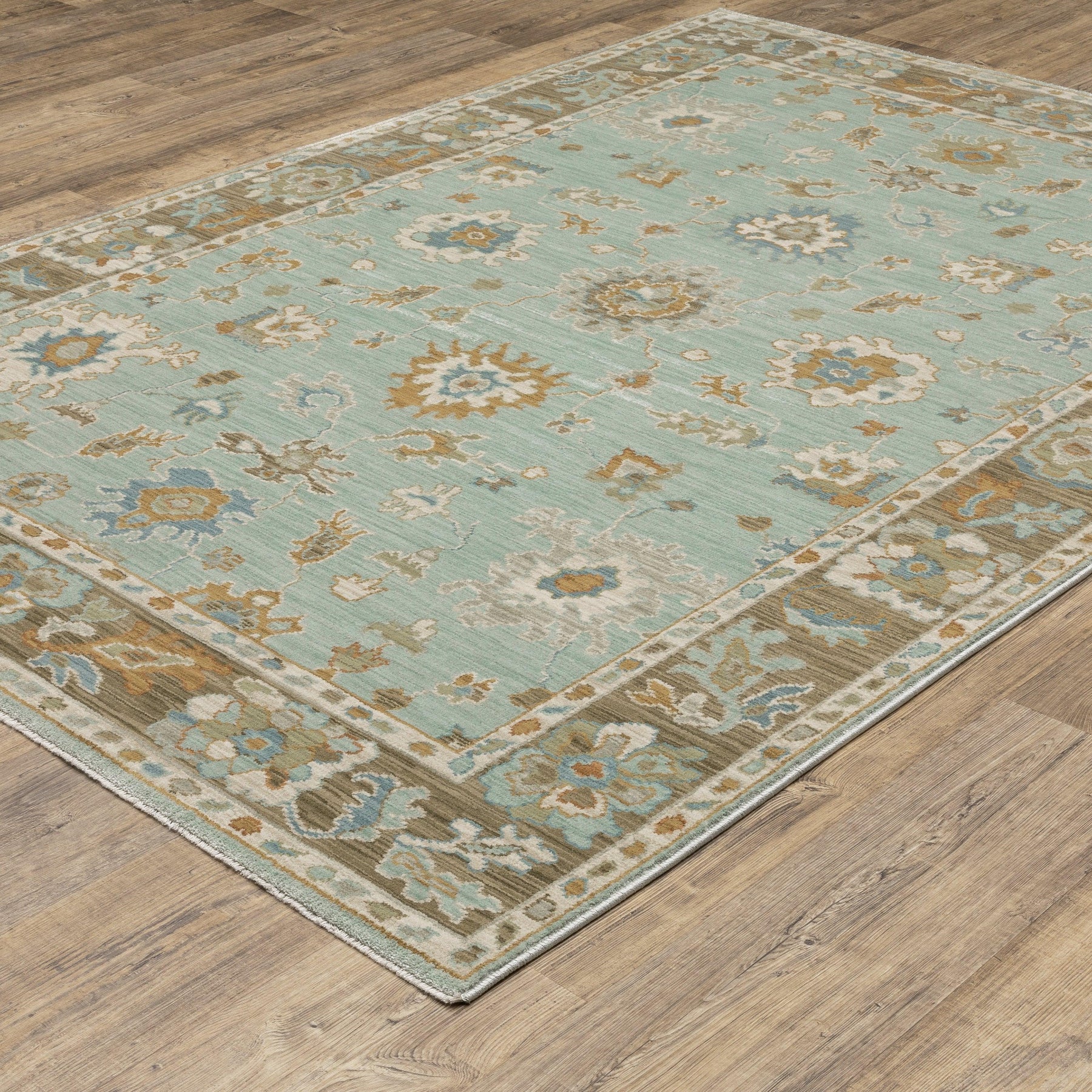 The Maeve collection features subtly pigmented color palette features neutral tones of ash brown, oat milk and sustained gray as well as mineral-based blues, matcha green, sunbaked clay and antique gold. The quietly modern color palette gives fresh appeal to traditional Persian and block print patterns with a touch of bohemian flair. It is power-loomed of super-soft, space-dyed polypropylene.