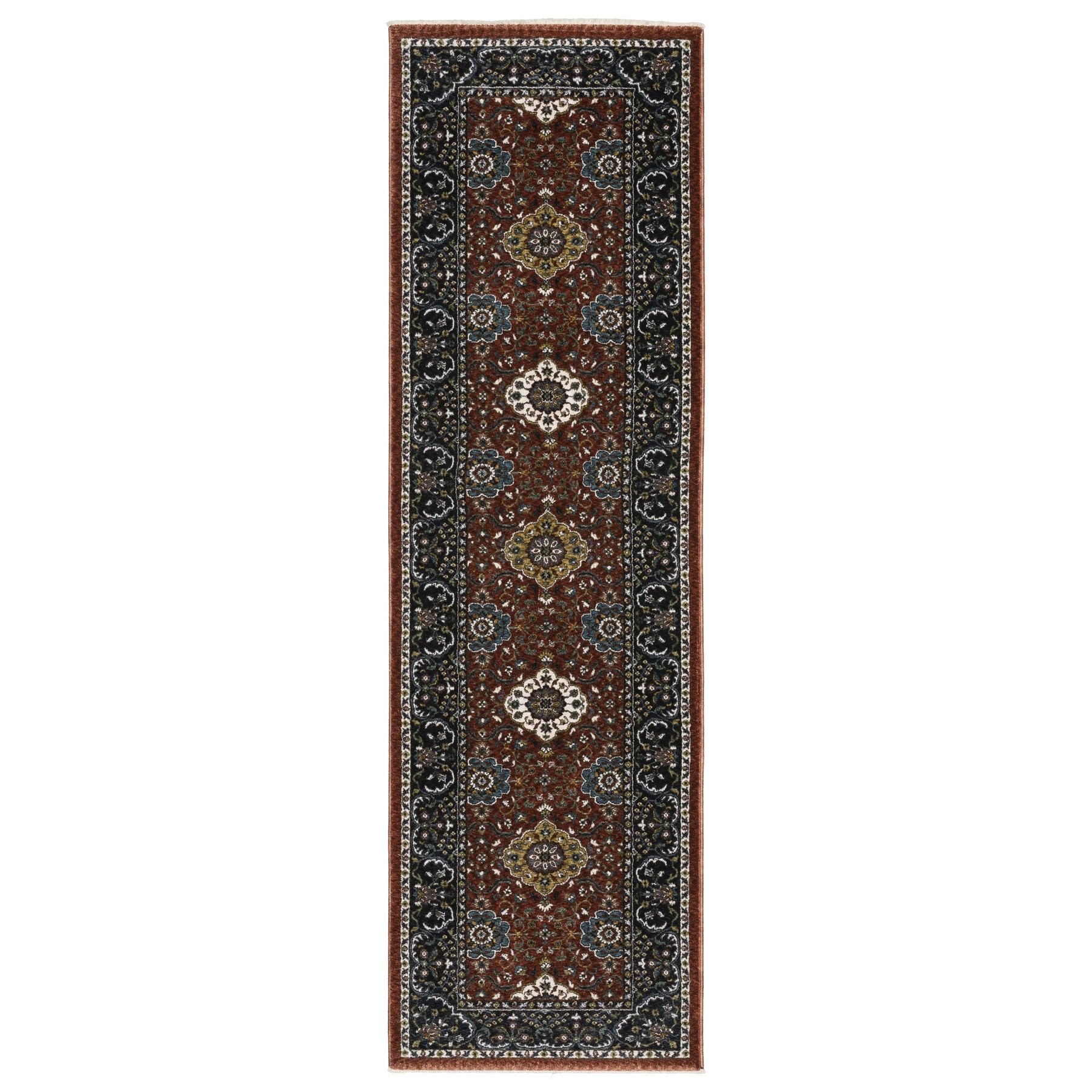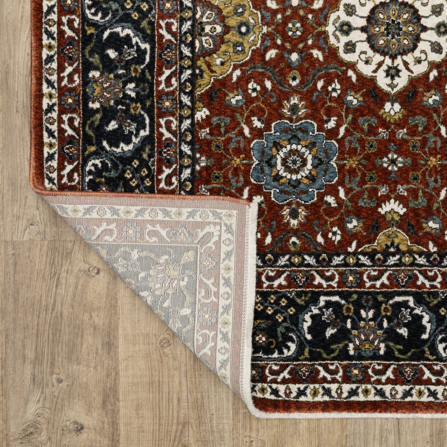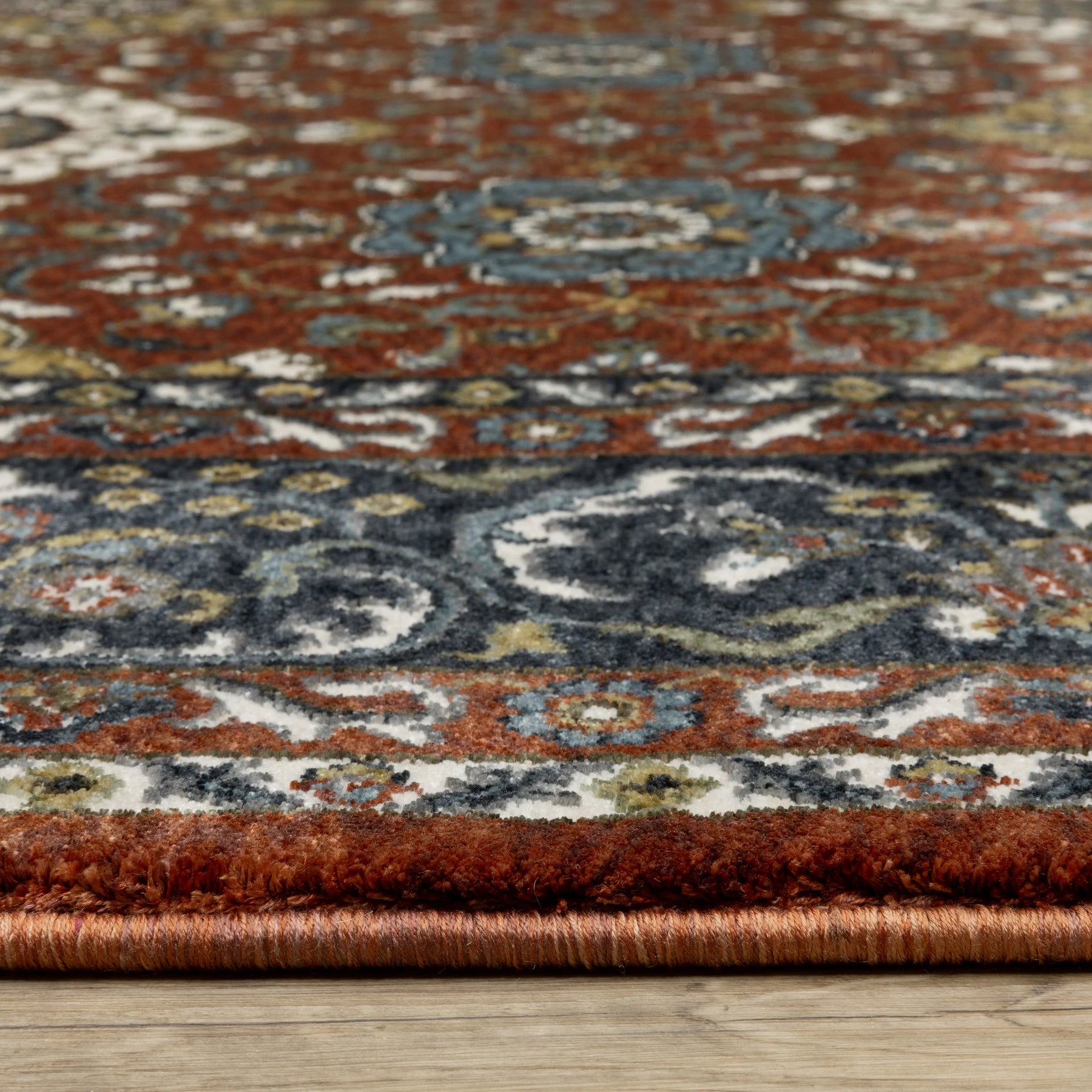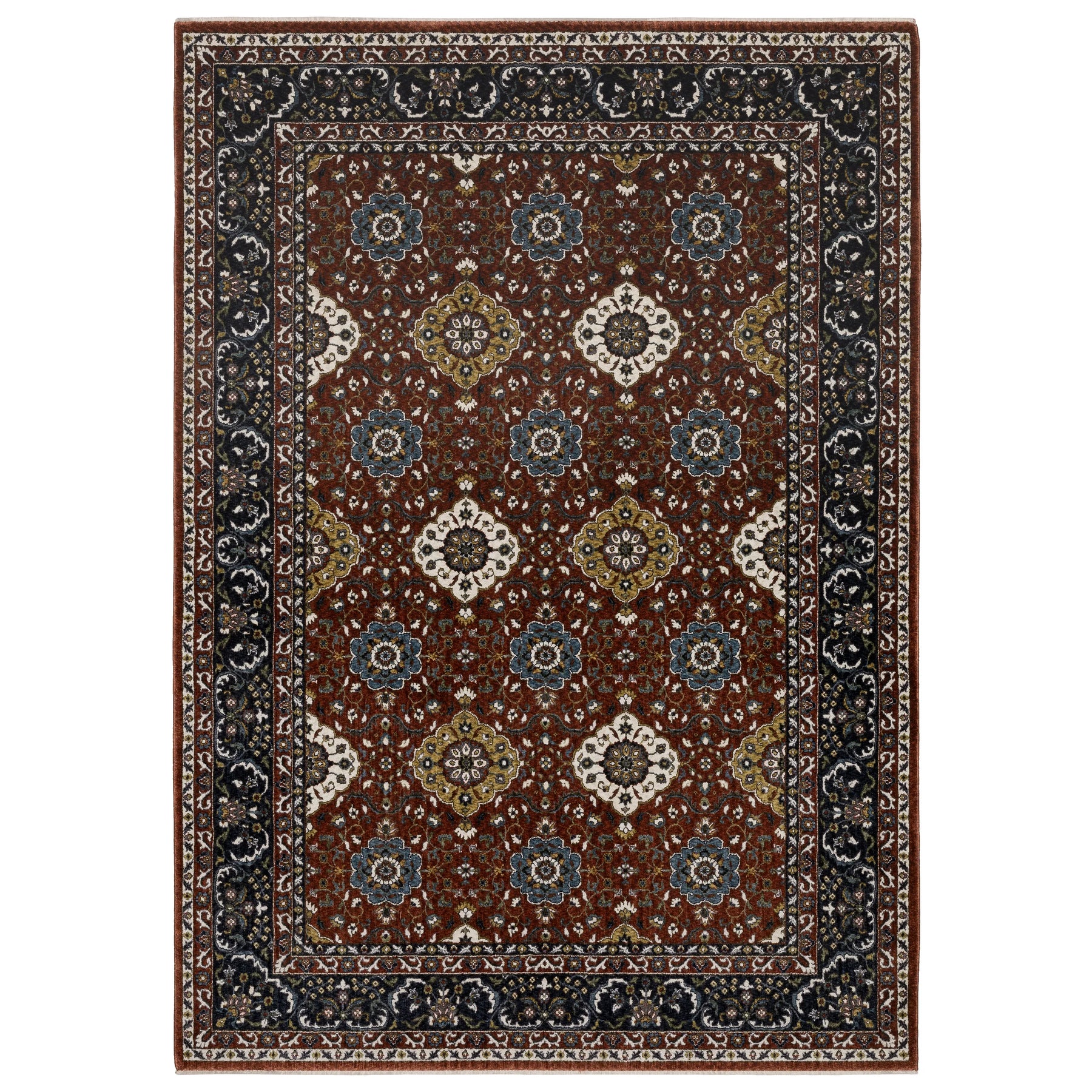 The Vivian collection is power-loomed of space dyed microfiber polyester and boasts a super soft hand with an ultra dense pile. It features an updated traditional color palette including rich brick red, vibrant gold, pristine ivory, sable brown, mossy green, and shades of blue ranging from deep Prussian to cerulean. With its traditional Persian designs and 1.5 million point construction, Vivian effortlessly adds elegance and sophistication to any room.