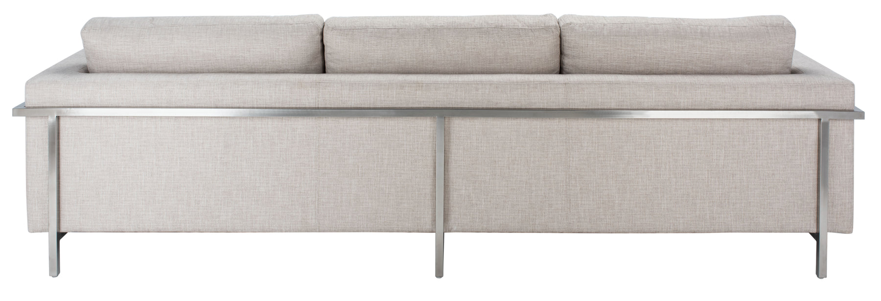 Transform your living space with the elegance of the Camila Wool Blend Sectional. This off white masterpiece seamlessly combines comfort and style, creating a tranquil sanctuary in your home. Crafted with a unique blend of wool, nylon, and polyester, this sectional exudes a sophisticated charm. The soft, welcoming fabric envelops plush cushions, inviting you to sink in and unwind. Supported by sturdy pinewood and brushed stainless steel legs, it offers both beauty and reliability. The modern design and clean lines make it a versatile addition to any decor. Whether you are entertaining guests or enjoying a quiet evening, this sectional provides the perfect backdrop. Embrace a blend of timeless aesthetics and contemporary comfort with the Camila Wool Blend Sectional in off white. Redefine your space with a piece that speaks to style and subtlety.