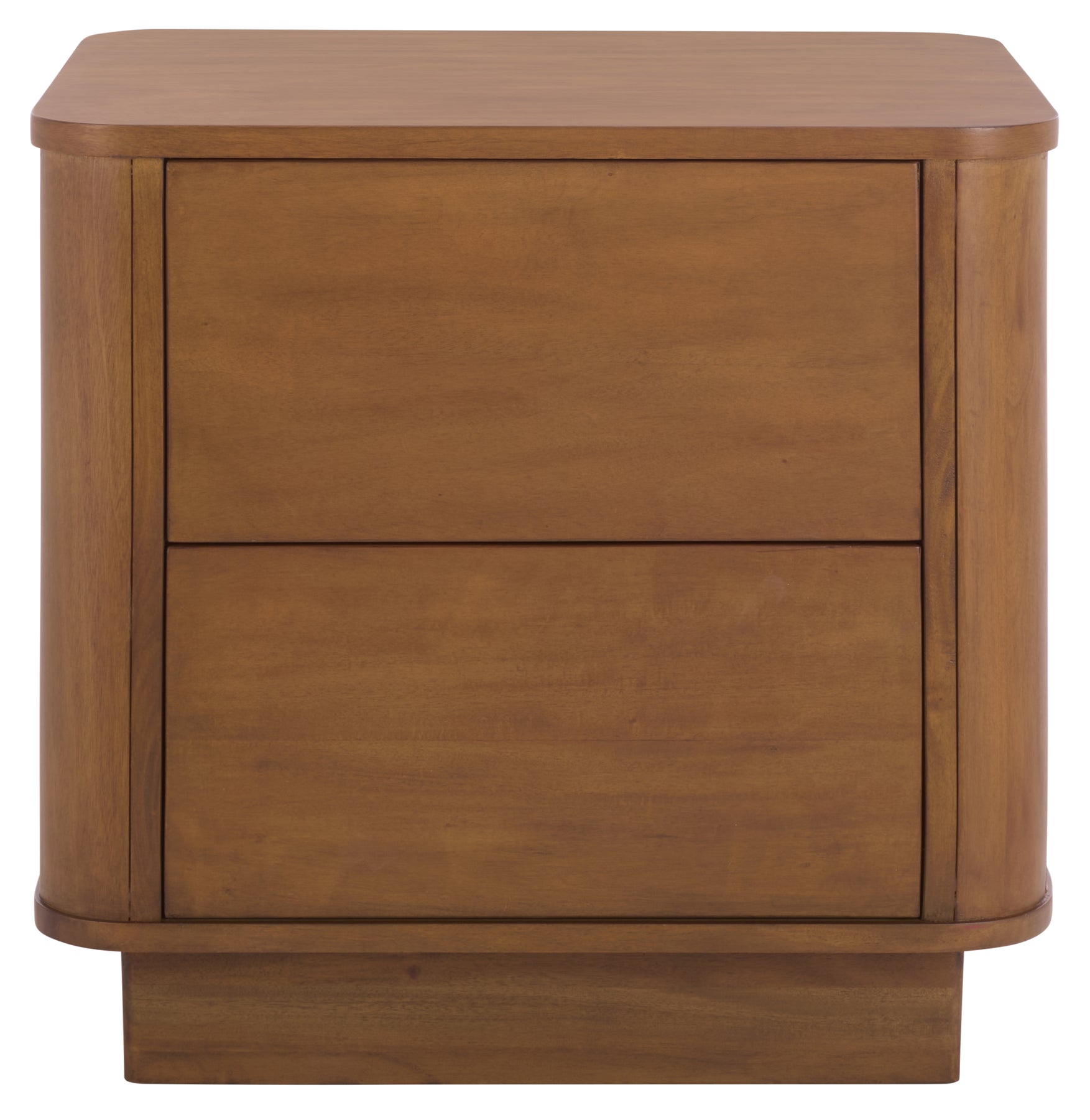 Introducing the Chrysandra 2 Drawer Wood Nightstand in a beautiful walnut finish. This exquisite piece combines functionality with timeless design, making it an essential addition to any bedroom. Crafted from solid wood, the nightstand showcases the natural warmth and depth of the walnut color, adding a touch of elegance and sophistication to your space.