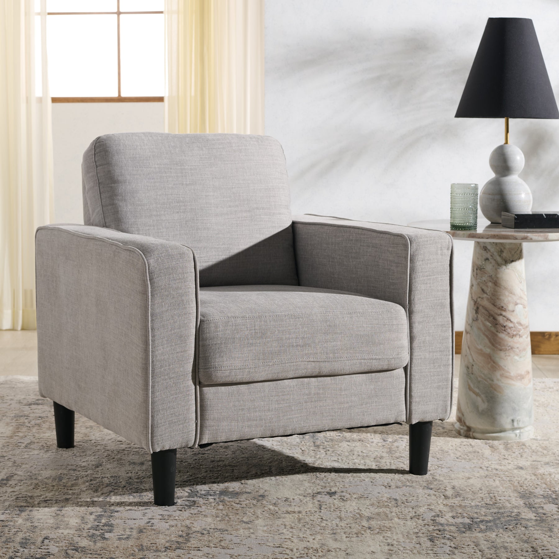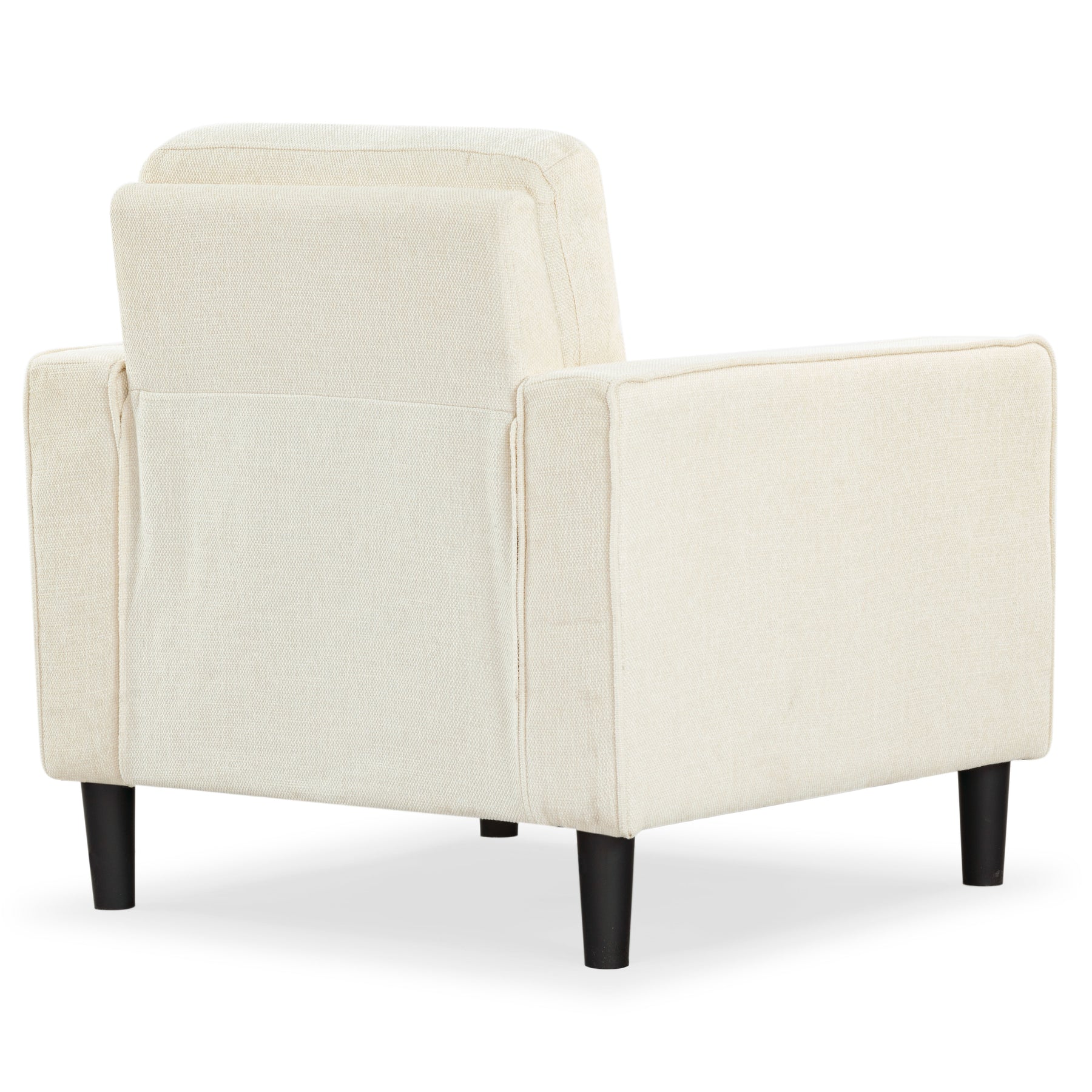 Introducing the Felicianya Modern Accent Chair! This luxurious cream-toned accent chair brings a contemporary design aesthetic to your home. Crafted with 100% Polyester fabric, the chair embodies comfort and style. The Fabric material is soft to the touch and quite sturdy, ensuring comforting lounging moments. This chic cream accent chair merges functionality with design, making it an absolute must-have. Get ready to elevate your home decor with the Felicianya Modern Accent Chair. Don't wait; transform your space with this statement piece today!