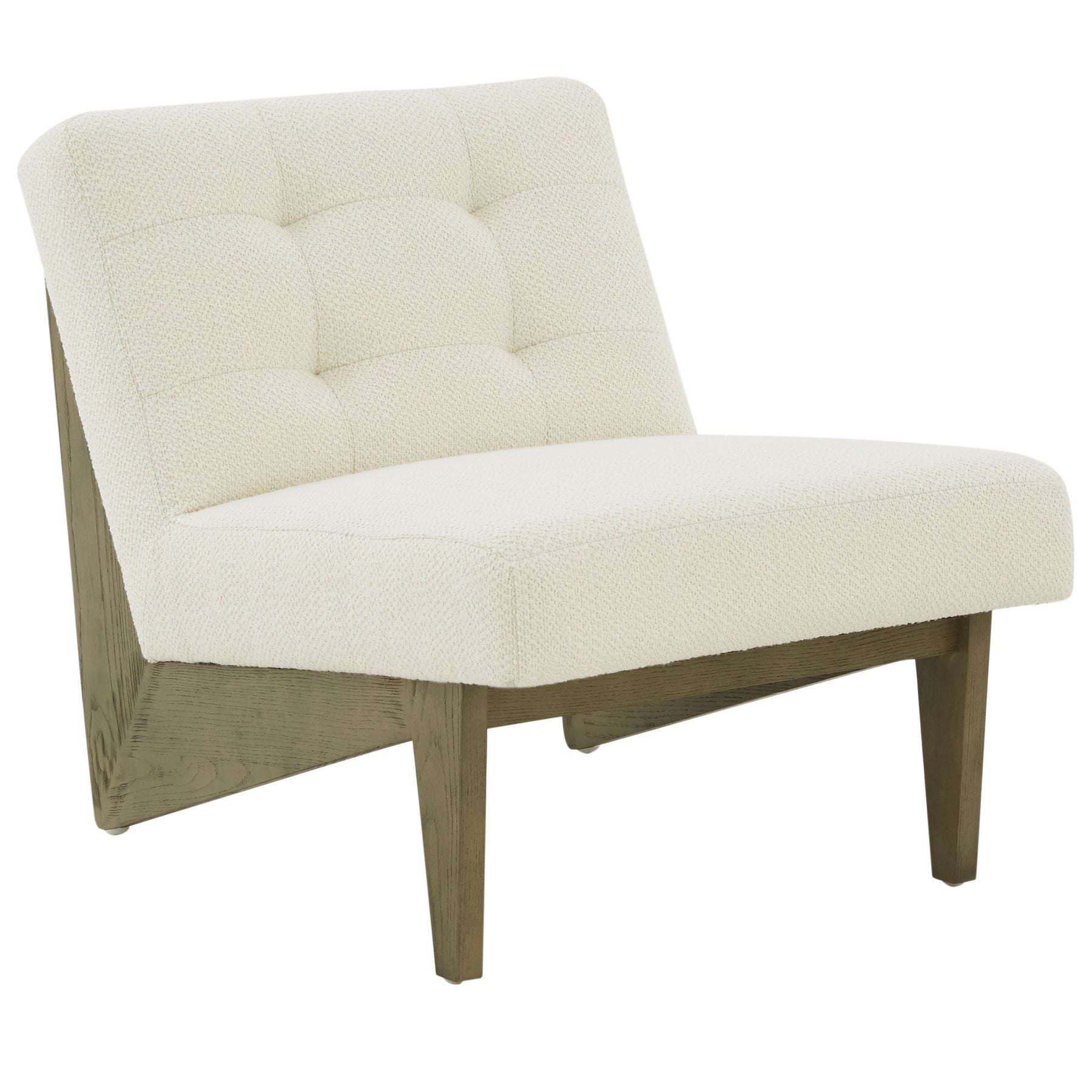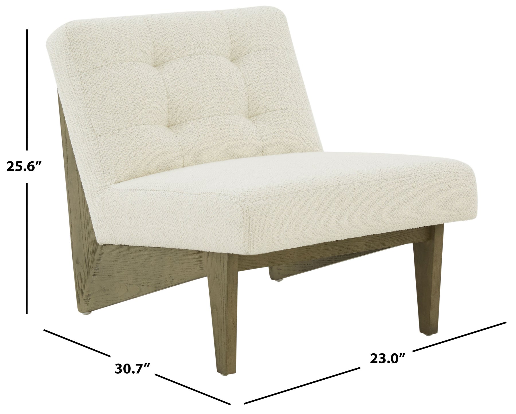 Style your home with our elegant and comfy Nelly Scandinavian accent chair. Our low-slung chair packs a dose of style and comfort to serve as an easy and effortless fit for your home. The refined angular frame of the chair is crafted from ash wood in a stunning grey finish. With a tufting detail and a gently reclining back, the chair invites laid-back style and comfort to your home. It is covered in ivory-colored performance fabric to offer inviting hours of lounging and relaxation in your family room, lounge, or bedroom.