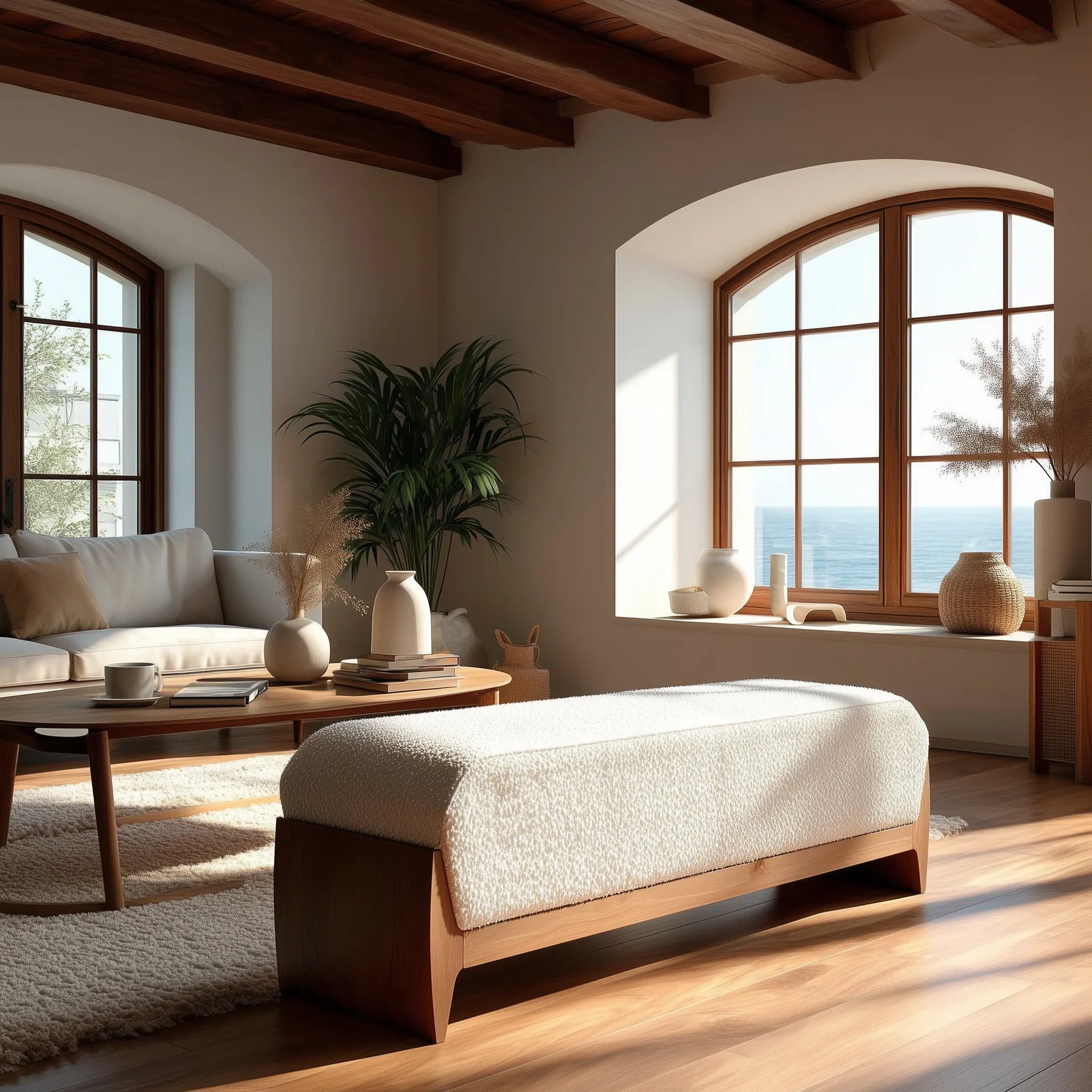The Odessa bench adds style to any corner of your home, featuring a warm oak cradle base that supports rich, textured boucle fabric. Its timeless appeal enhances the aesthetic of any room while offering inviting texture and timeless appeal.