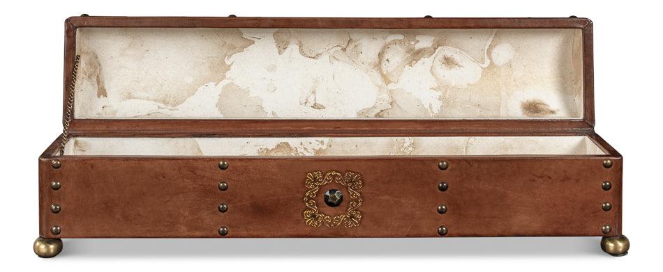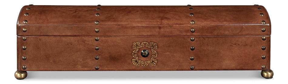 Quality leather upholstery gives the Telescope Leather Box W/Tacks a tactile richness that improves with time, developing a distinctive patina that marks it as a piece genuinely lived with, not merely displayed.