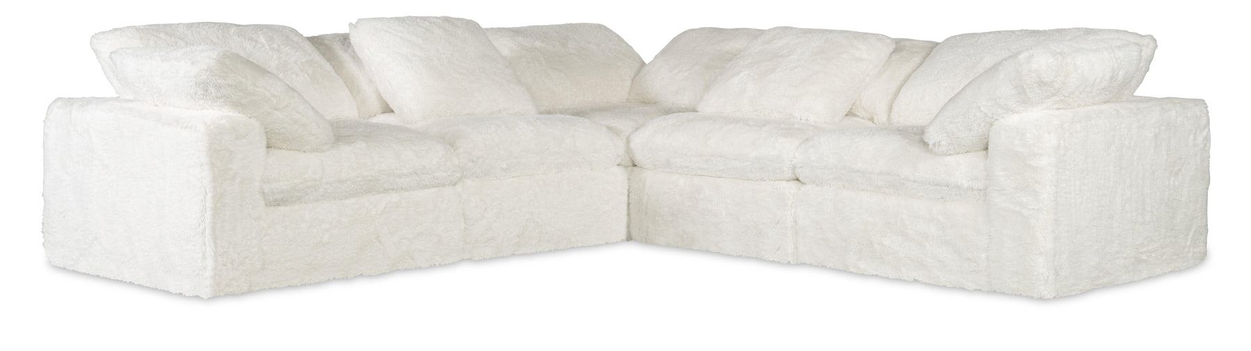 Wrap yourself in cozy with the Barefoot 5-seat comfort sectional, covered in the Yakety Yak natural-colored plush super-soft fabric. Consisting of 3 corner/arm components and two armless components with a loose pillow at each arm, the generously-scaled L-shaped sectional measures 125 inches wide by 125 inches deep.