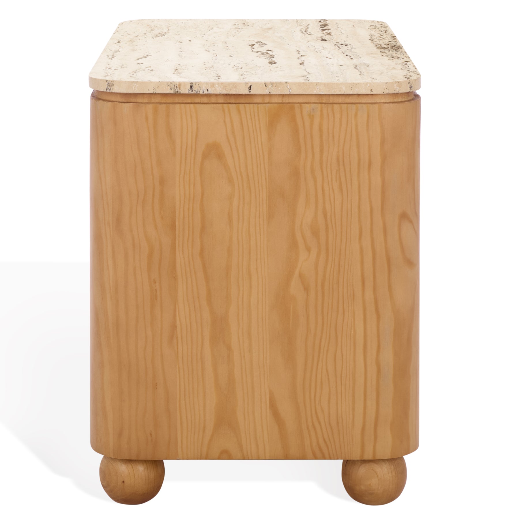 Introducing the remarkable GIULETTA TRAVERTINE TOP CHEST CHEST, a harmonious blend of textures, colors, and materials that will invigorate your living space. The natural color of pine wood enhances the innate beauty of the chest, accompanied by the tranquility of a sophisticated travertine top. With its refined pine veneer finish, this piece encapsulates a timeless aesthetic that complements modern and classic interiors. Providing an ample amount of storage, this chest is not only visually striking but also incredibly functional. It serves as a distinctive focal point, riveting in its presentation, yet discrete in its elegance. Featuring a robust solid pine wood construction, it is truly a testament to superior craftsmanship without the use of the inauthentic metallic material. Incorporating the allure and serenity of a real travertine top, this chest brings a slice of nature into your home. The intricate, one-of-a-kind patterns of this natural stone speak volumes about your taste for the sophisticated and unique. Let the GIULETTA TRAVERTINE TOP CHEST CHEST lead you into a world of elegance, offering a serene ambiance that only the finest organic materials can create. Recommit to an elegant lifestyle and elevate your home with this beautiful piece from our collection.