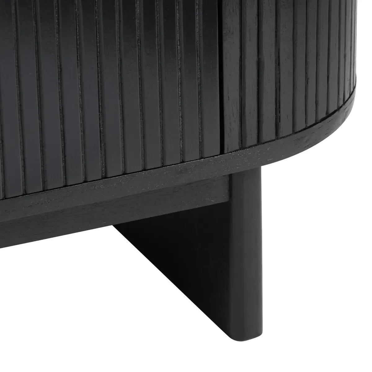 This sleek 2-door cabinet, crafted from wood with a rich black stained finish, showcases a rectangular shape with modern sophistication. The grooved doors are equipped with upgraded European hinges and magnetic closures for seamless functionality. Oversized decorative pulls, featuring a natural wood grain finish, add a striking focal point. Inside, two fixed shelves provide ample storage, while the sturdy design and clean lines make this cabinet a stylish and practical addition to any space