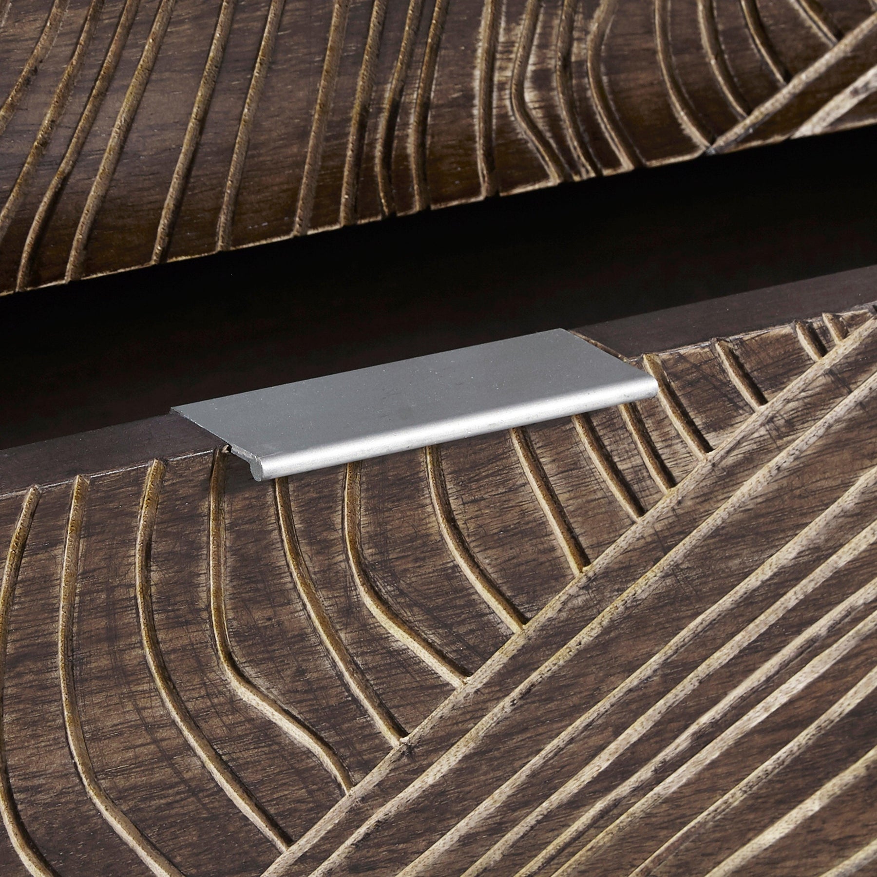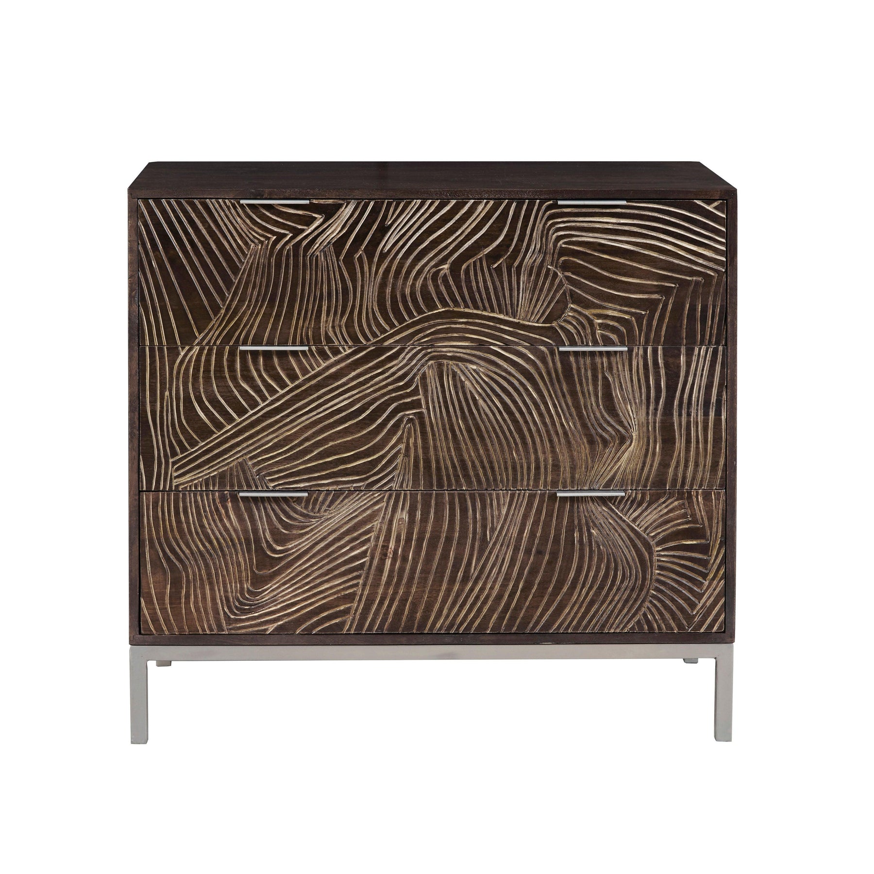 Our 3-Drawer Accent Chest combines artistry and functionality, creating a statement piece that enhances any room. Each drawer features intricate organic pattern carvings that add texture and depth, giving it a visually captivating and unique look. Mango Wood in an earthy brown finish accented by contrasting metal hardware, ample storage space, and versatile use make it a perfect addition to any home.
