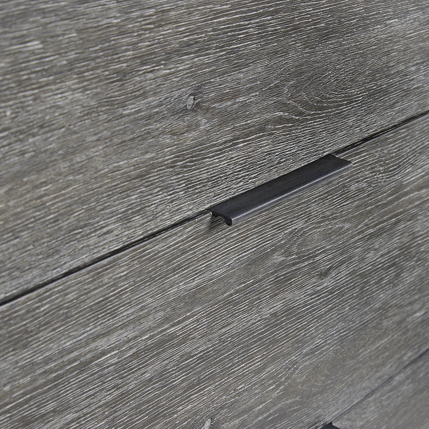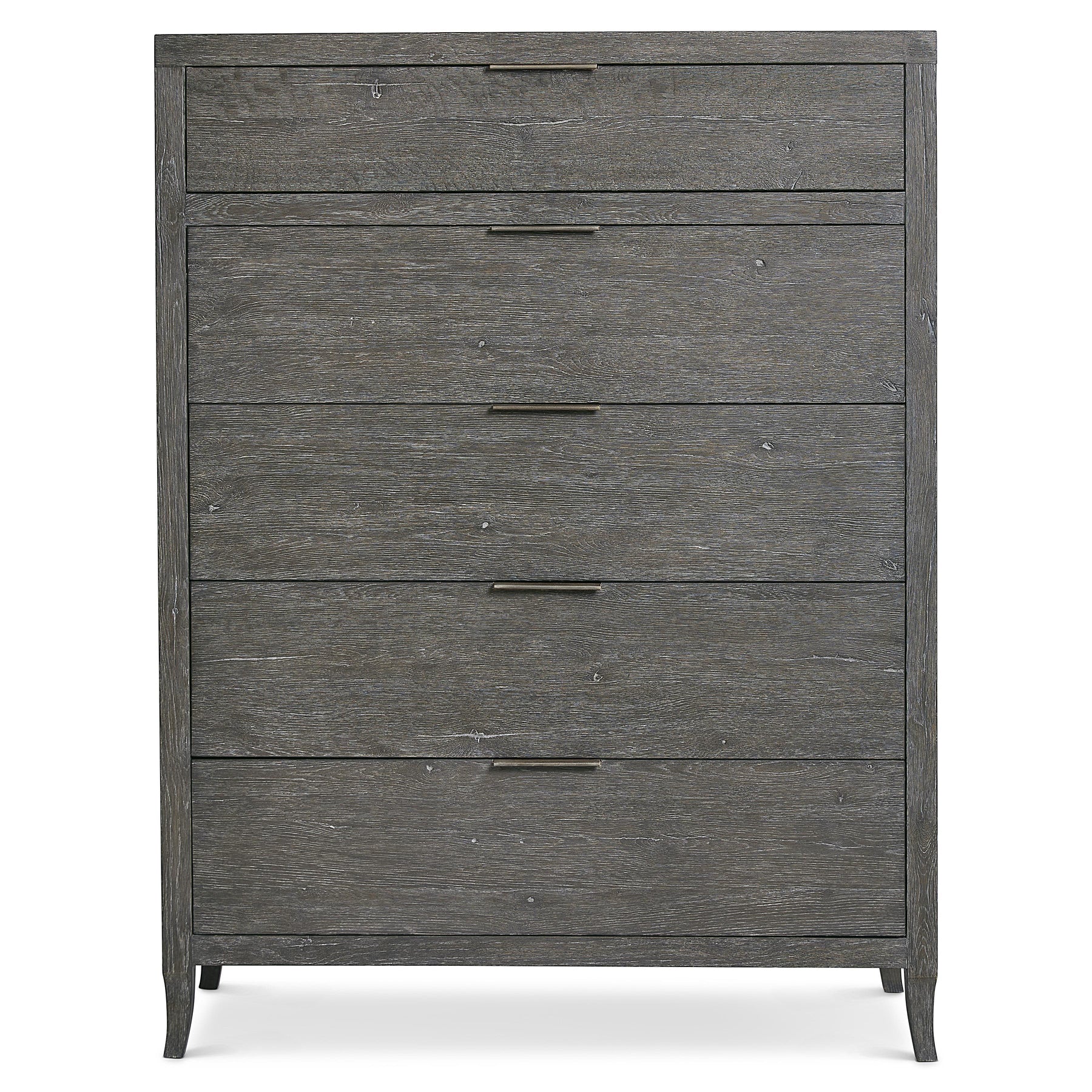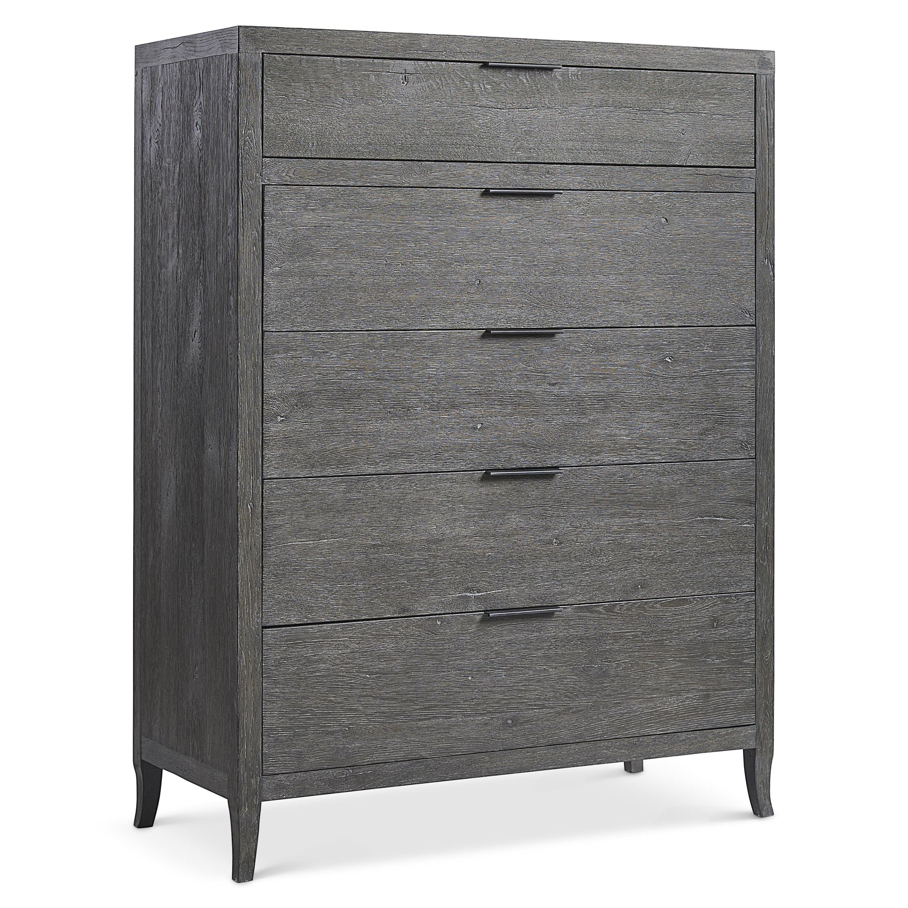 Wirebrushed Oak Tall Drawer Chest In Tadon Finish. Five Pull-To-Open, Soft-Close Drawers With Applied Texture Tab Pulls In Barlow Finish. Adjustable Glides.