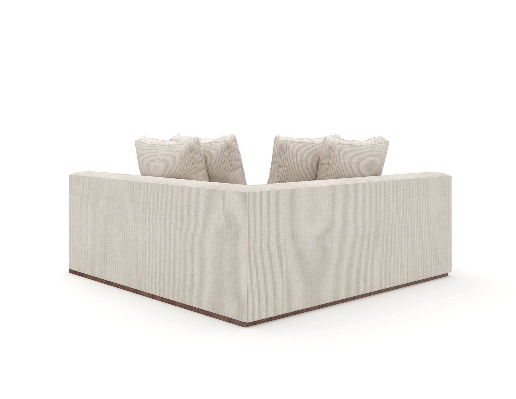 Nearly the width of a queen bed, the Bello Corner Chaise has a generous arm on the right and features 4 matching Down pillows.