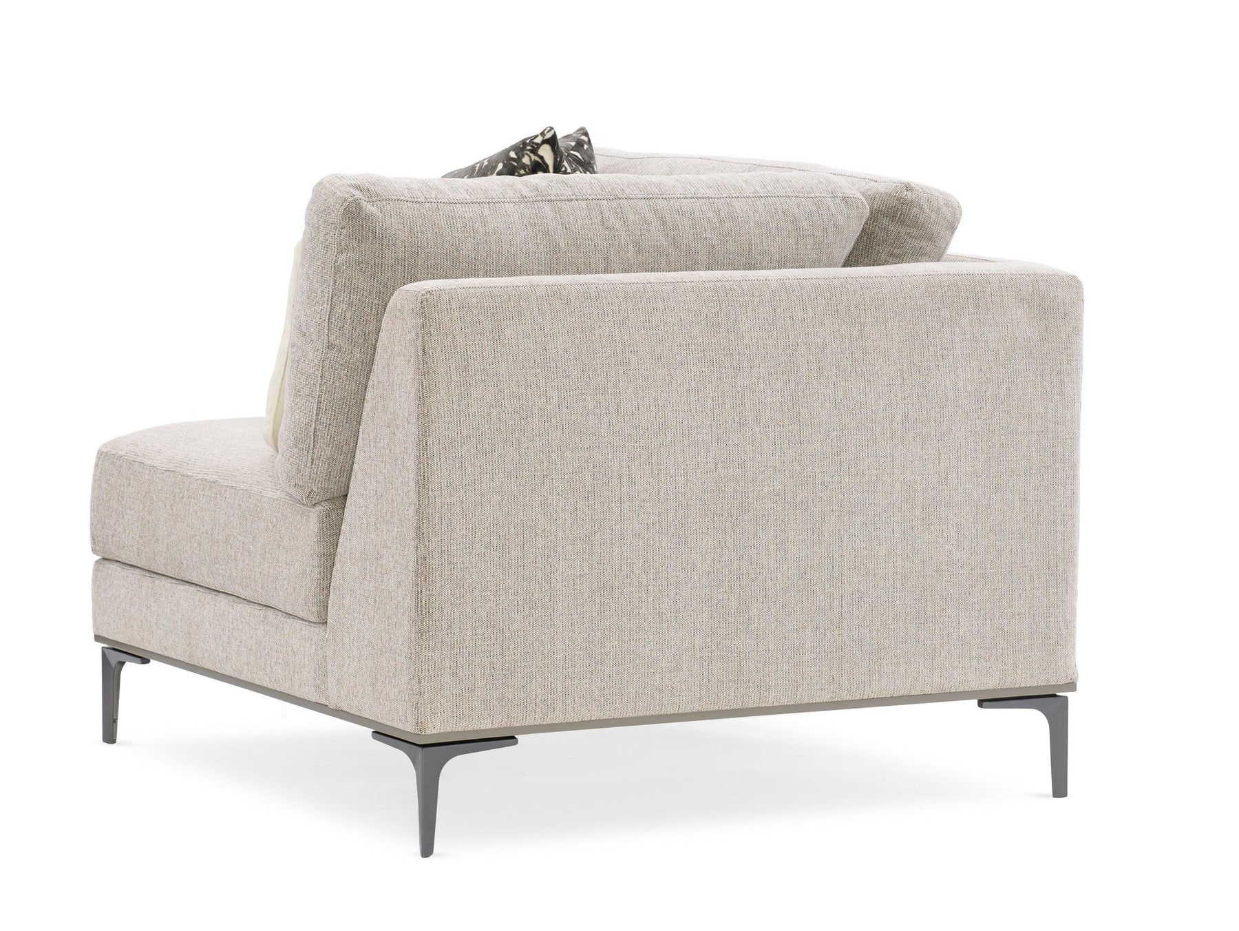 The clean lines and smart angles of a Repetition modular sofa create a stylish sectional solution for modern seating. Long uninterrupted planes of finely tailored upholstered cushions create a sumptuous retreat with true simplicity of form. Repetition’s frame is finished in London Fog while its metal legs wear Zinc Oxide, adding additional layers of luxe to its refined palette. Ultimately configurable, this stunning seating solution can be arranged to fit your space while reflecting your unique design perspective.