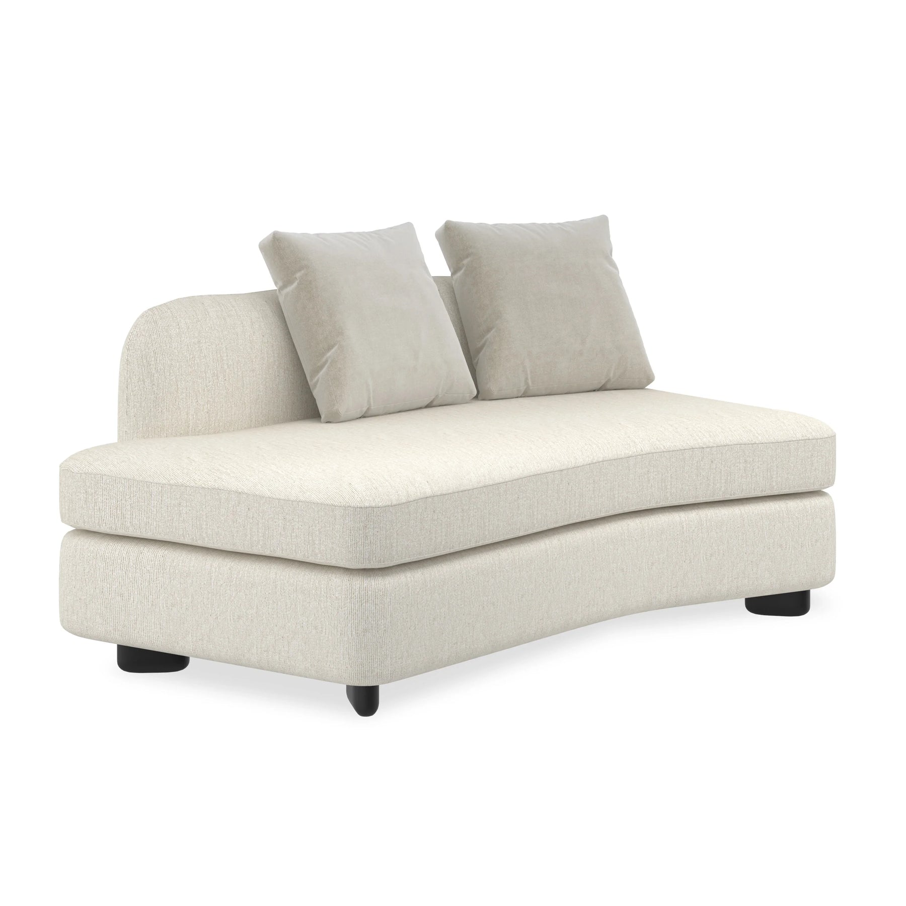 The Lumi Chaise slightly bends to create a gentle curve as part of the left side of the Lumi Sectional. You will want to sink into its ivory plushly-stuffed seat. The back extends three-quarters of the length of the piece. The body of the chaise is fully upholstered in a microribbed linen blend, while two cushions feature an Ivory mohair and wool-blend velvet. The chair’s pegged feet pop from underneath in Almost Black.