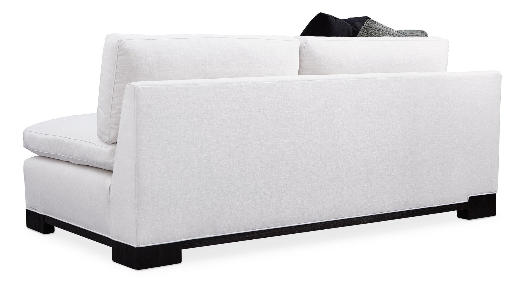 Designed for comfort and a crowd, everyone is a fan of the Refresh sectional. At once bold and timeless, its plush design illustrates the exceptional result of when fashion and comfort converge. Its refreshing styling is equally cozy and rewarding to relax into. Just sit back and you’ll appreciate the surprisingly lush support of its low, deep design and thin, pillow-topped cushions filled with luxurious down-blend cushioning. A luxurious fabric cover and block feet finished in Black Stained Ash add a finishing touch. Designed to surround you in stylish comfort, this configurable seating option offers the perfect mix of form and function.
