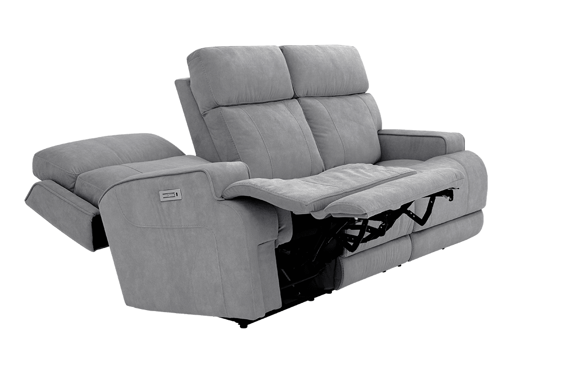 Upholstered in premium upholstery with power recline, power headrest, zero gravity mechanism, USB charging port, pocketed coil seating, extended footrest, and tall pub back design, this reclining sofa is built on a steel seat box with high-resilience foam or pocketed coil seating. Each position operates independently, giving every occupant precise control over recline, headrest, and lumbar settings without disrupting their neighbor.