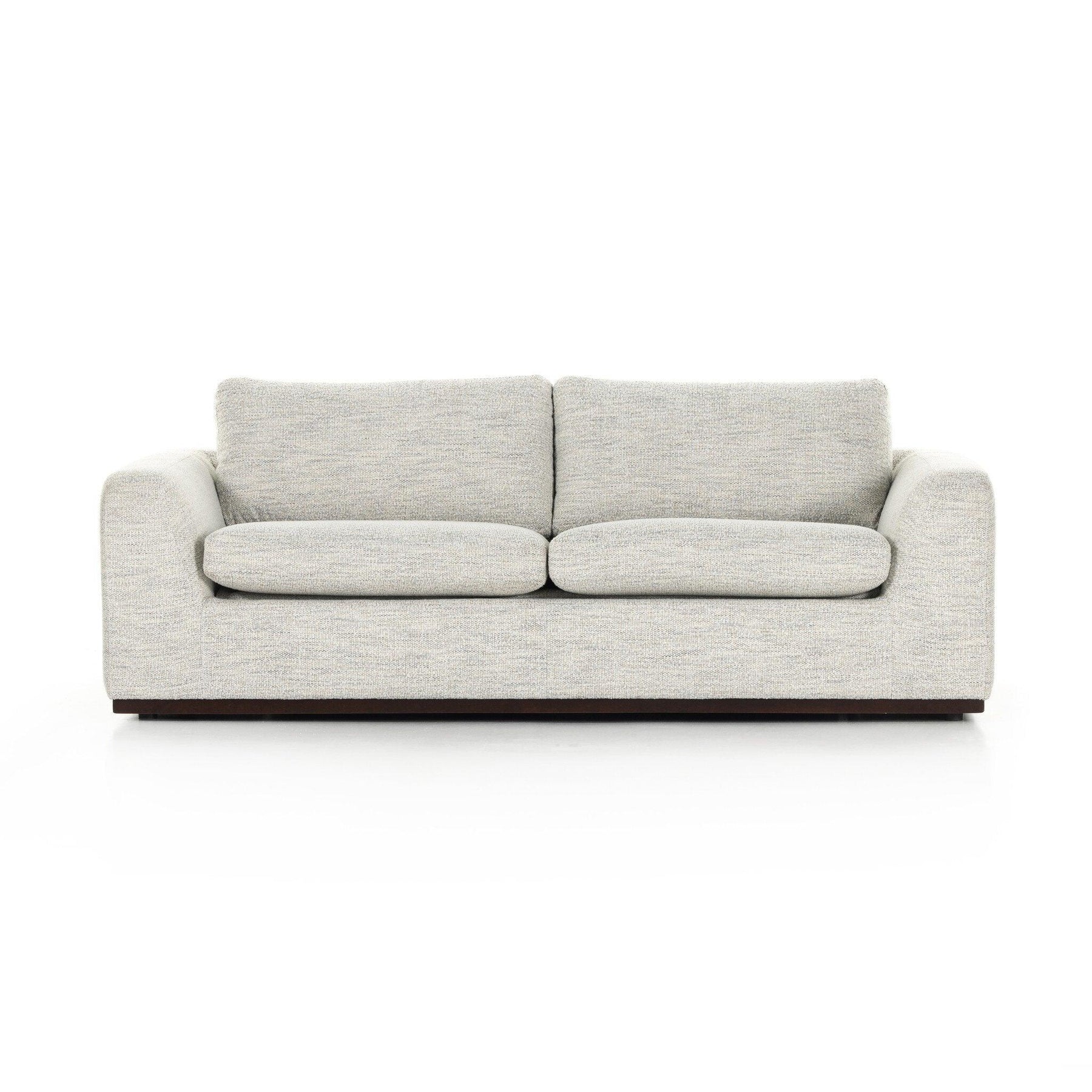 Available in Aldred Silver and Merino Cotton poly/linen blend upholstery, the Colt Sleeper Sofa features a convenient queen-size pullout bed that transforms the sofa into overnight guest accommodations without compromising the everyday sofa experience. Subtly flared sides and a wrapped plinth base maintain the clean, simple styling of the Colt collection. The performance upholstery withstands the demands of daily sofa use.
