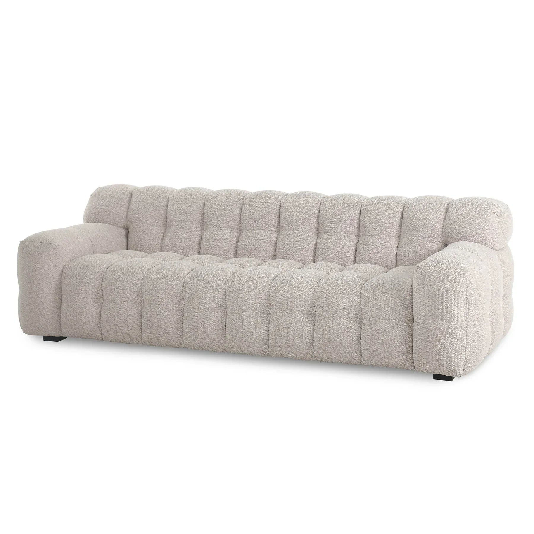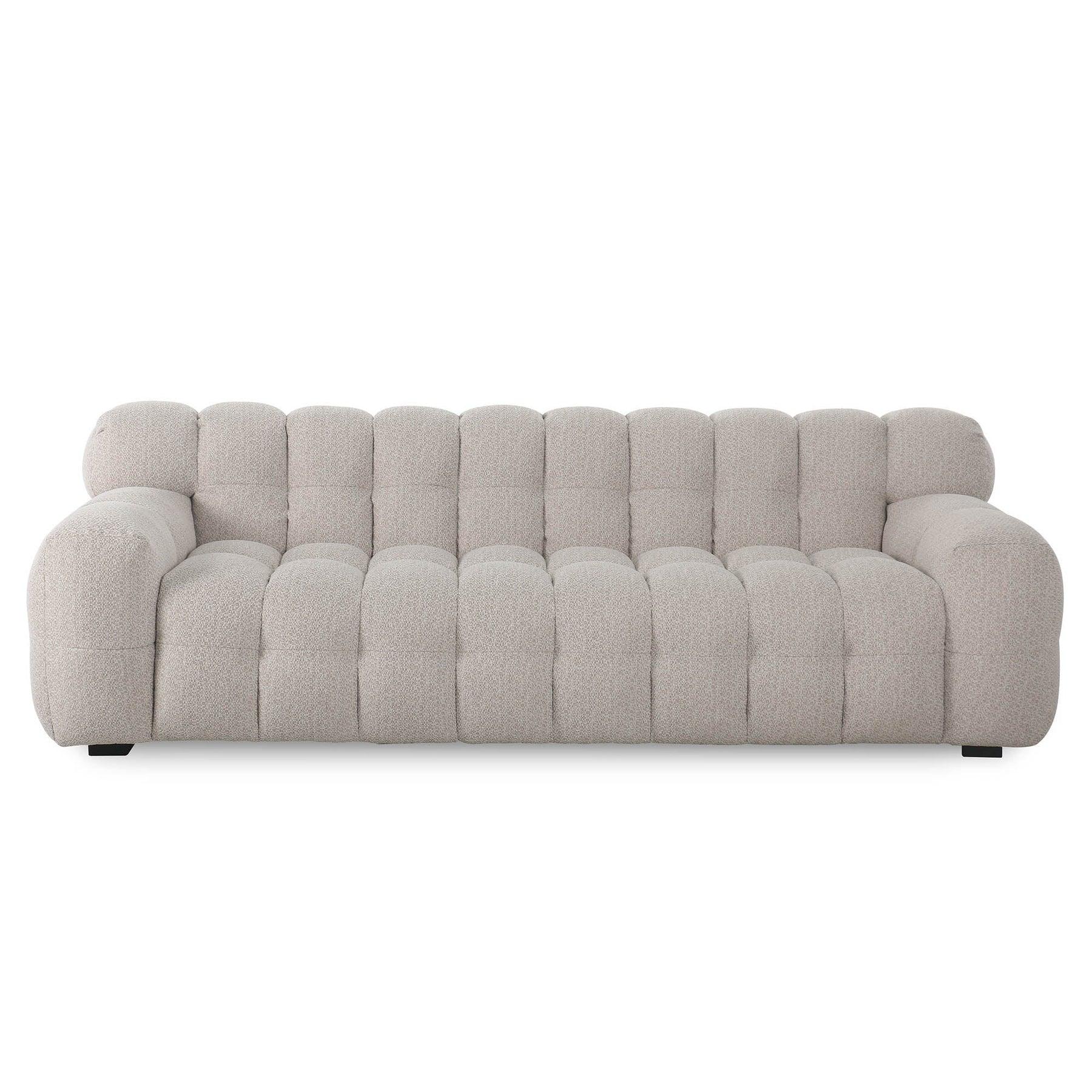 Experience comfort and style with this beautifully upholstered sofa, wrapped in a soft fabric featuring a natural pattern. Supported by sleek black rubberwood feet.